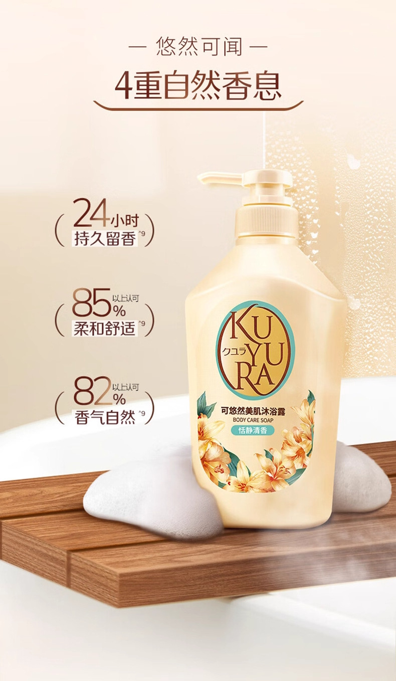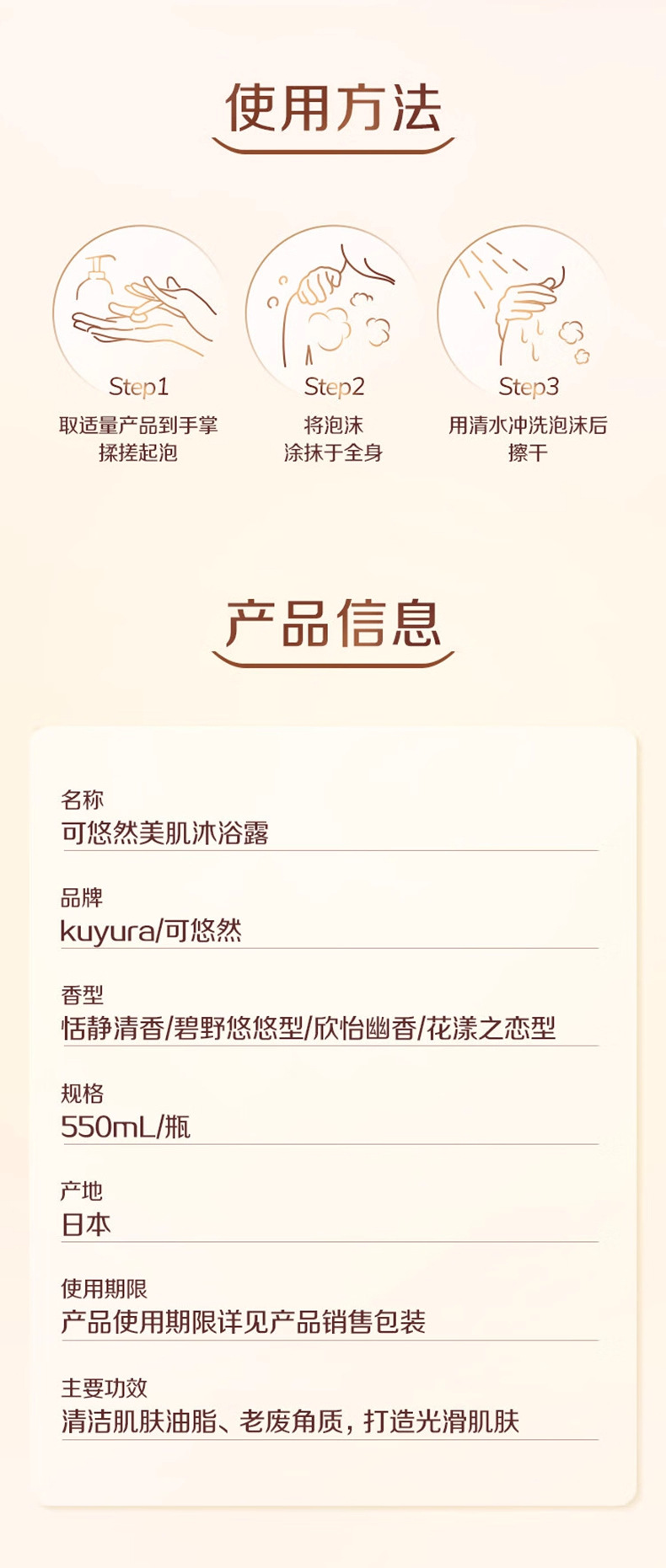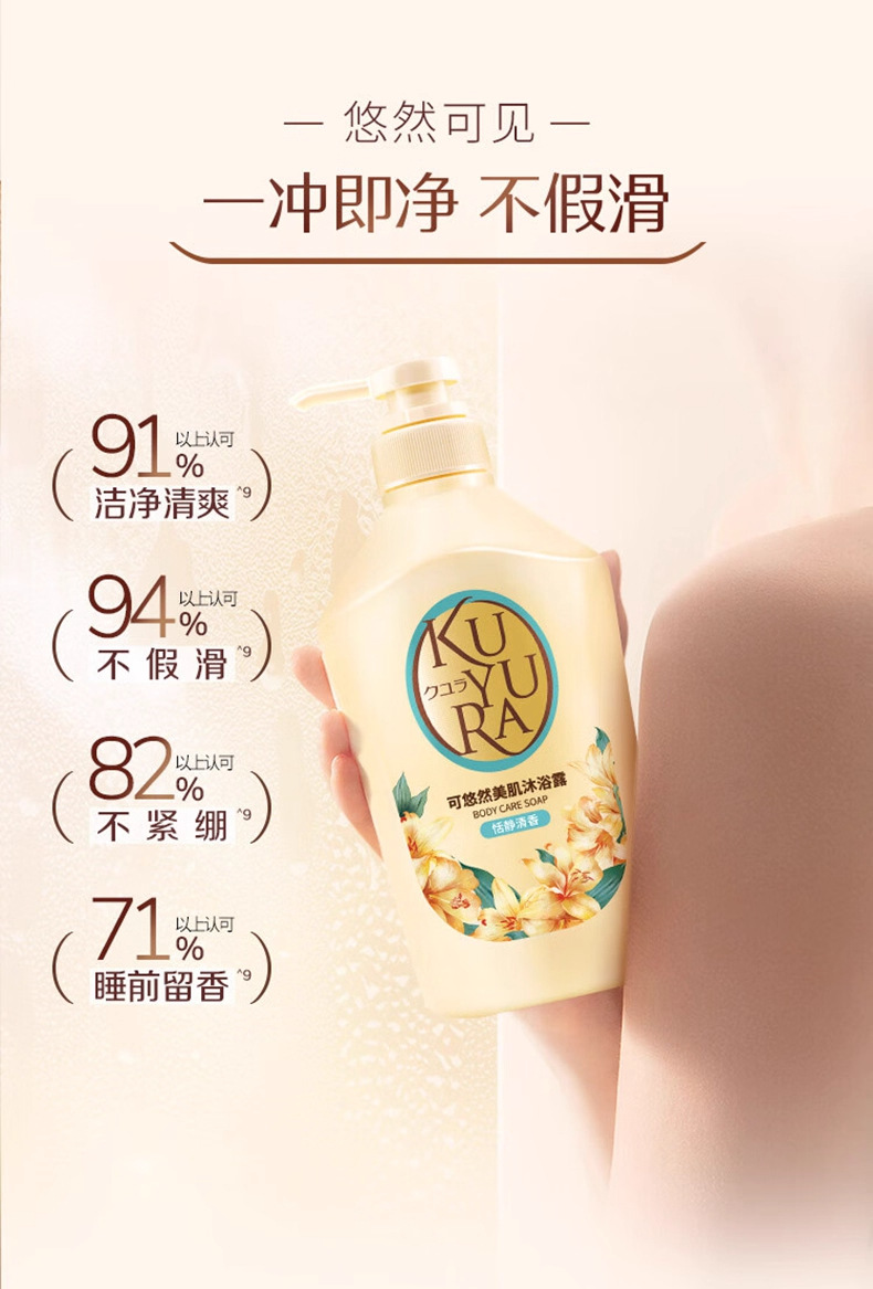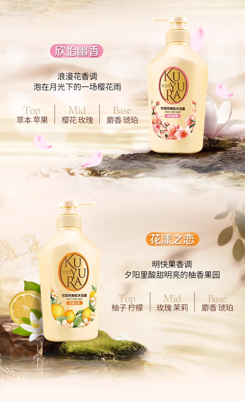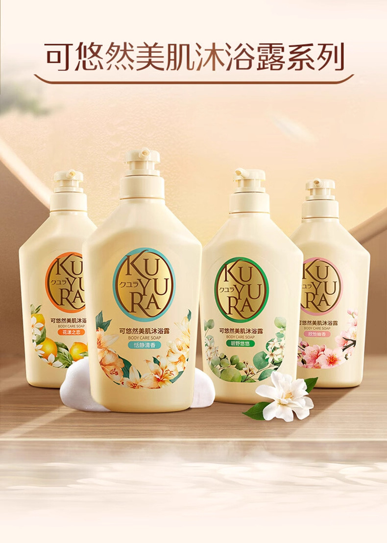 日本可悠然美肌沐浴露香氛持久留香保湿滋润泡沫沐去角质沐浴乳美肌恬静欣怡花漾碧野沐浴液
