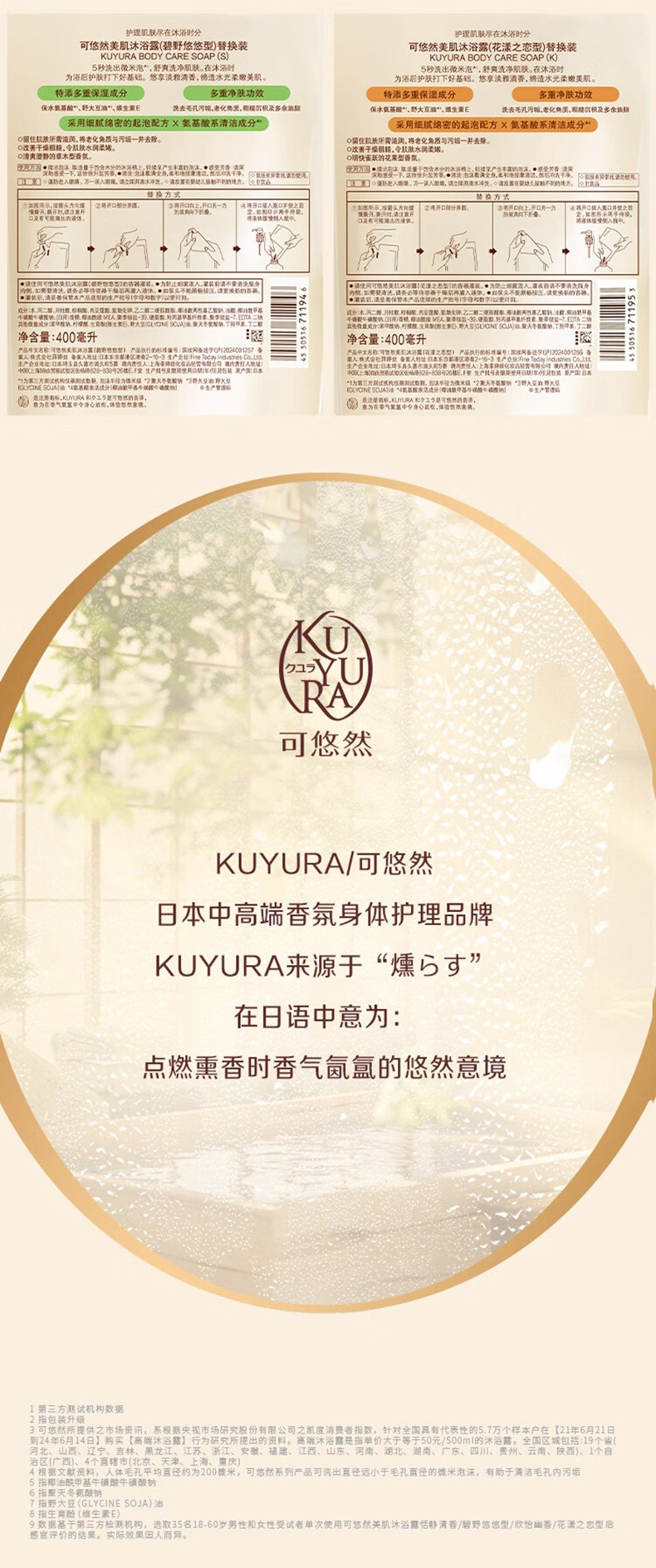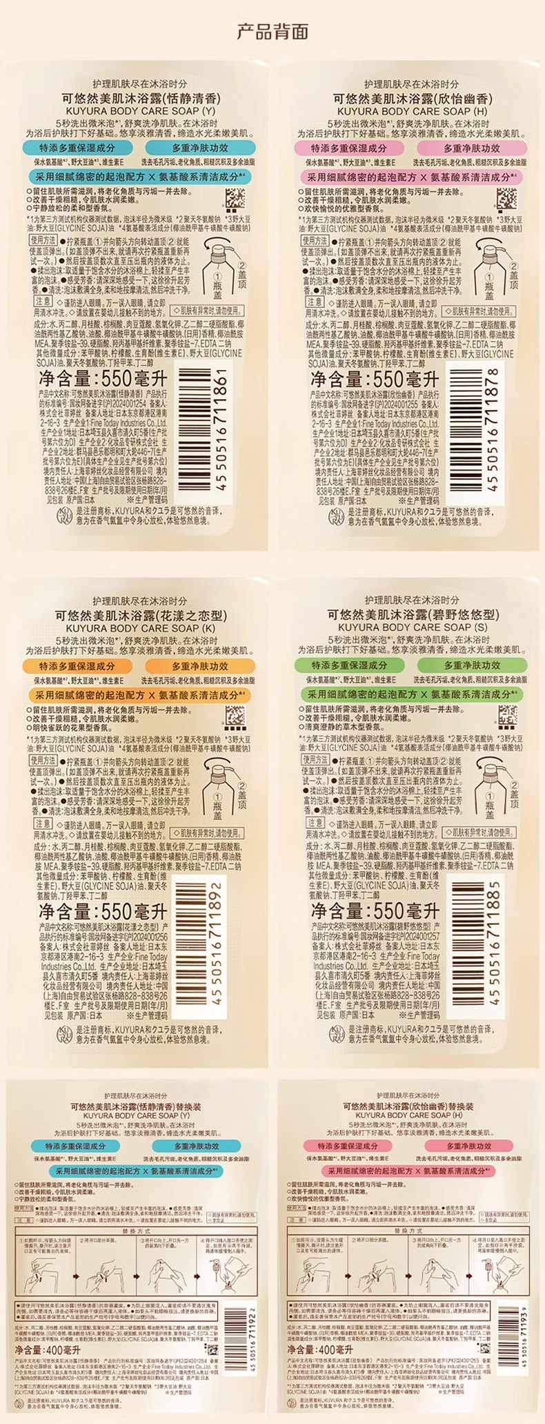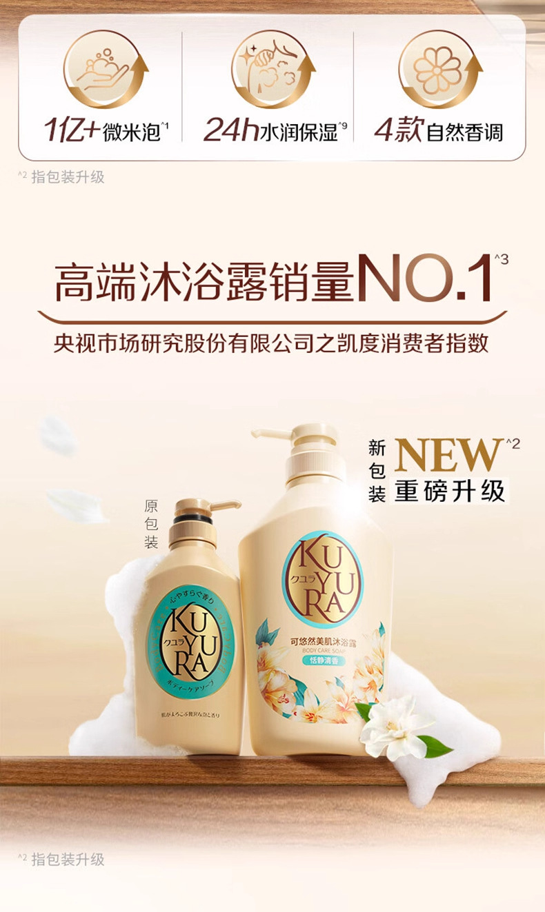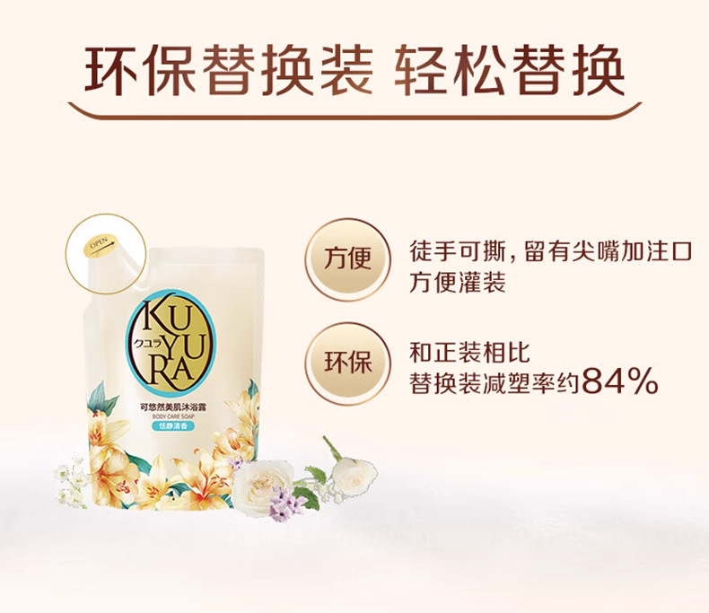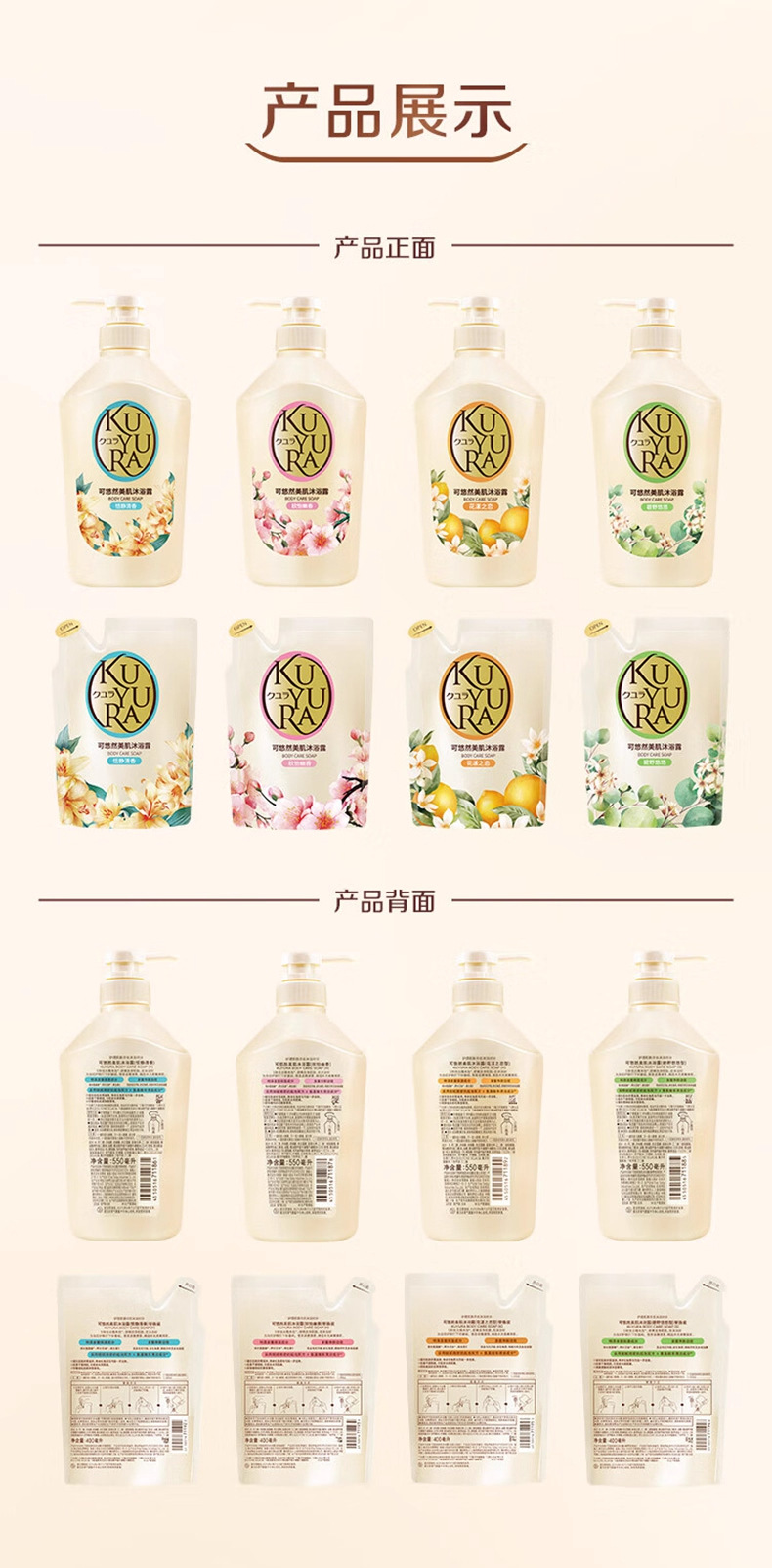 日本可悠然美肌沐浴露香氛持久留香保湿滋润泡沫沐去角质沐浴乳美肌恬静欣怡花漾碧野沐浴液