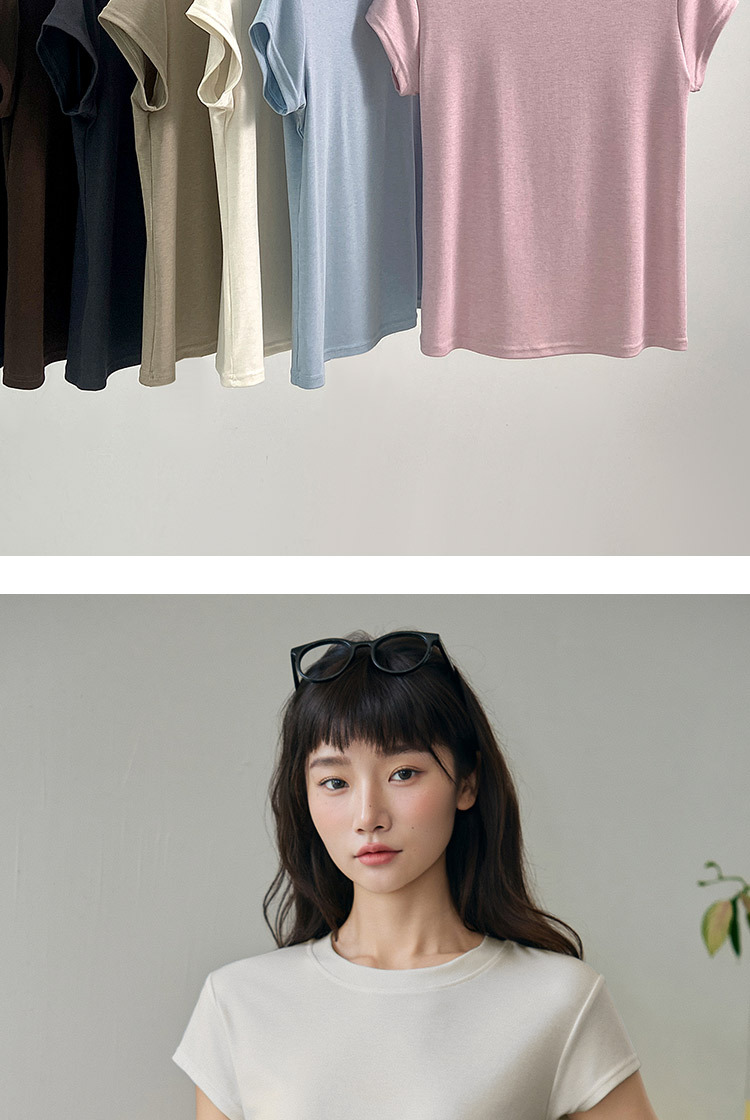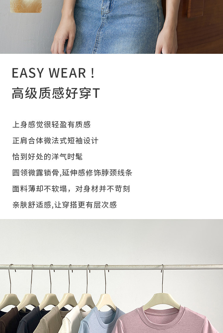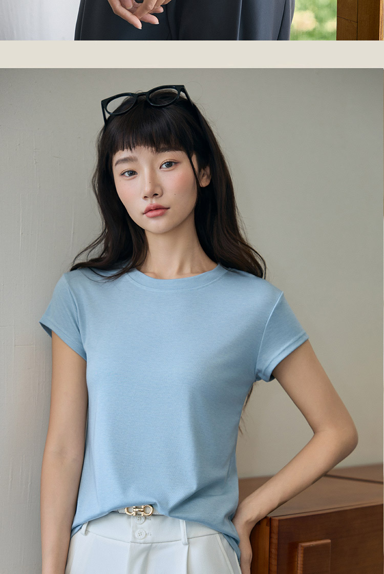 莱赛尔圆领短袖T恤女夏季薄款正肩修身显瘦天丝羊毛百搭上衣 商品图1