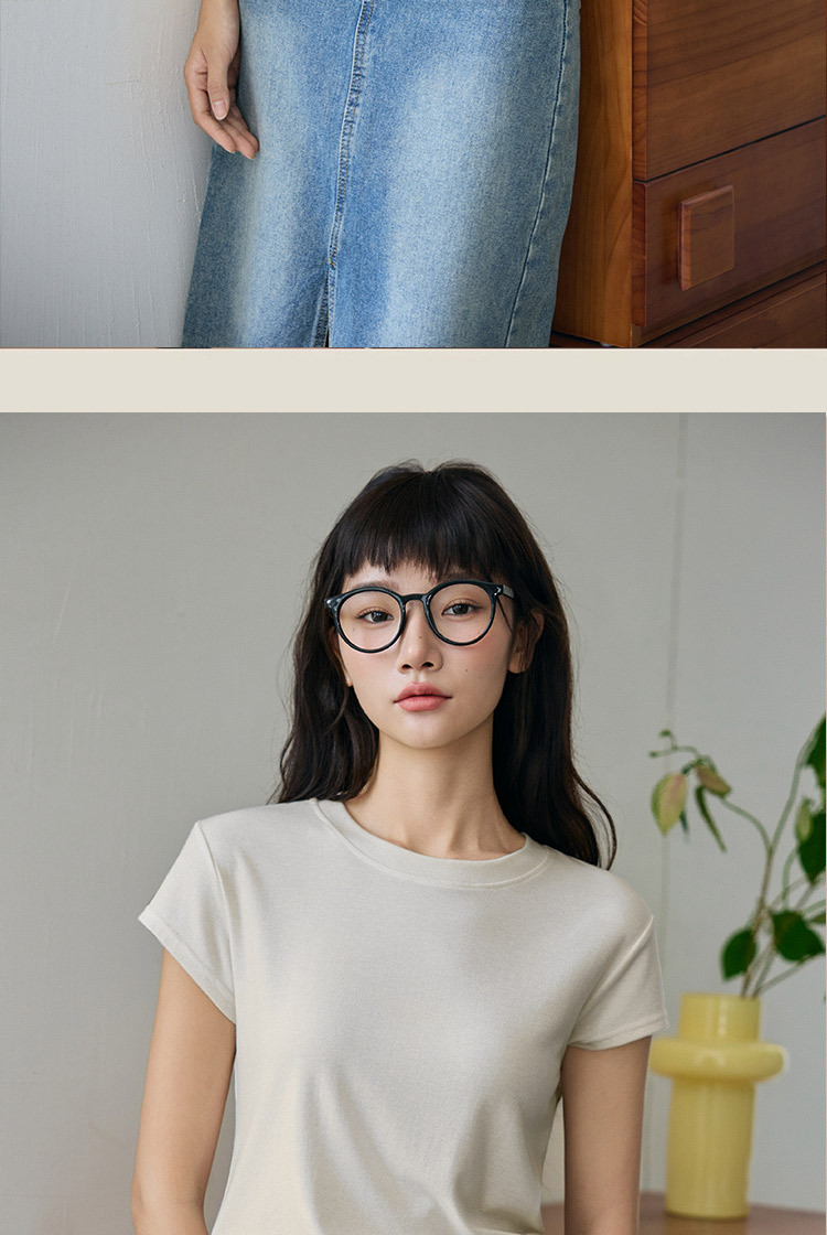 莱赛尔圆领短袖T恤女夏季薄款正肩修身显瘦天丝羊毛百搭上衣 商品图4