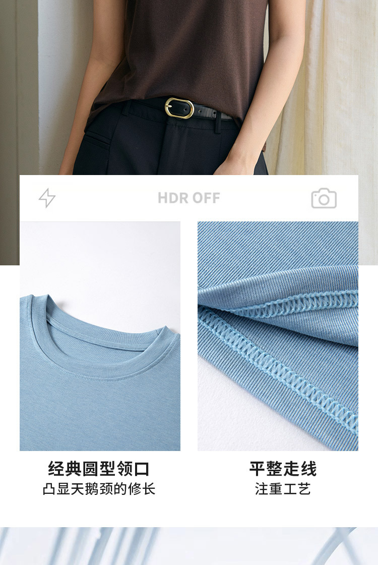 莱赛尔圆领短袖T恤女夏季薄款正肩修身显瘦天丝羊毛百搭上衣 商品图5