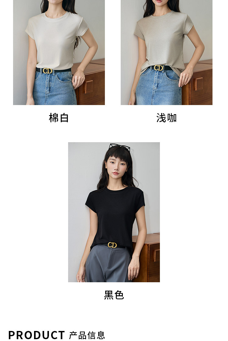莱赛尔圆领短袖T恤女夏季薄款正肩修身显瘦天丝羊毛百搭上衣 商品图2
