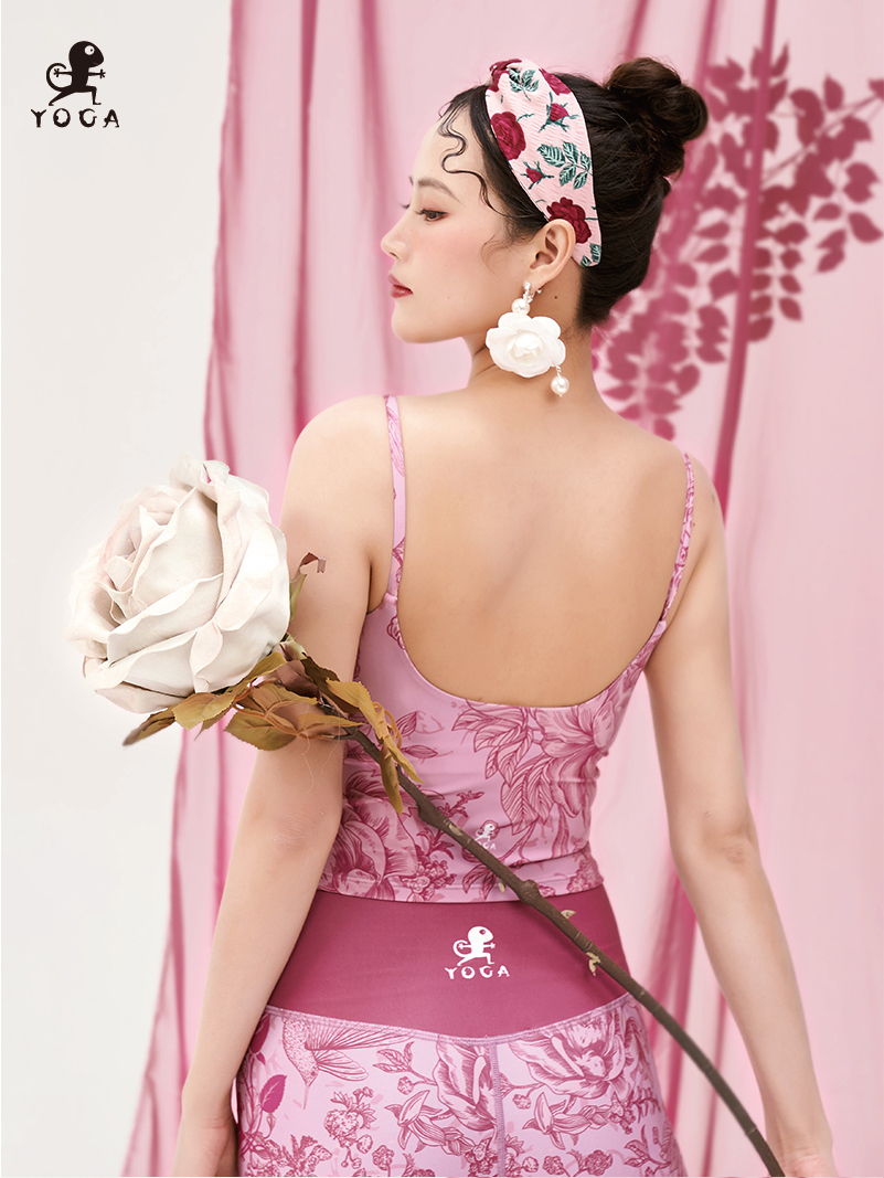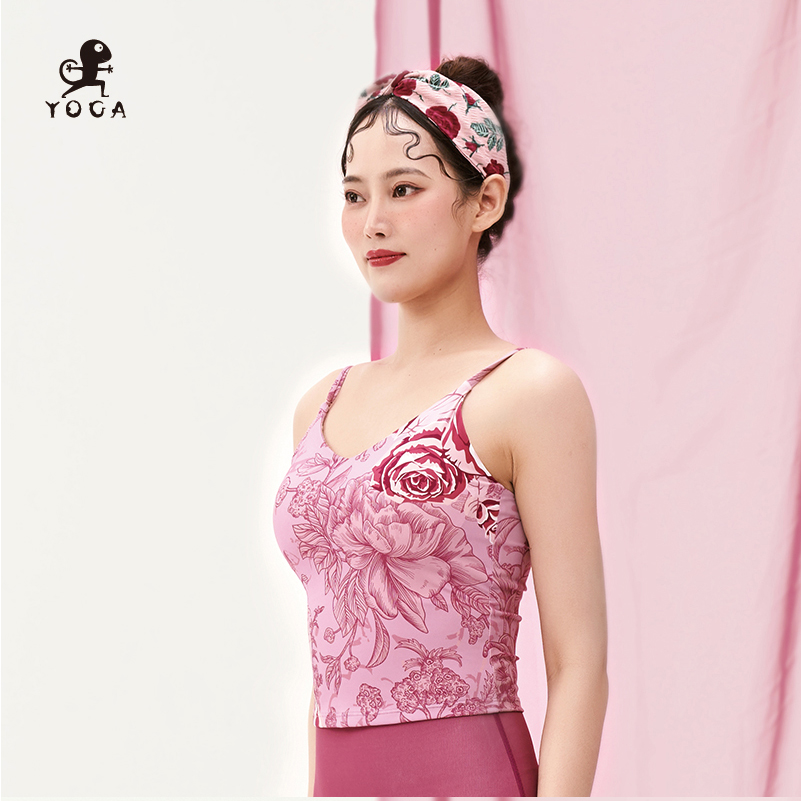 【现货秒发】壁虎瑜伽水母纱面料【佳期如梦-背心】印花聚拢吊带背心(一体式胸垫)清仓