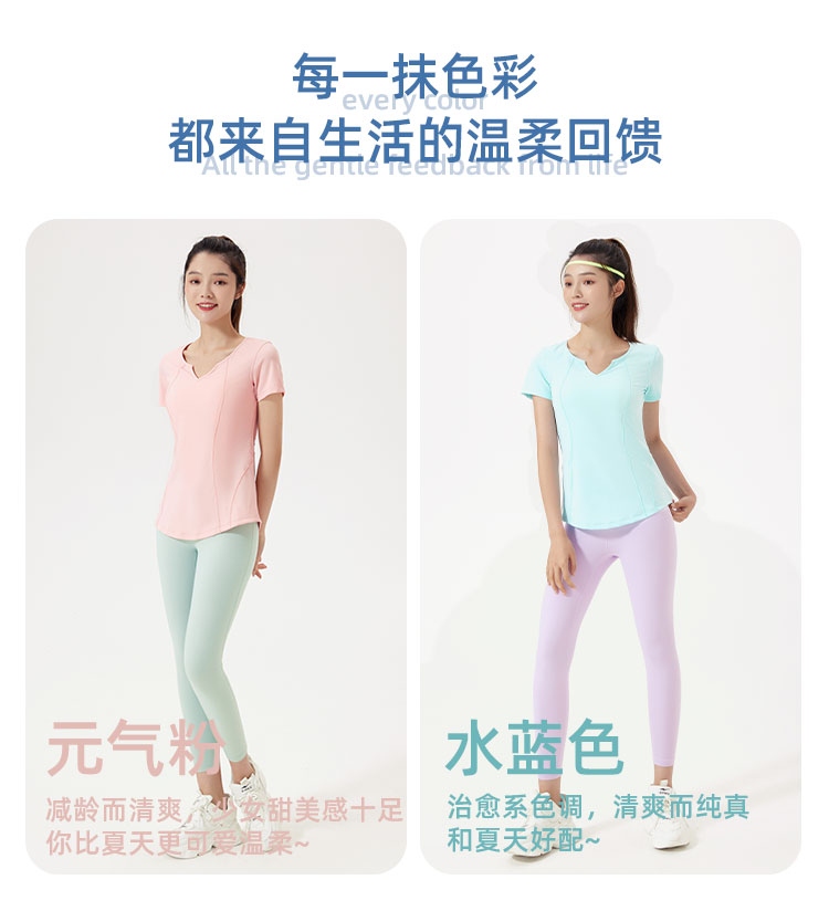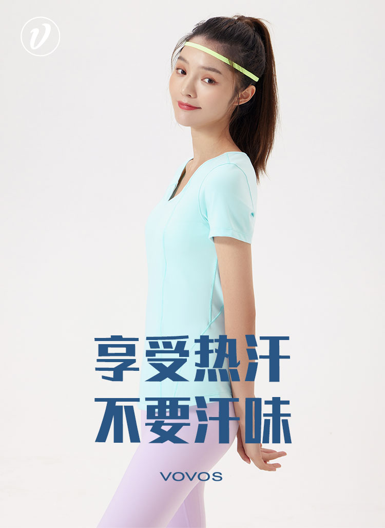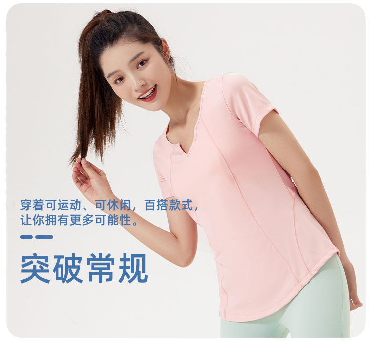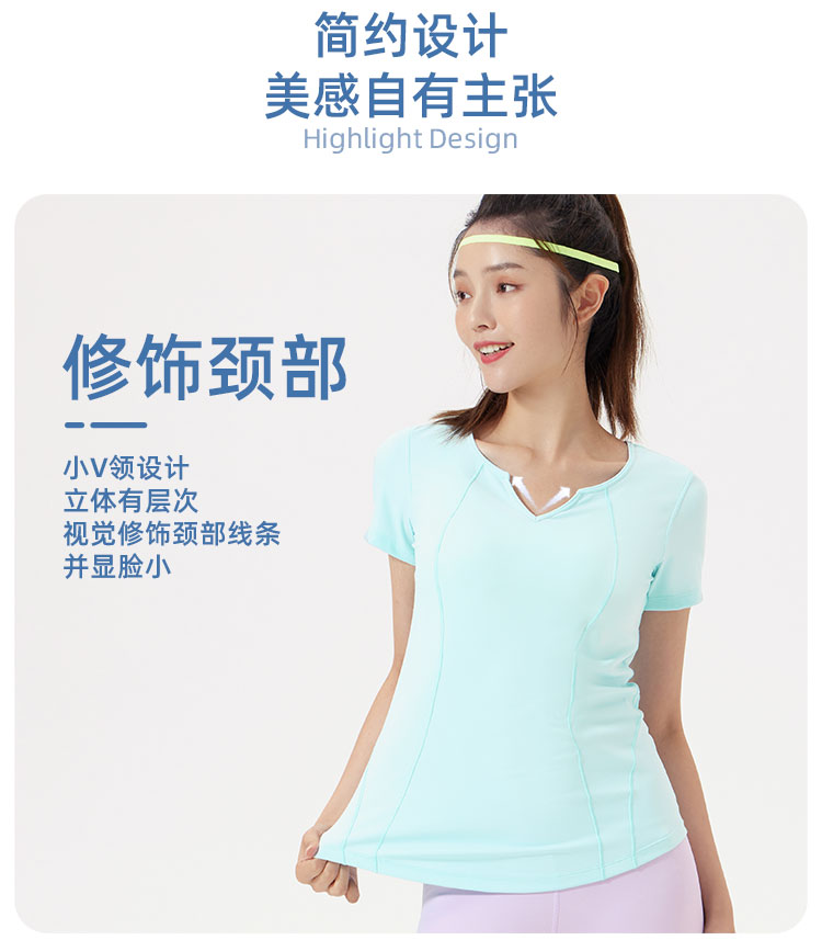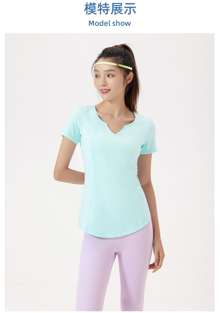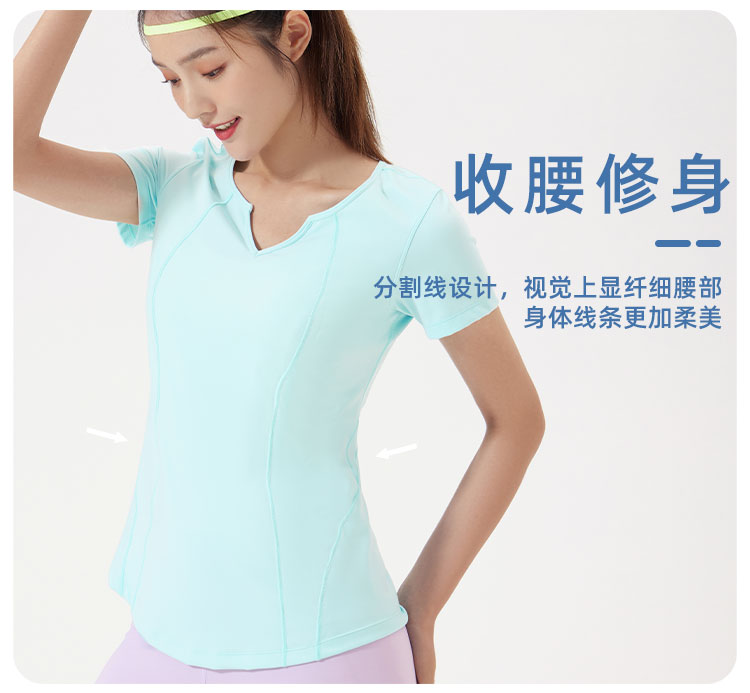 VOVOS防晒收腰小V领瑜伽健身T恤VTX8030