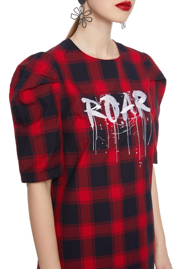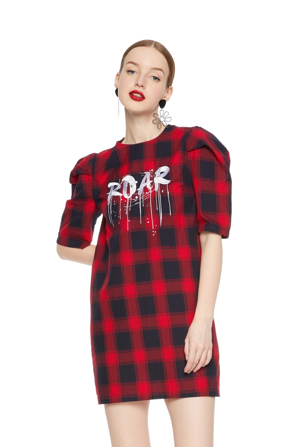 EMC亿美丞 格纹喇叭袖连衣裙 3648