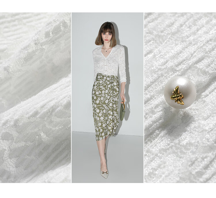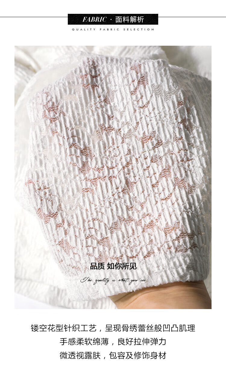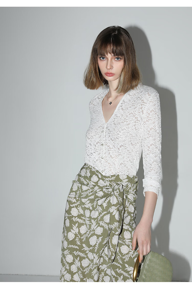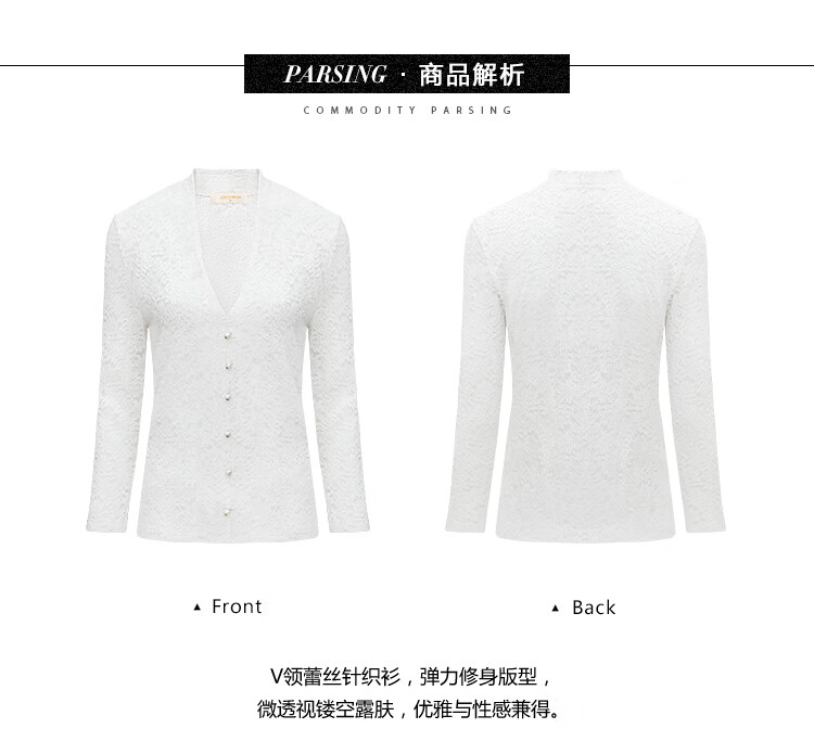 COCOBELLA优雅微透视镂空蕾丝衬衫女深V领长袖针织衫NLC55