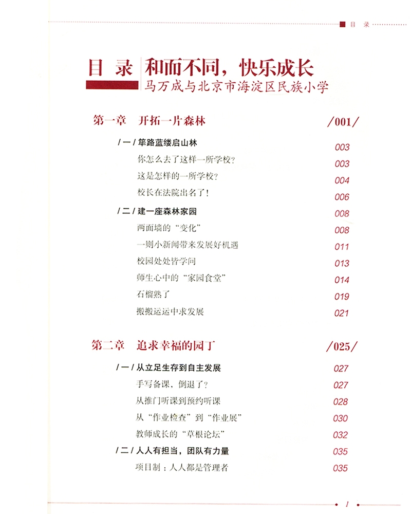 本书记述了作者马万成校长十八年来,带领干部老师们将一所校舍破败、租户众多、生源流失的小学校建成了有着森林般校园环境、更有着森林般文化和教育理念的家园式学校。全书围绕“森林家园”这一主题,分为五大章,分别是“开拓一片森林”“追求幸福的园丁”“孕育希望的沃土”“播撒一颗种子”“营造一种生态”。全书用一个个生动的小故事讲述了一位校长,如何让一所办学质量落后、校园环境脏乱差的学校一步步成为一所一流优质小学,并构建起类似森林一样的生态系统——让办学理念与生命成长相契合,让学校里教师、学生、家长、职工等等群落相互作用、彼此促进,形成学校持续向上的发展动力。本书集中展现了新时代首都基础教育领域办学的特色成果,具有较高的学习和参考价值。