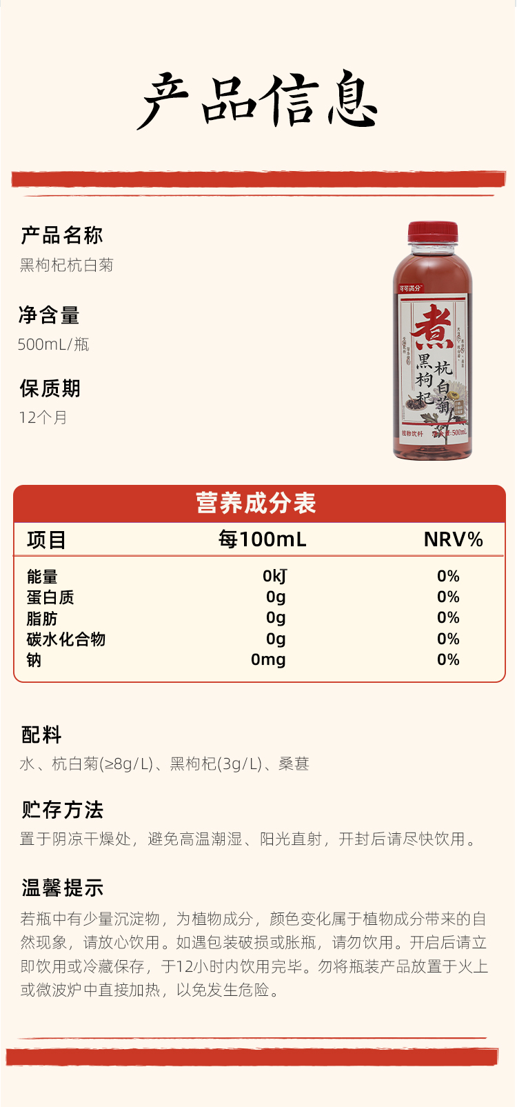 可可满分黑枸杞杭白菊500ml*5瓶&15瓶整箱