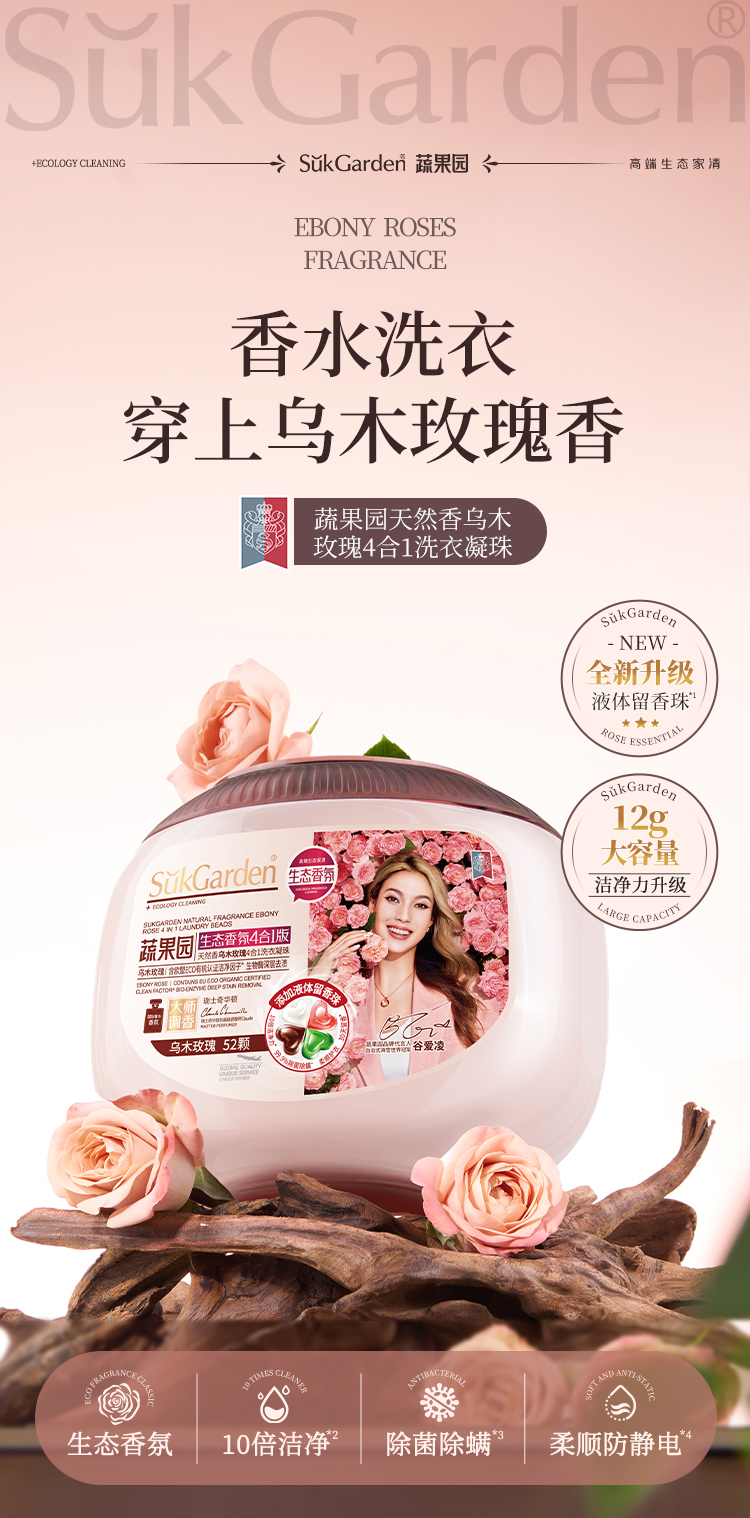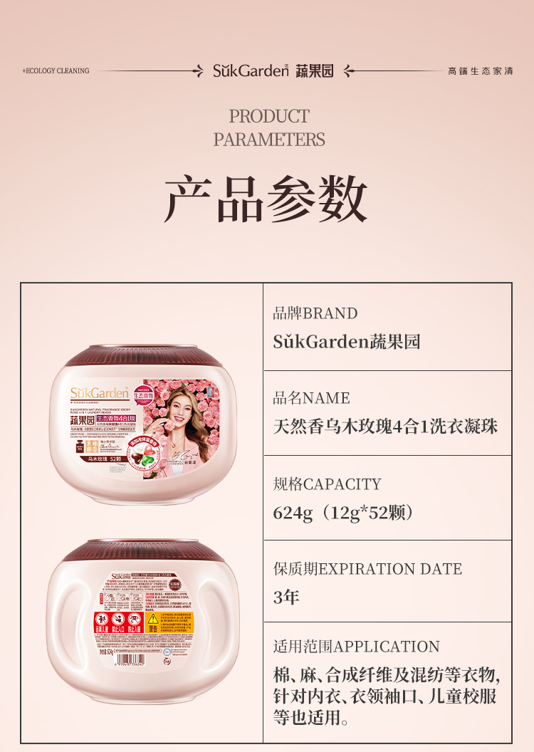 SukGarden蔬果园天然香乌木玫瑰4合1洗衣凝珠-12g×52颗