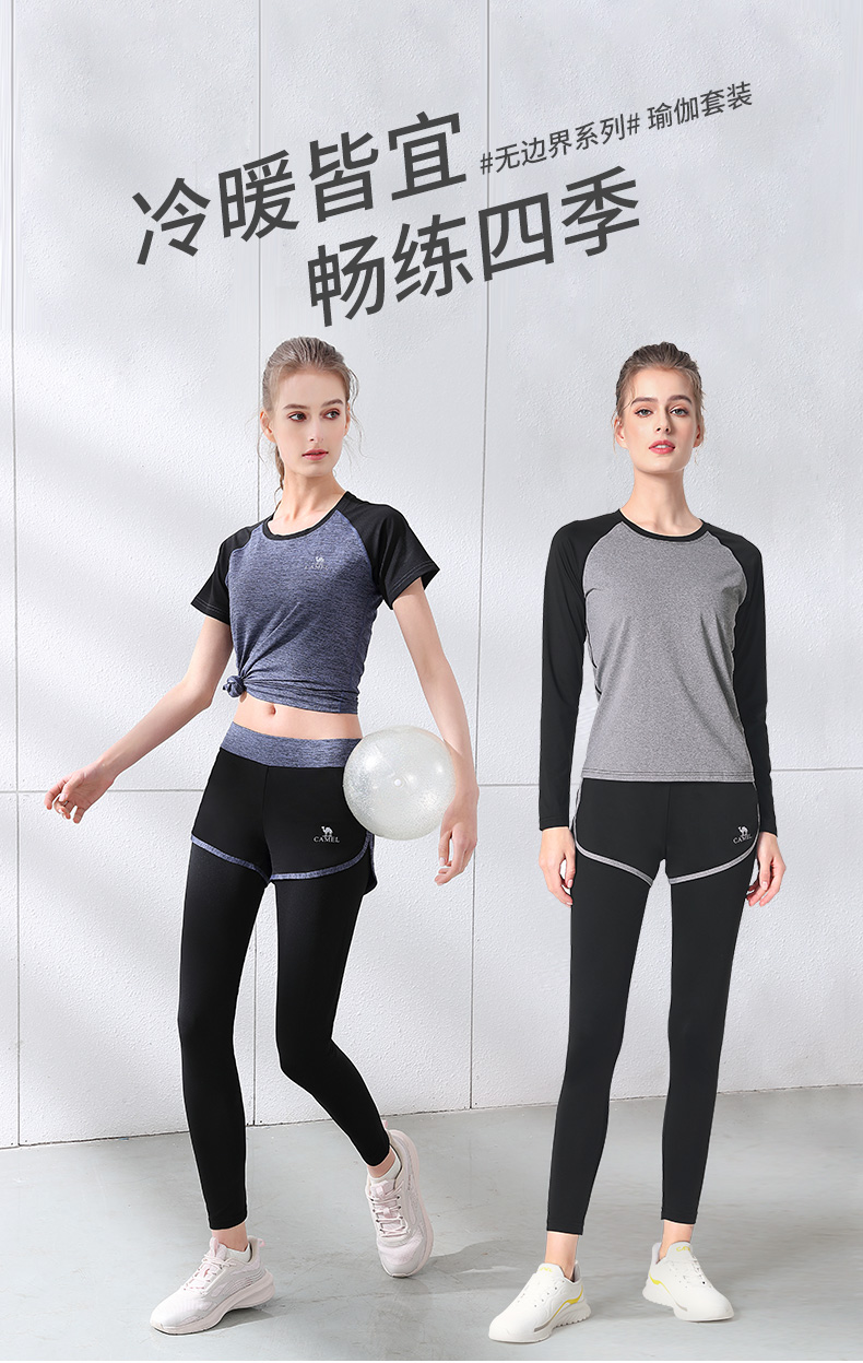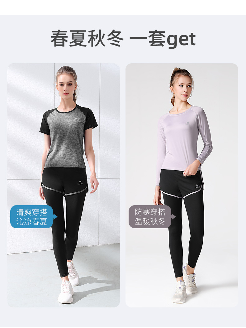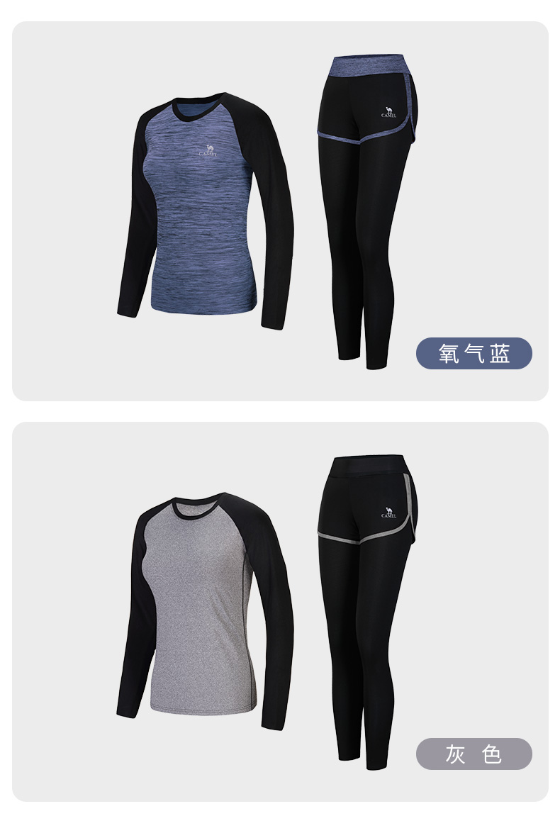 骆驼瑜伽服运动服套装女秋款健身服长袖两件套时尚跑步衣服YK22265494