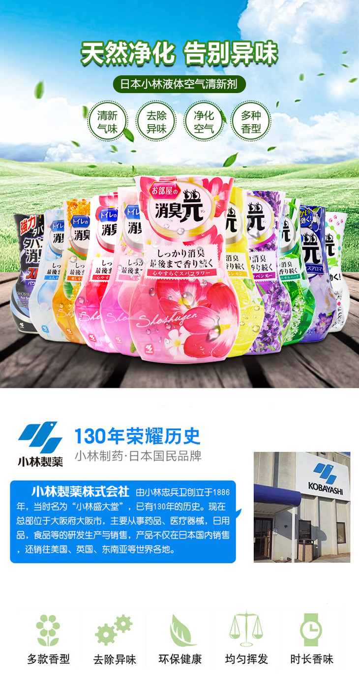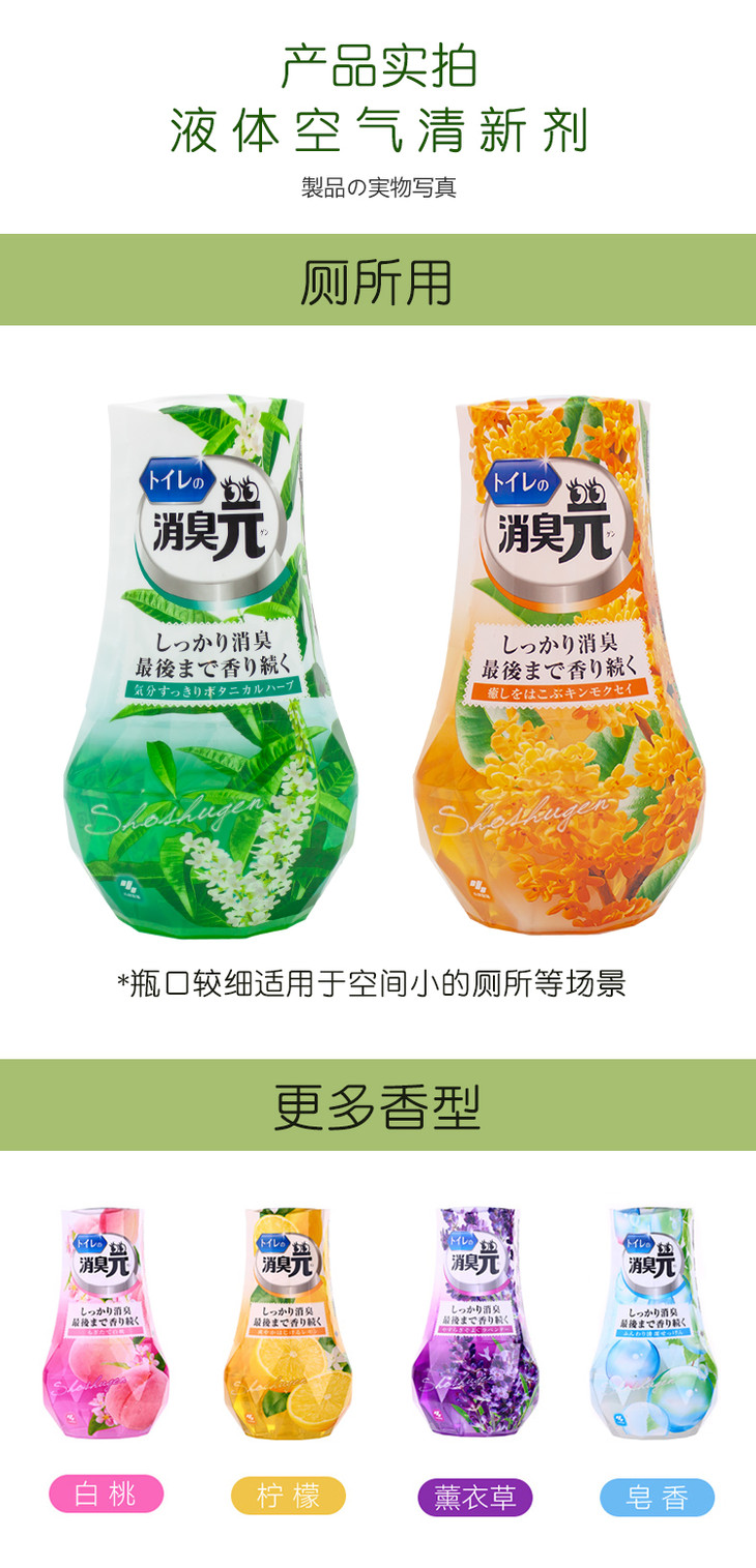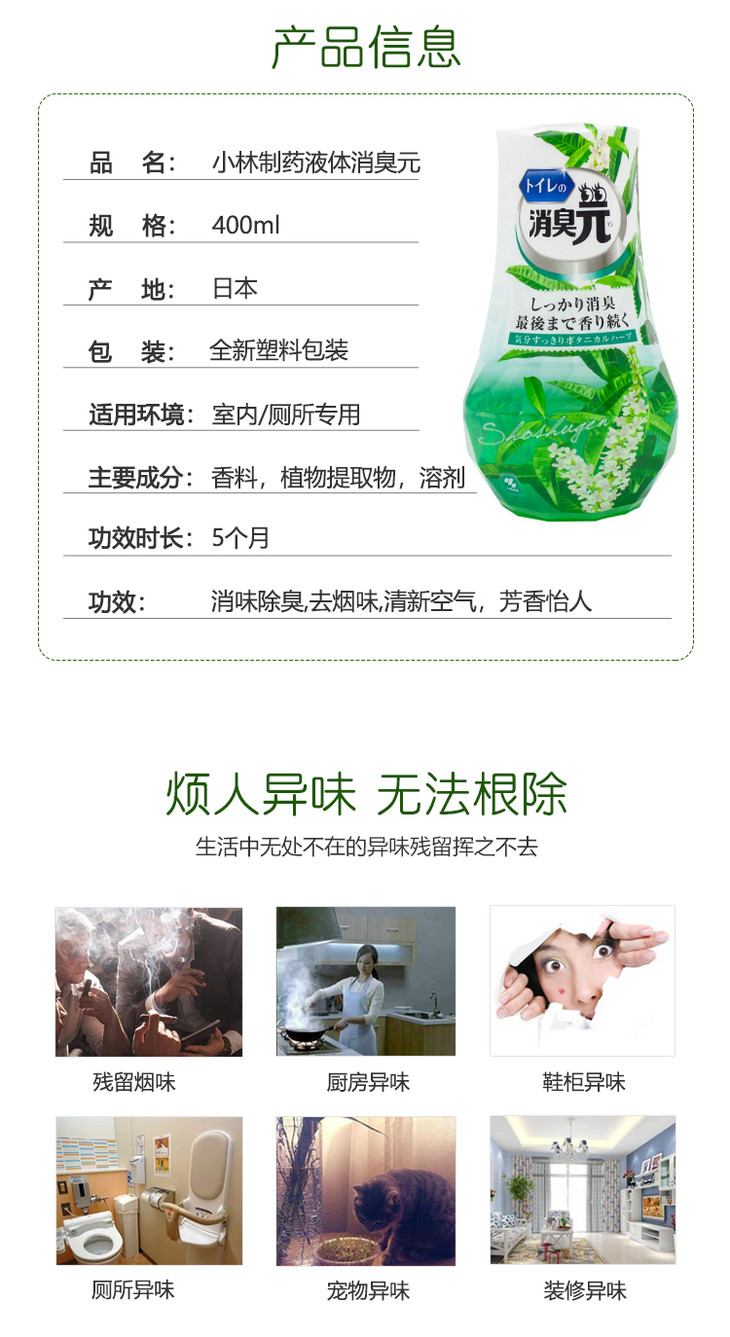 日本进口小林制药卫生间消臭空气清新剂 清新植物香 400ml
