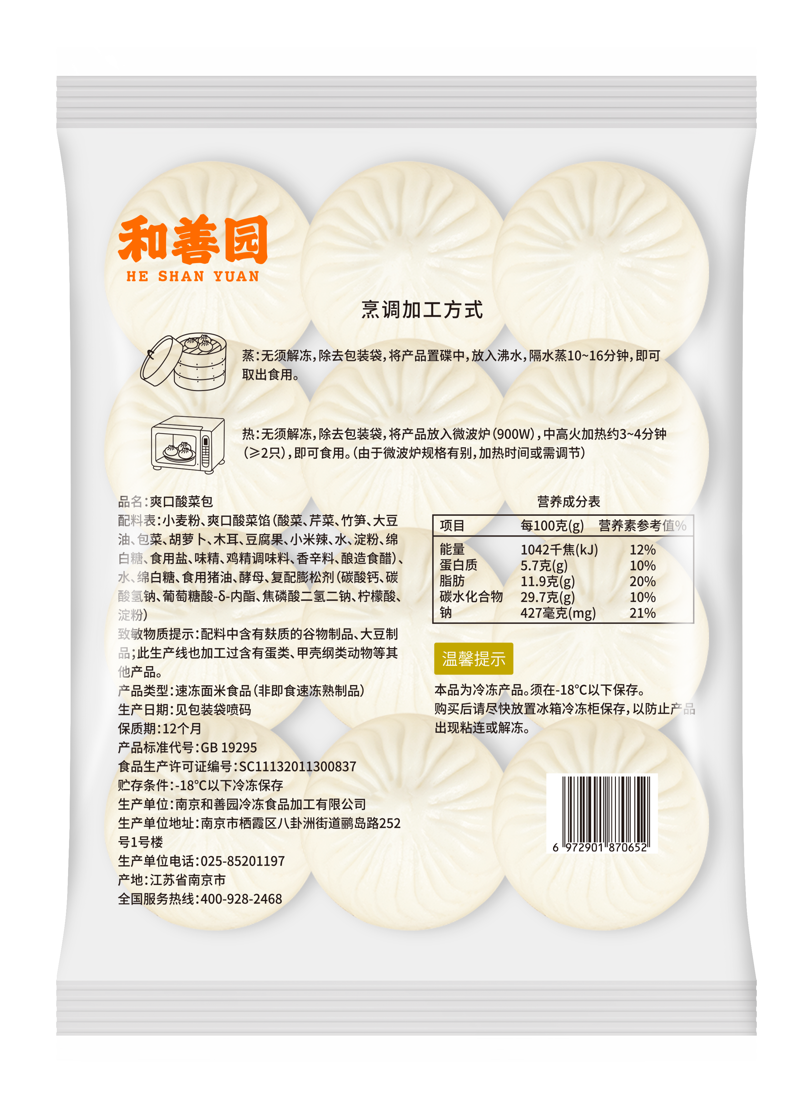 和善园酸菜包(80g*12个/袋)2袋