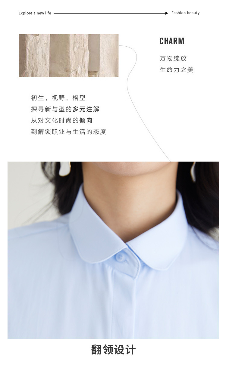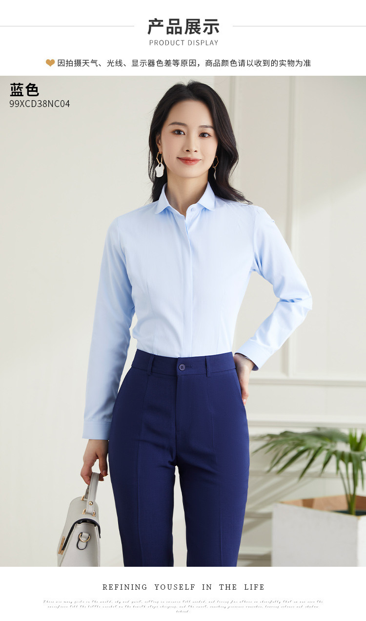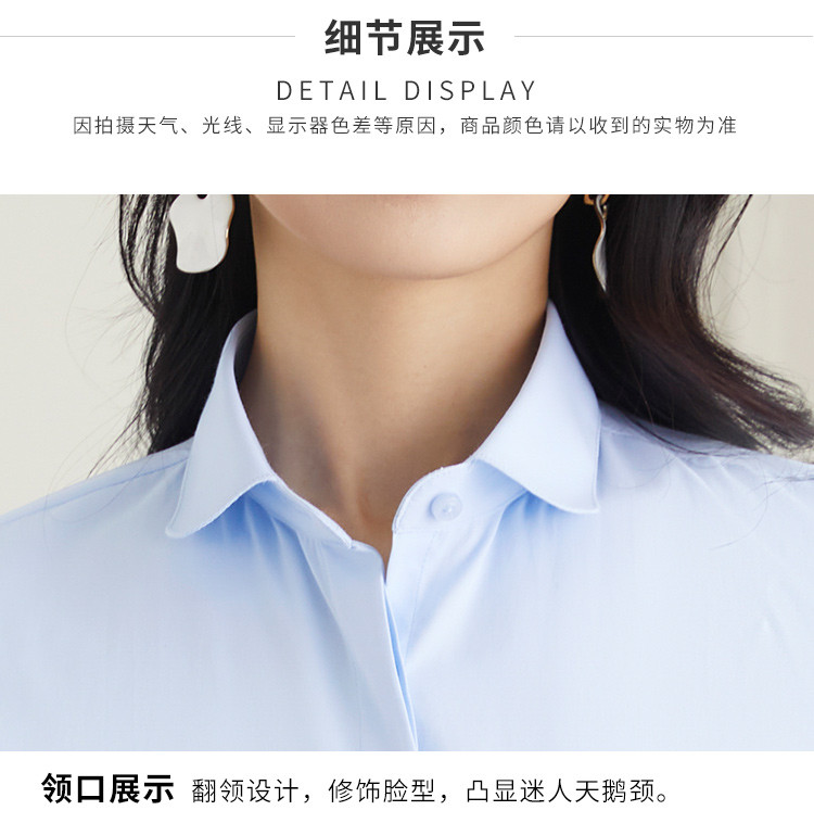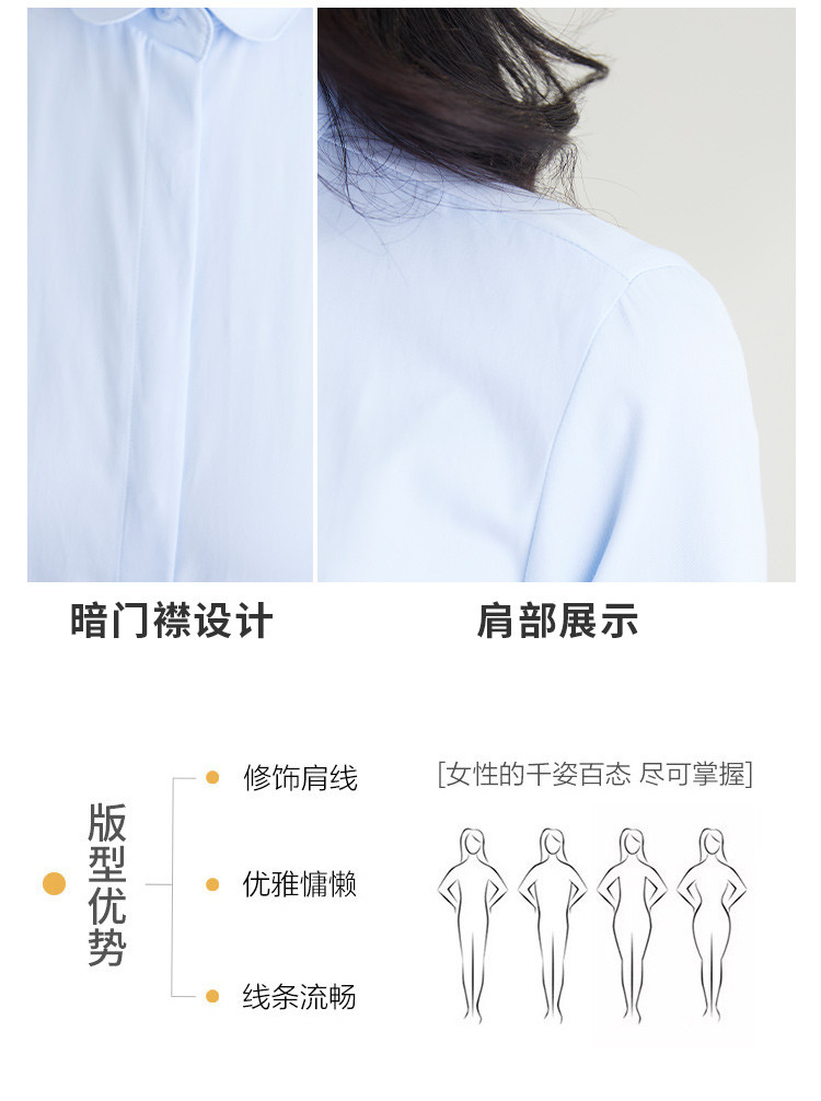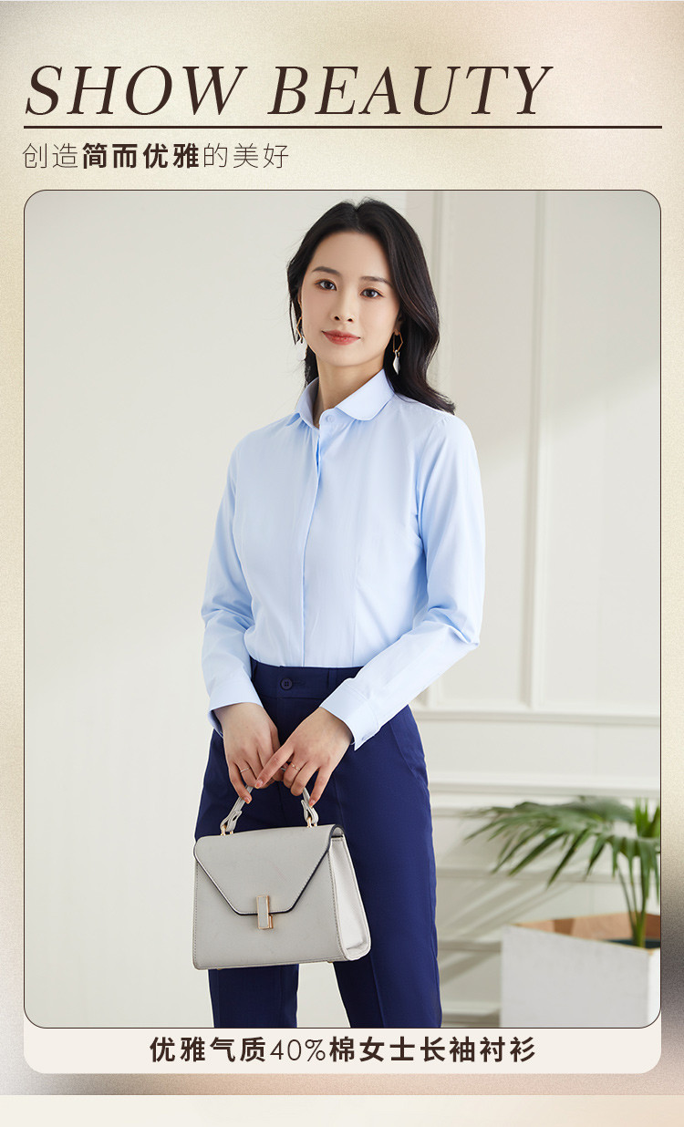 【40棉】罗蒙春秋女士长袖衬衫修身版商务通勤日常百搭纯色棉质衬衣