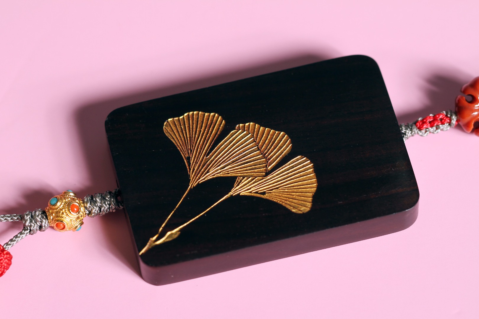 配件:紫光檀杏叶牌子46牌金色/回龙须灰色渐变/南红克罗心/银镀24K(4红4绿)/紫檀珠