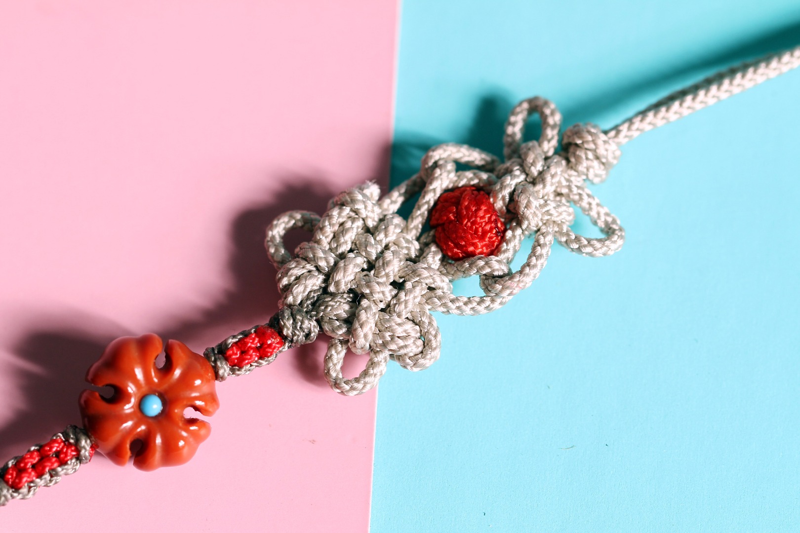 回龙须灰色渐变/南红克罗心/银镀24K(4红4绿)/紫檀珠