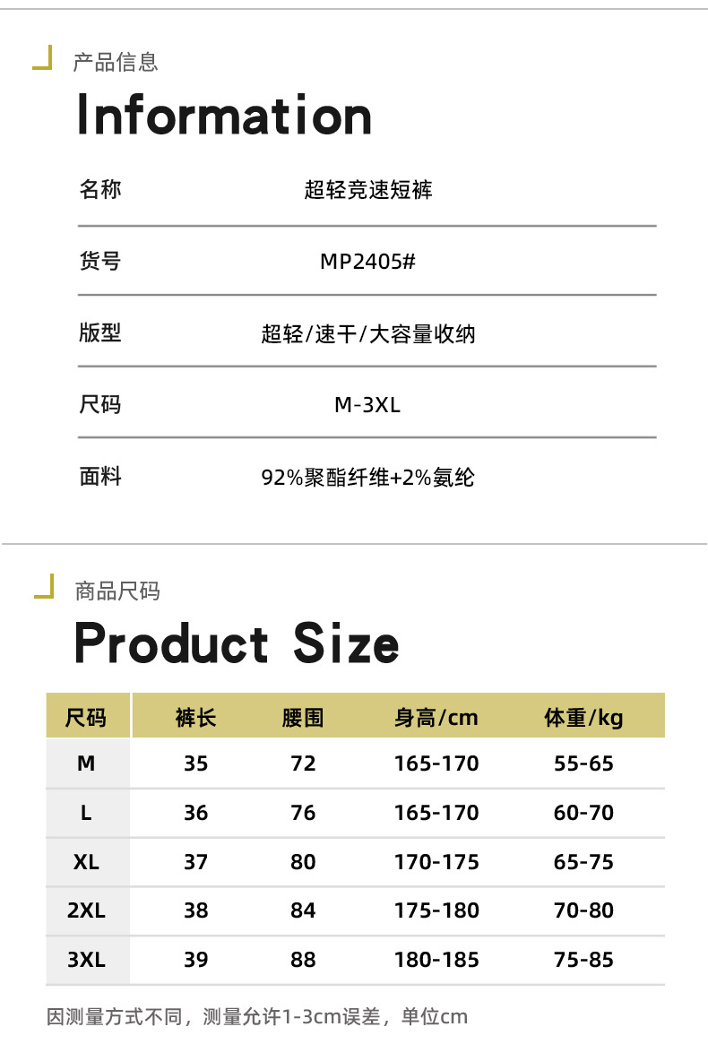 积能 单层运动跑步短裤男款夏季速干运动健身训练三分裤