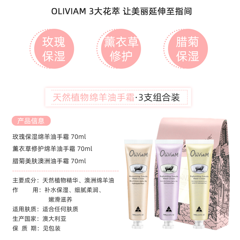 【中欧班列】澳洲护手霜套装 原装进口OLIVIAM/澳莉维亚玫瑰薰衣草蜡菊南澳老街风护手霜三件套