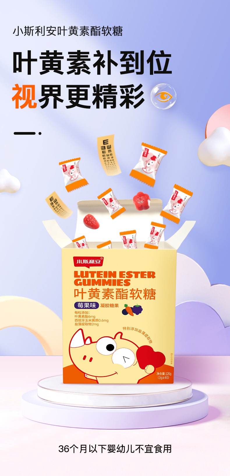 【社群粉丝福利】小斯利安叶黄素酯软糖(莓果味)40袋*1盒守护宝宝眼睛