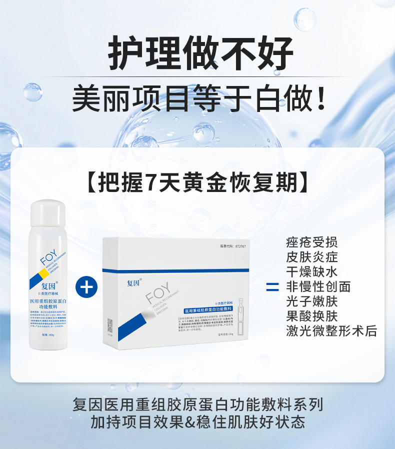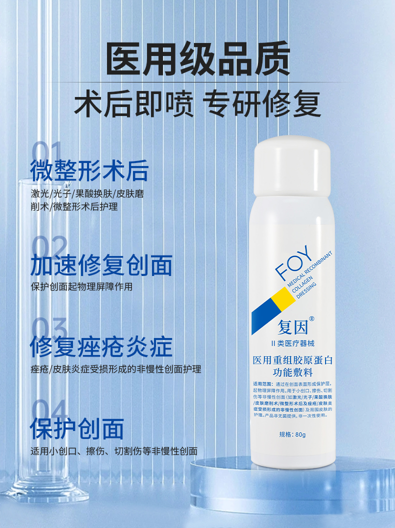 【限时特价】复因重组胶原修复2件套【医用重组胶原蛋白功能敷料-二元喷雾80g+医用重组胶原蛋白凝胶敷料-I型30g】