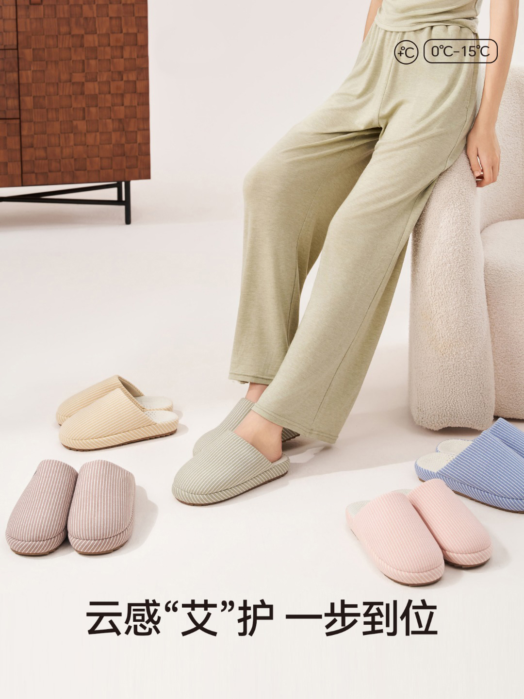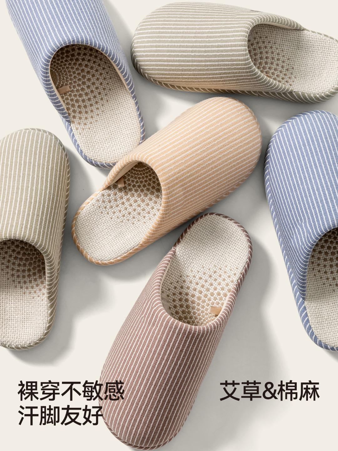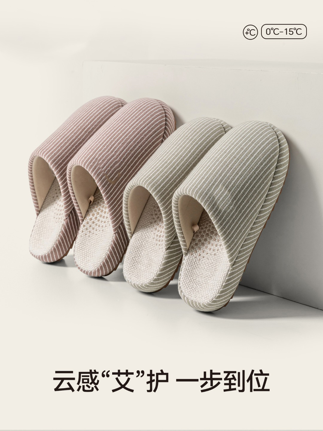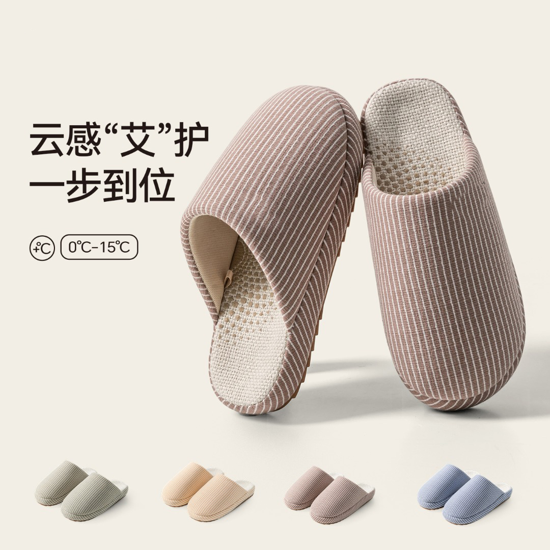 【36-42码】男/女冬季布面艾草棉拖家居拖鞋室内防滑男棉拖鞋女拖鞋【WG25657W/WG25657M】