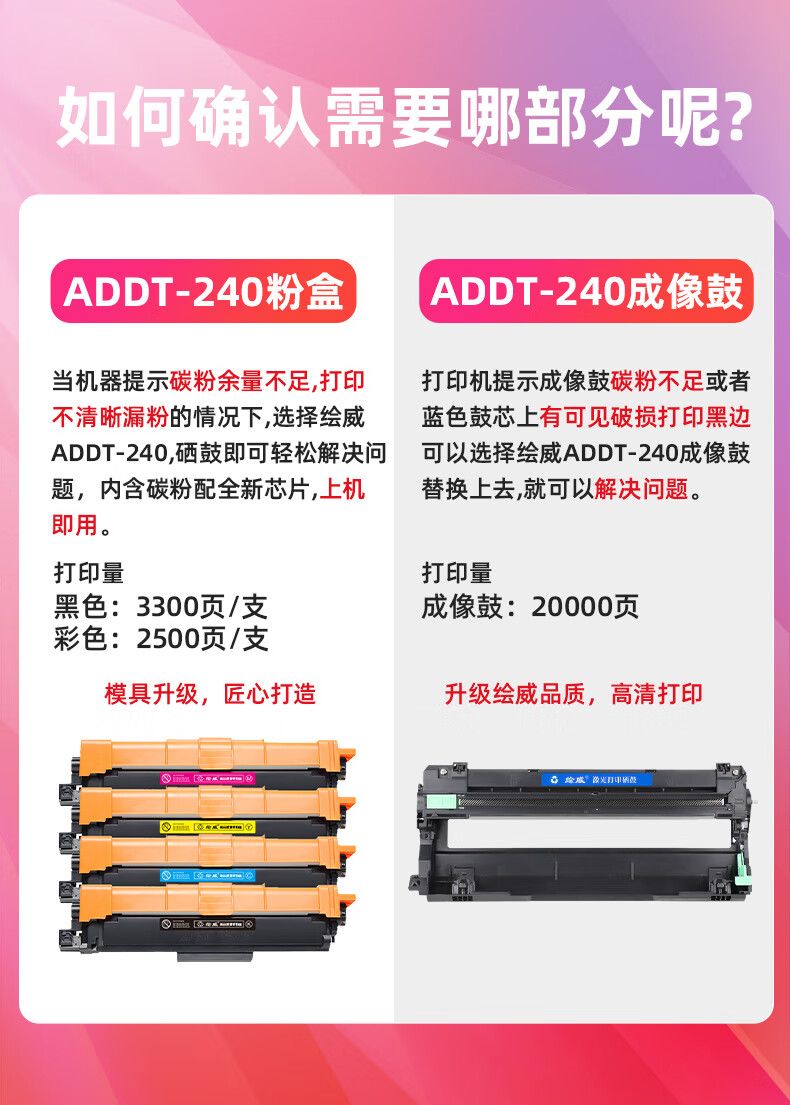 绘威ADDT-240大容量粉盒、ADDU-240硒鼓架(四色通用) 适用震旦AURORA ADC240MNA复印机墨盒 墨粉(彩色机)