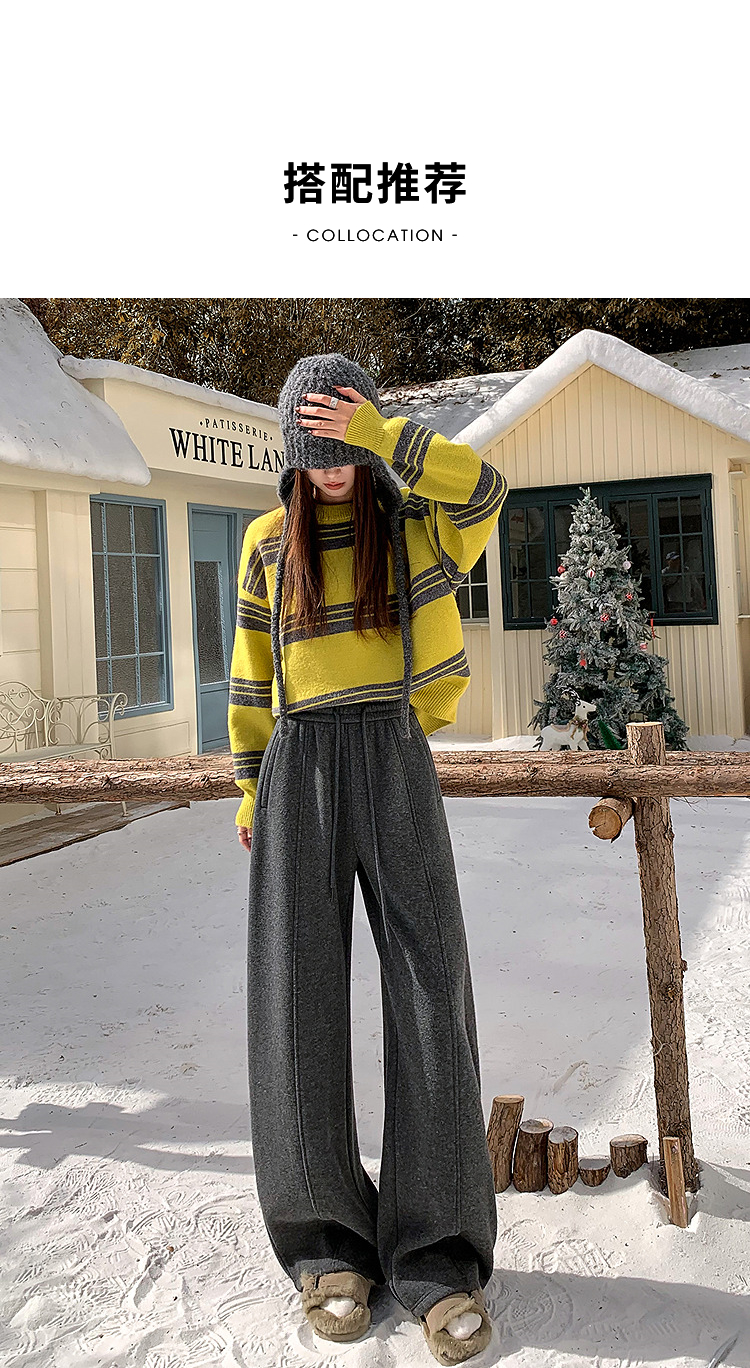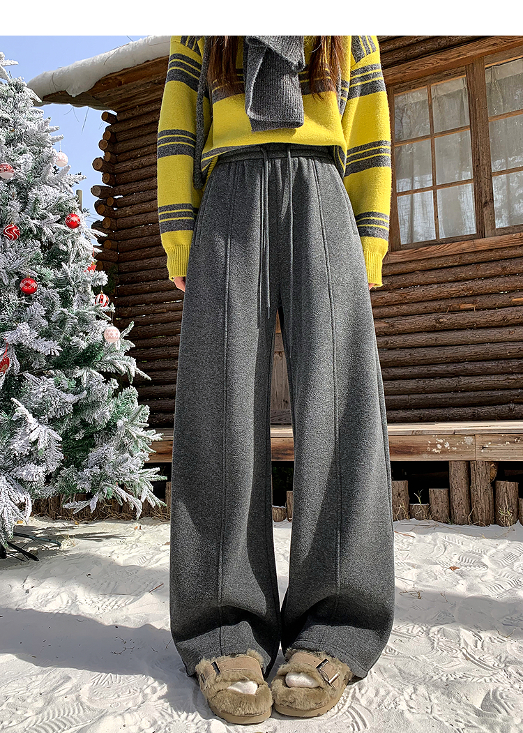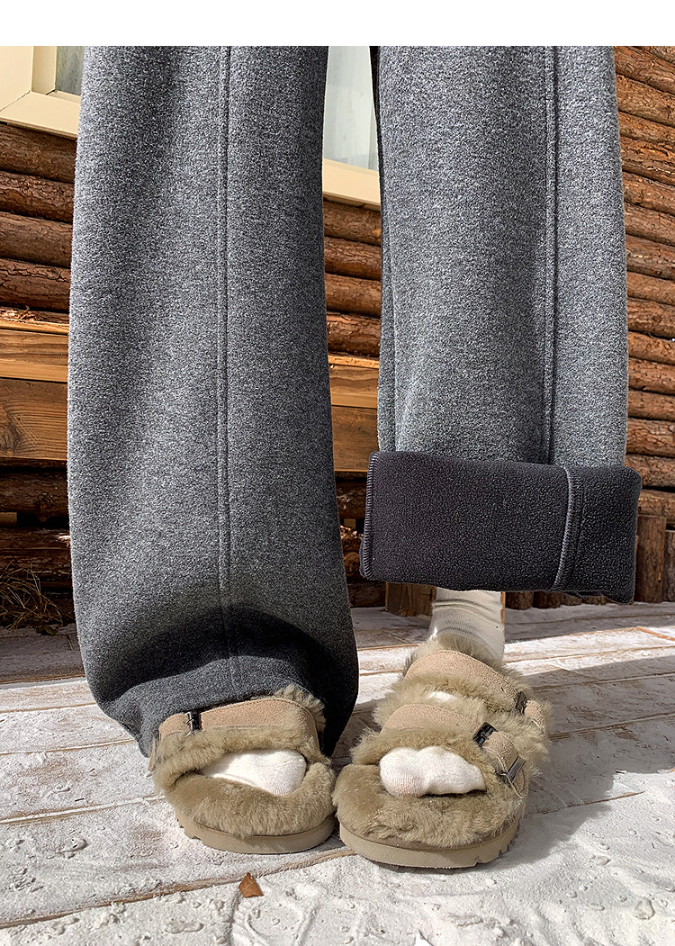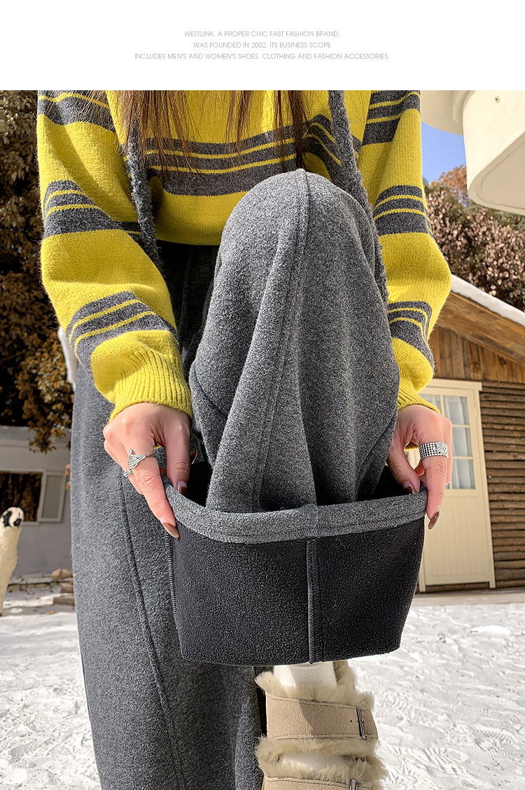 西遇韩系加绒弯刀裤女冬季新款高腰软糯毛呢云朵阔腿裤SS051993