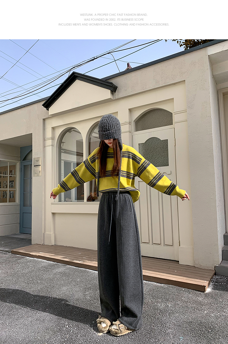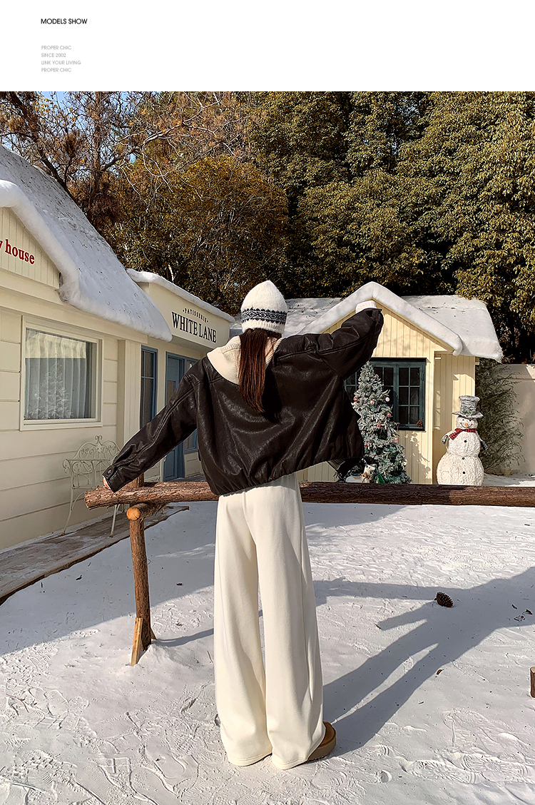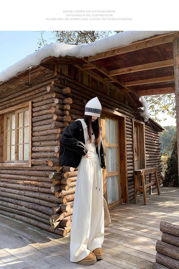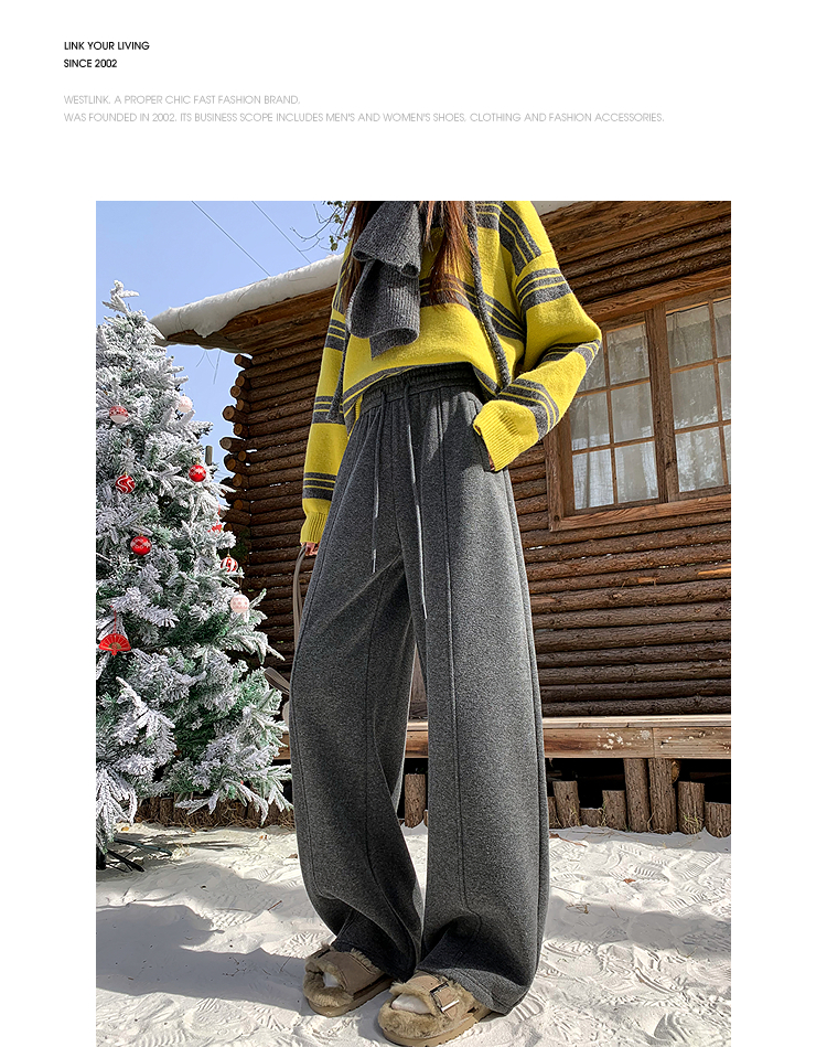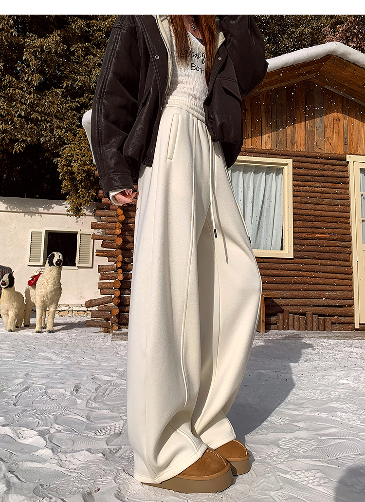 西遇韩系加绒弯刀裤女冬季新款高腰软糯毛呢云朵阔腿裤SS051993