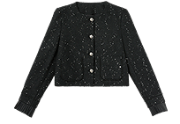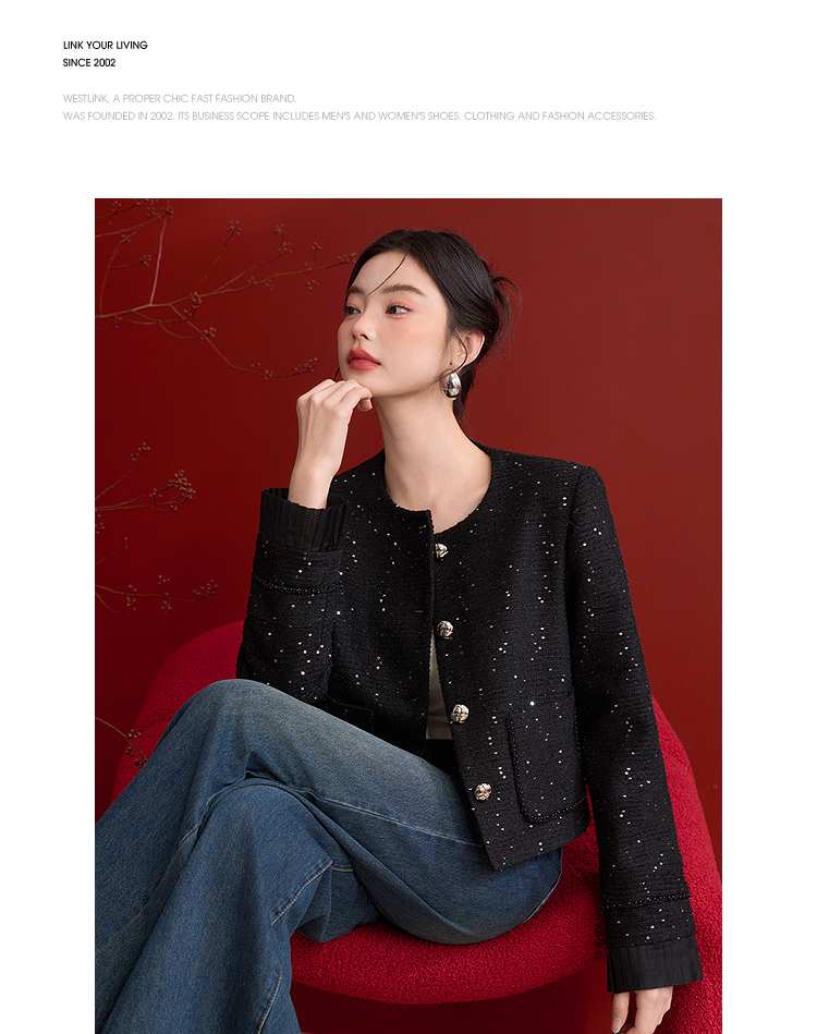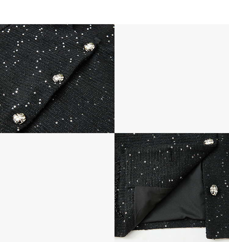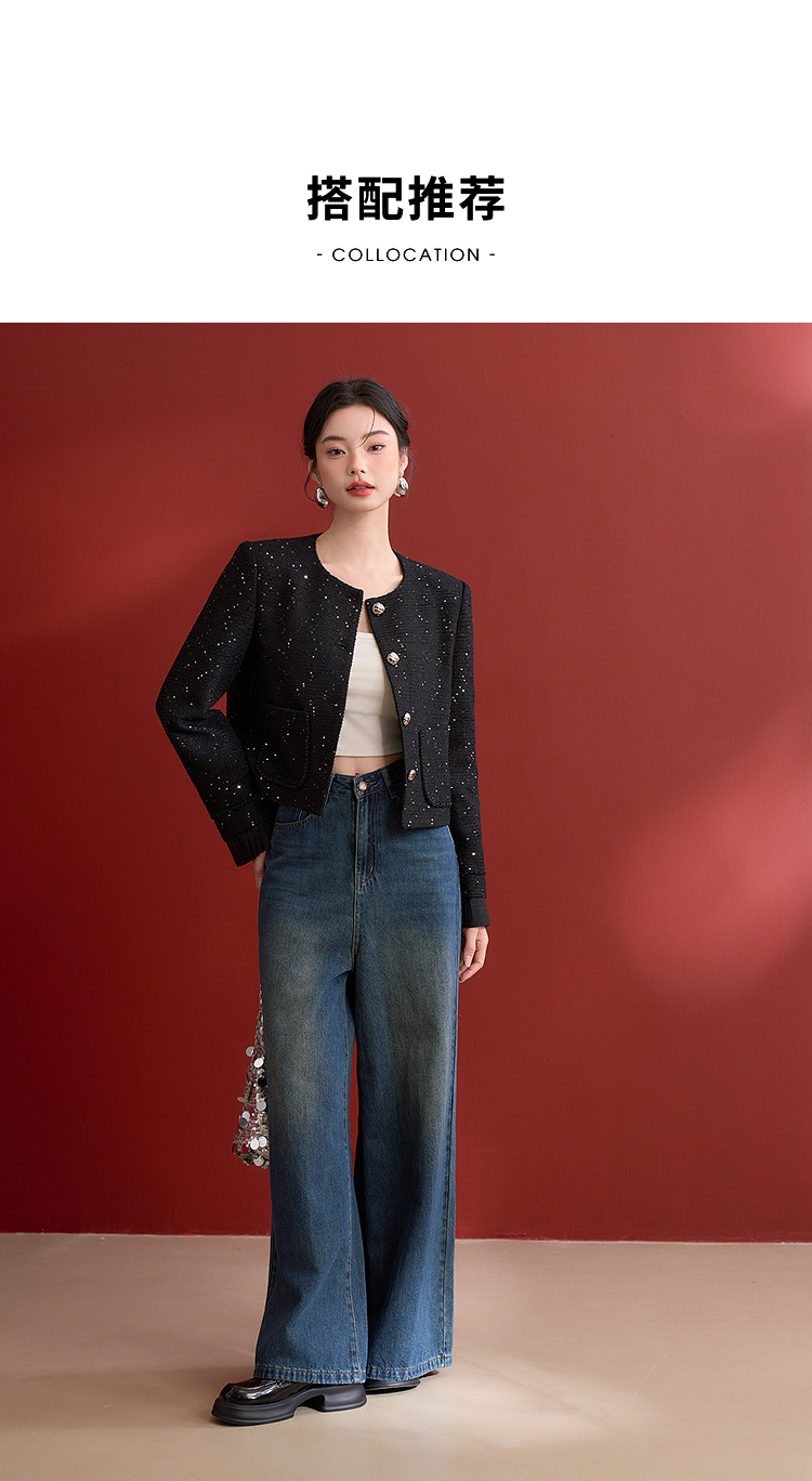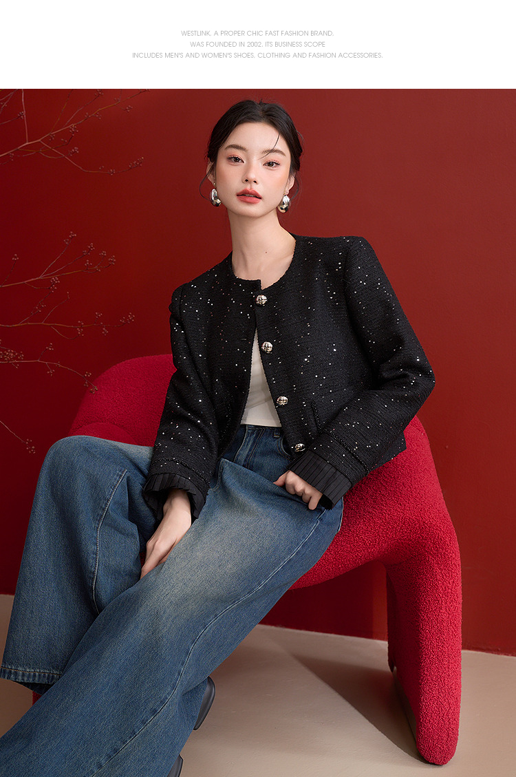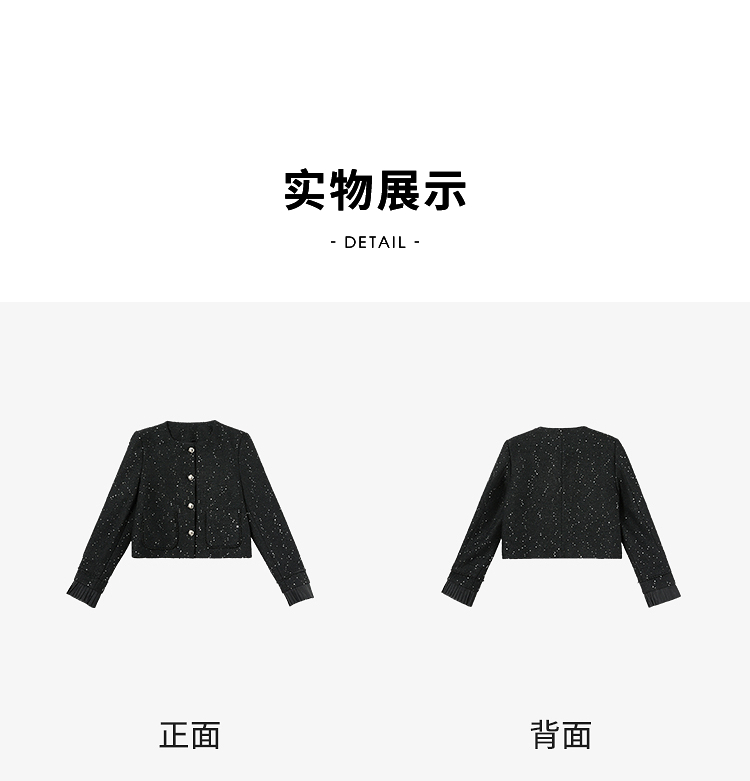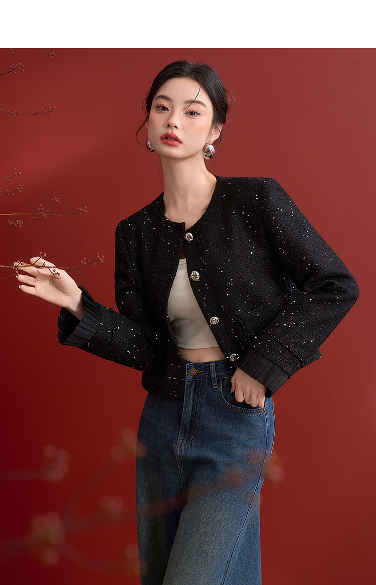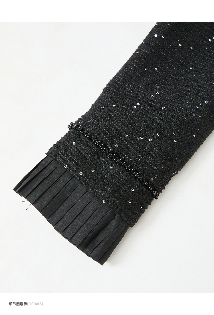 名媛千金风亮片细闪小香风外套女毛边圆领上衣V0150151