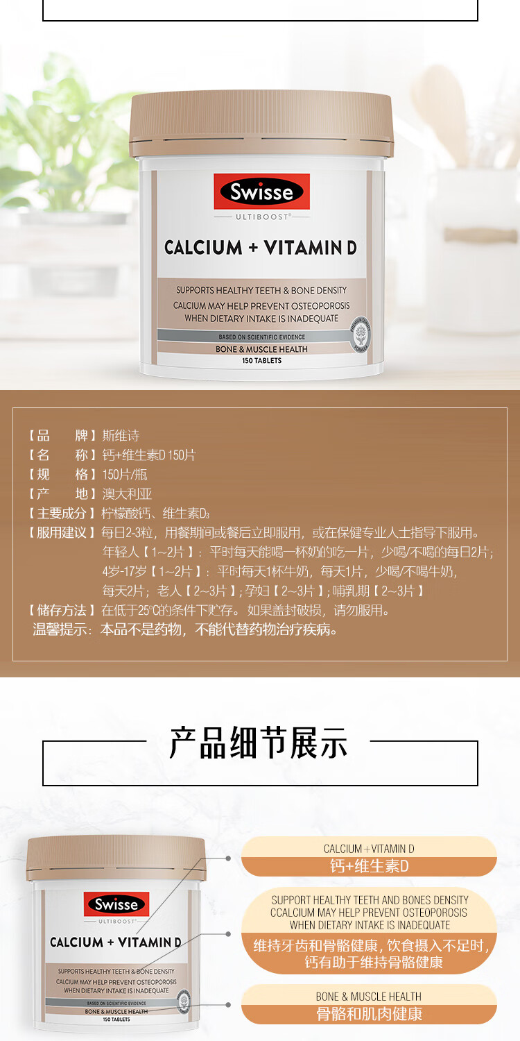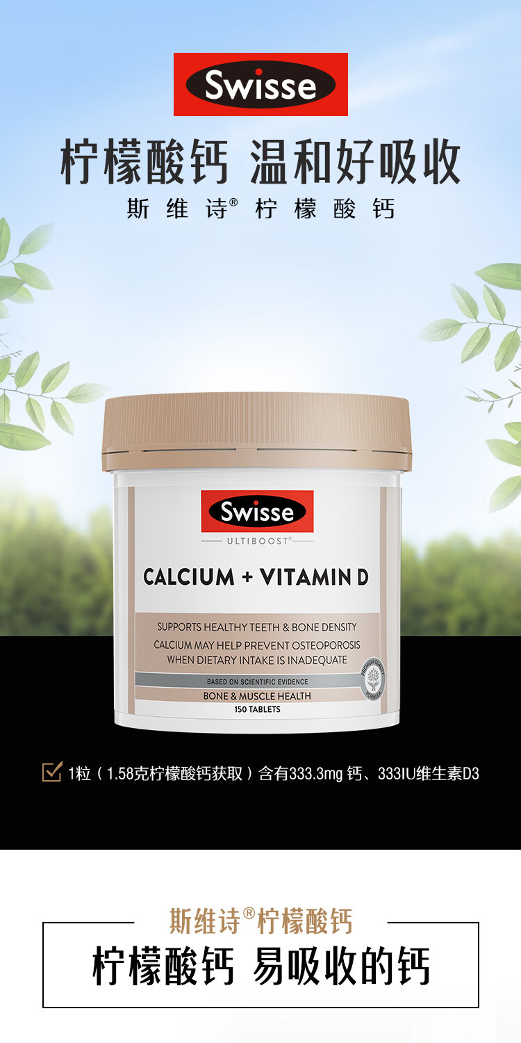 【海豚美购】澳大利亚Swisse斯维诗钙+维生素D片150片