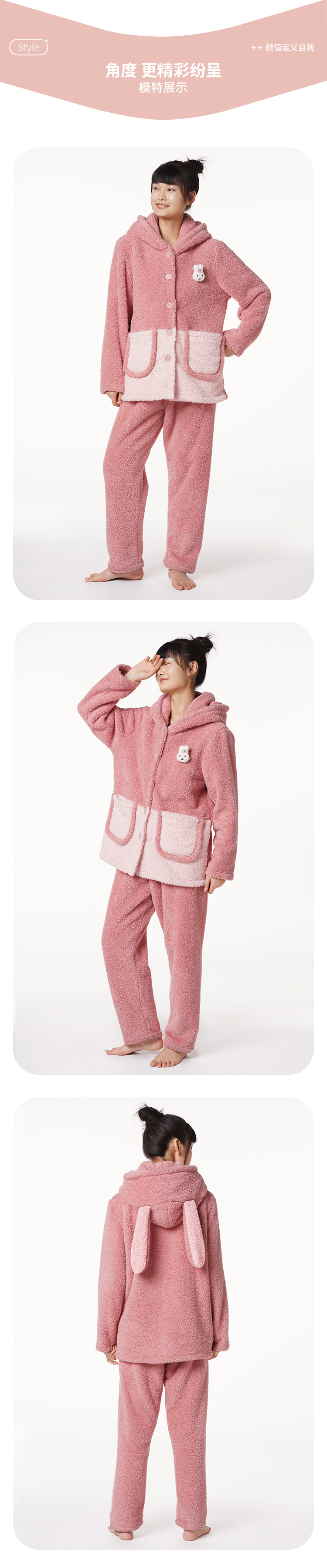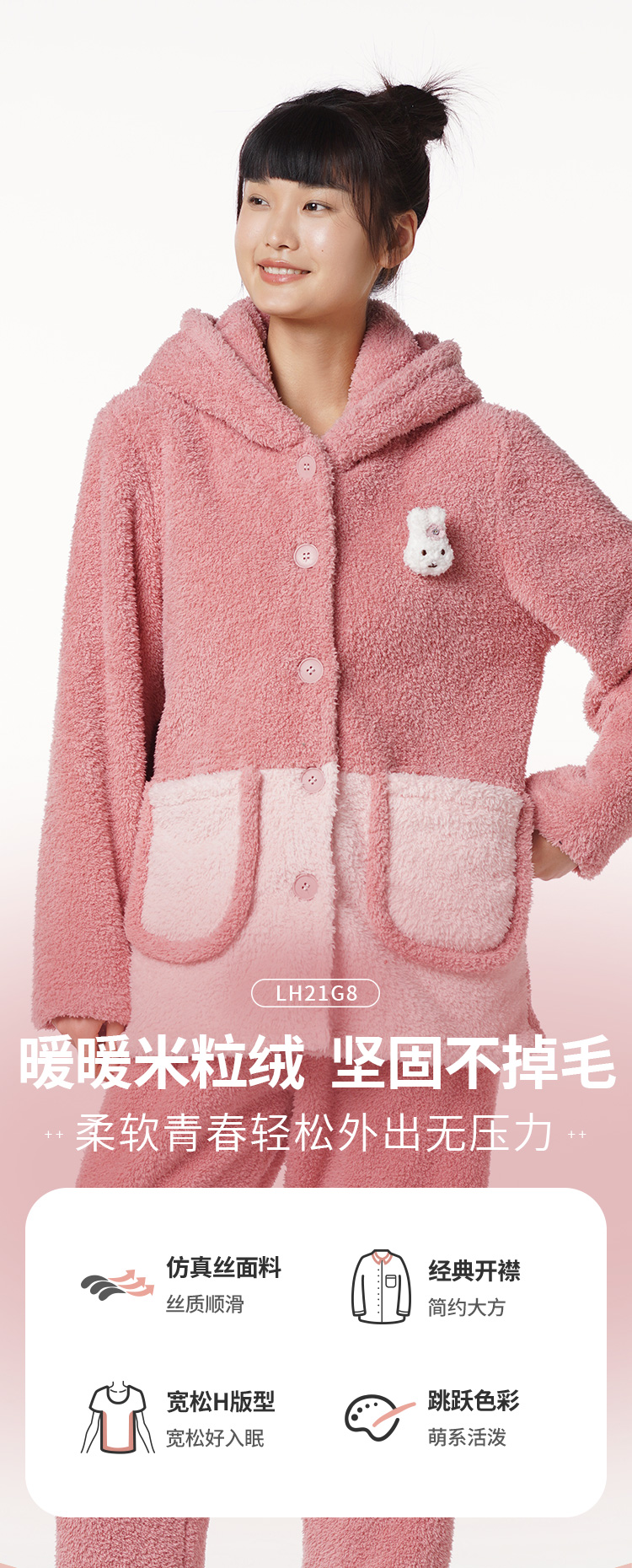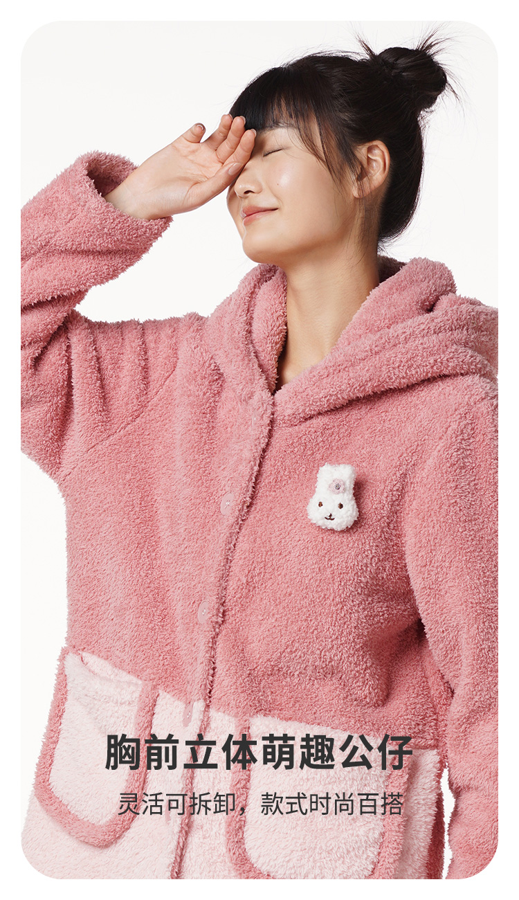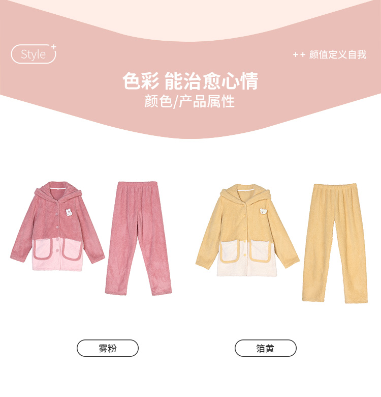 都市丽人生活家居女士米粒绒套装米粒绒厚家居服长袖睡衣LH21G8