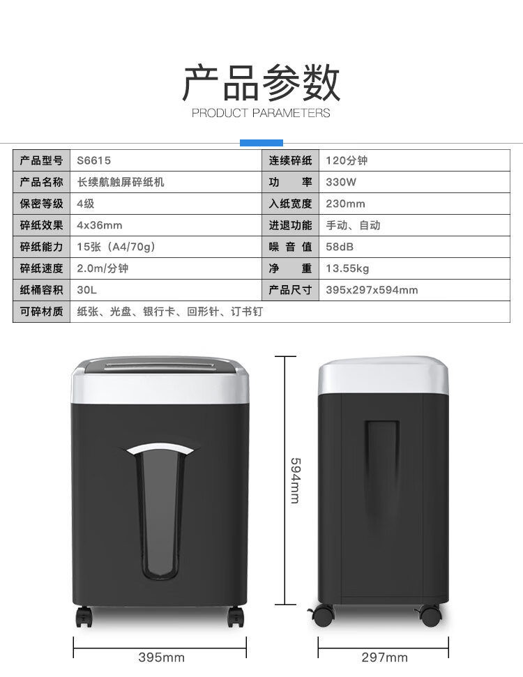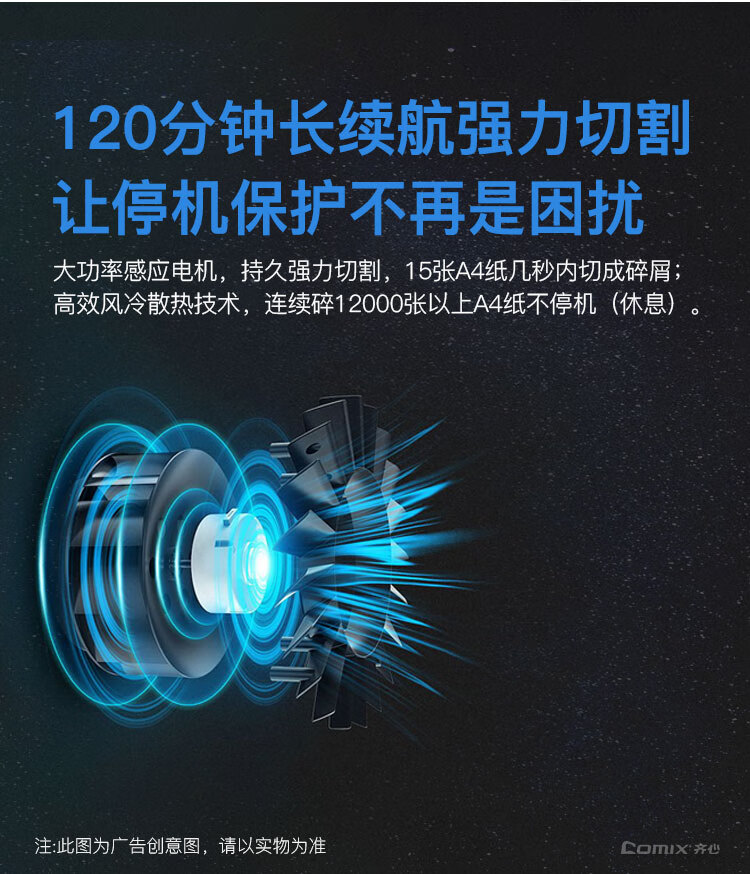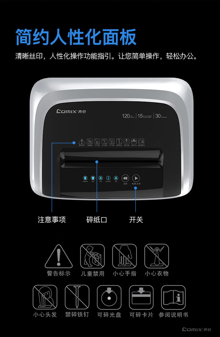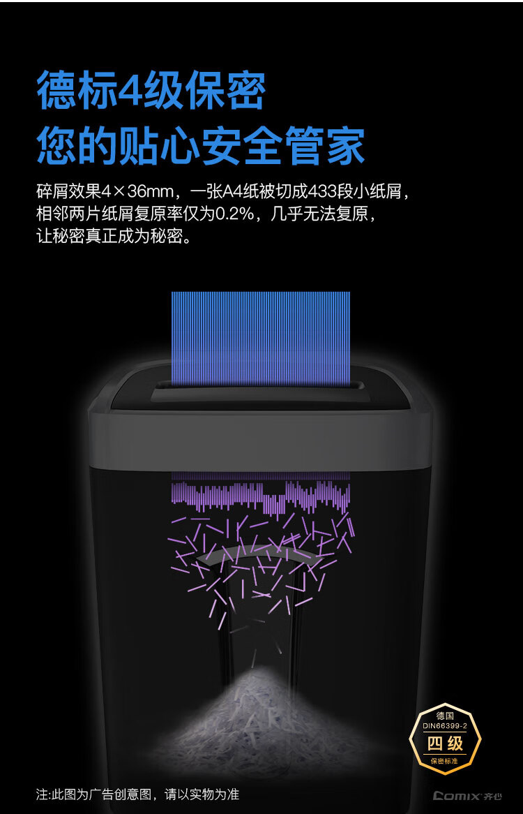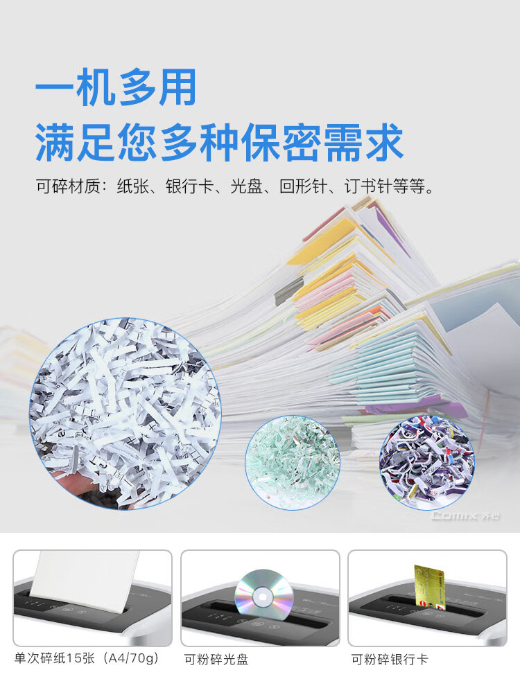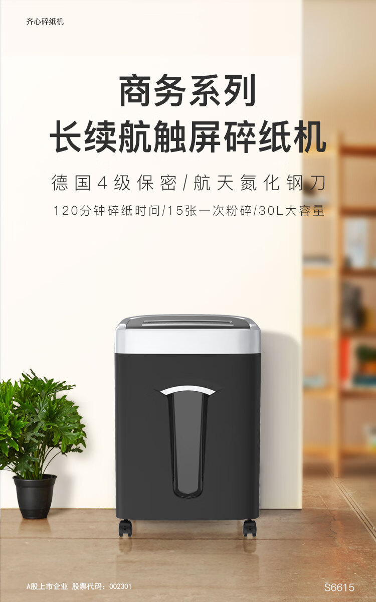 齐心(Comix)4级保密办公商用长续航不卡纸碎纸机S6615 黑银