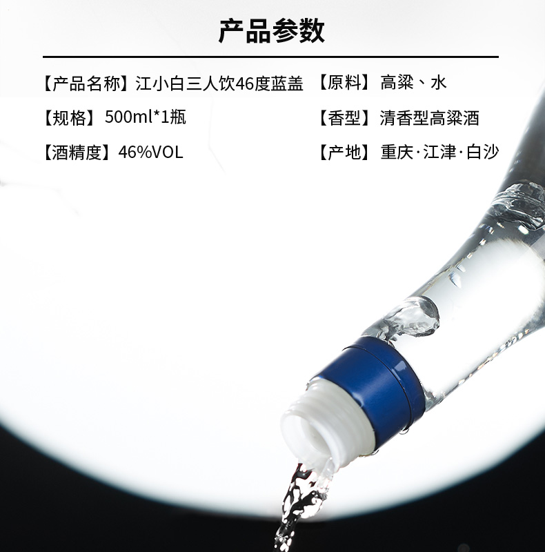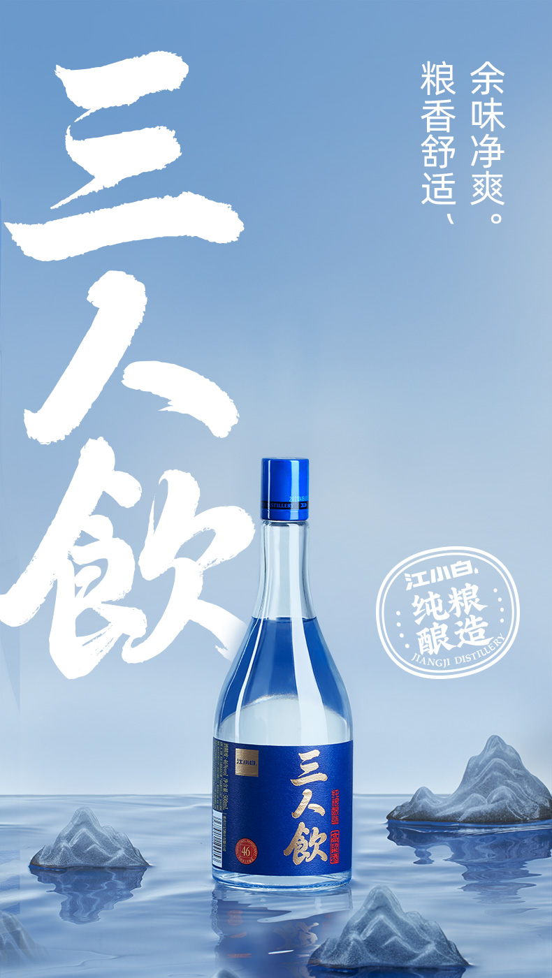 江小白 三人饮 纯酿造高粱酒 46度 整箱500ml *8瓶