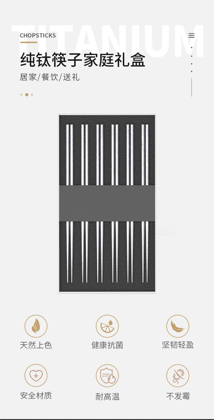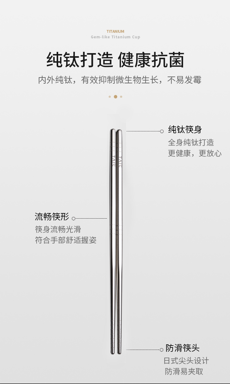 TAIC太可钛筷子户外家用防滑金属纯钛筷健康轻便纯钛餐具筷子套装-YHD