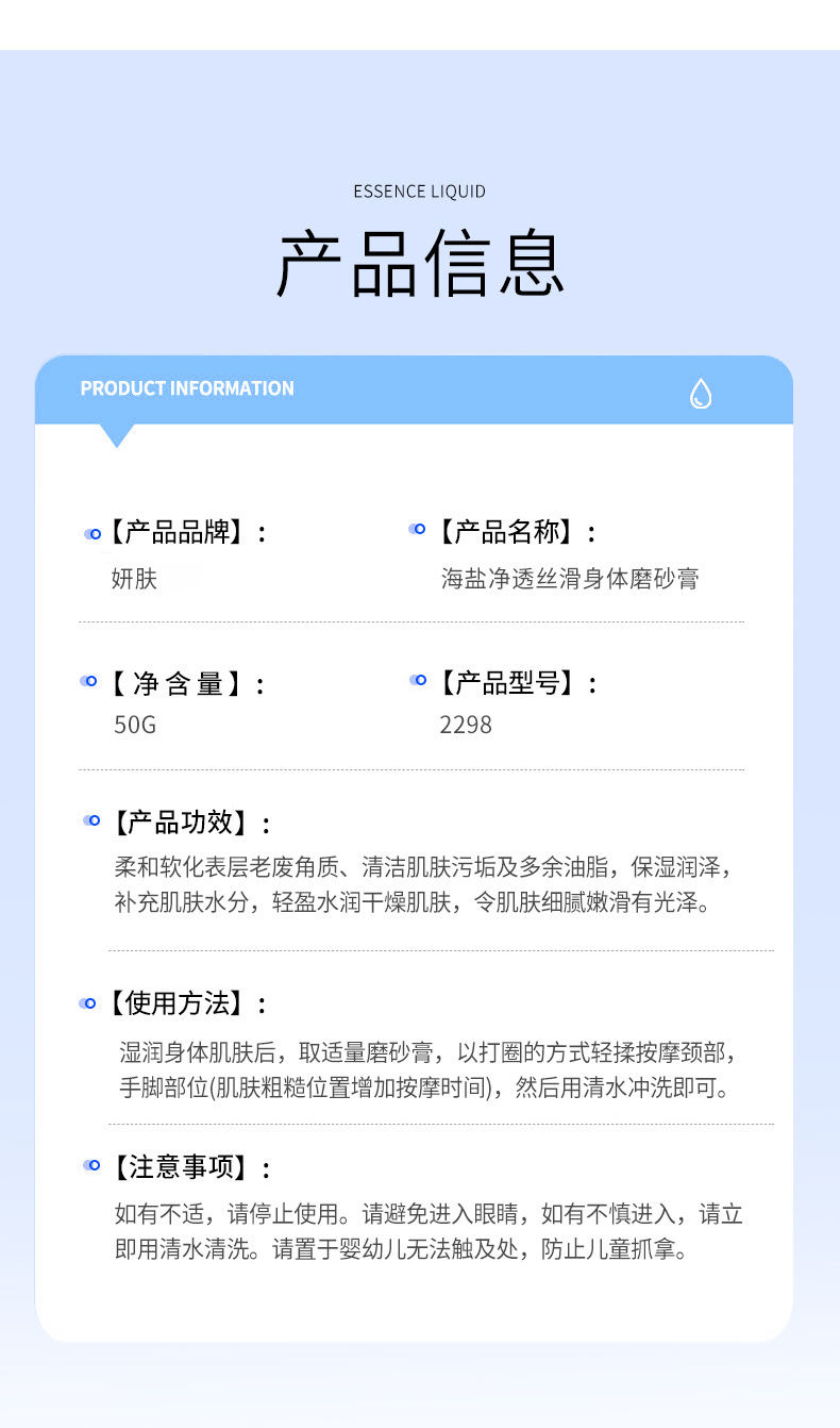 「买1送1!19.9到手两支」妍肤海盐深层清洁丝滑身体磨砂膏 嫩肤软化角质沐浴膏留香