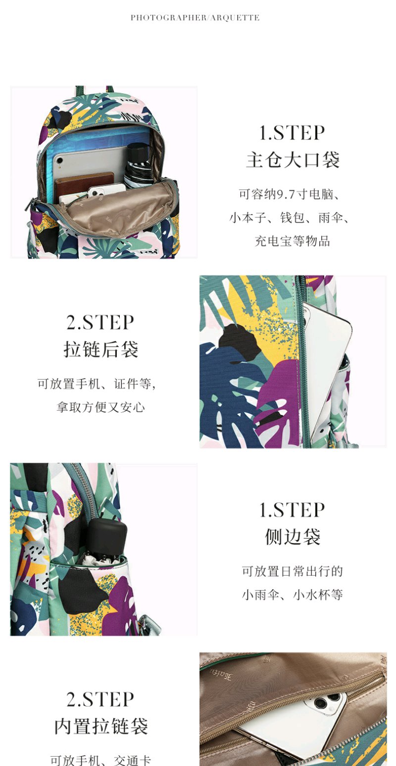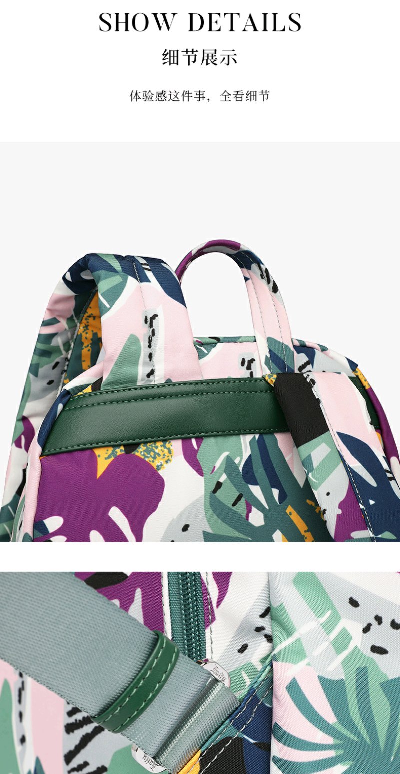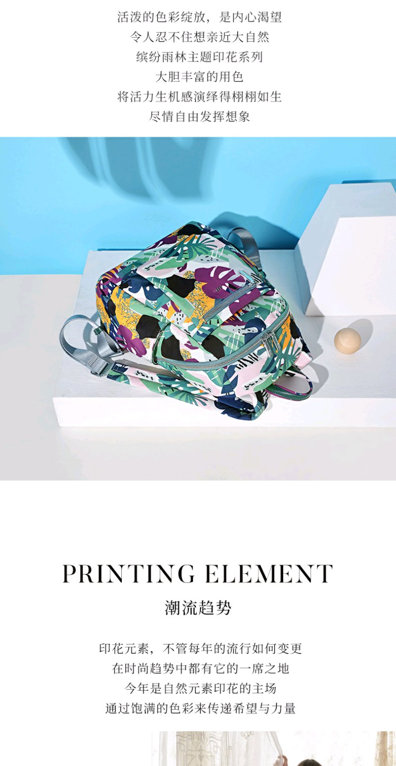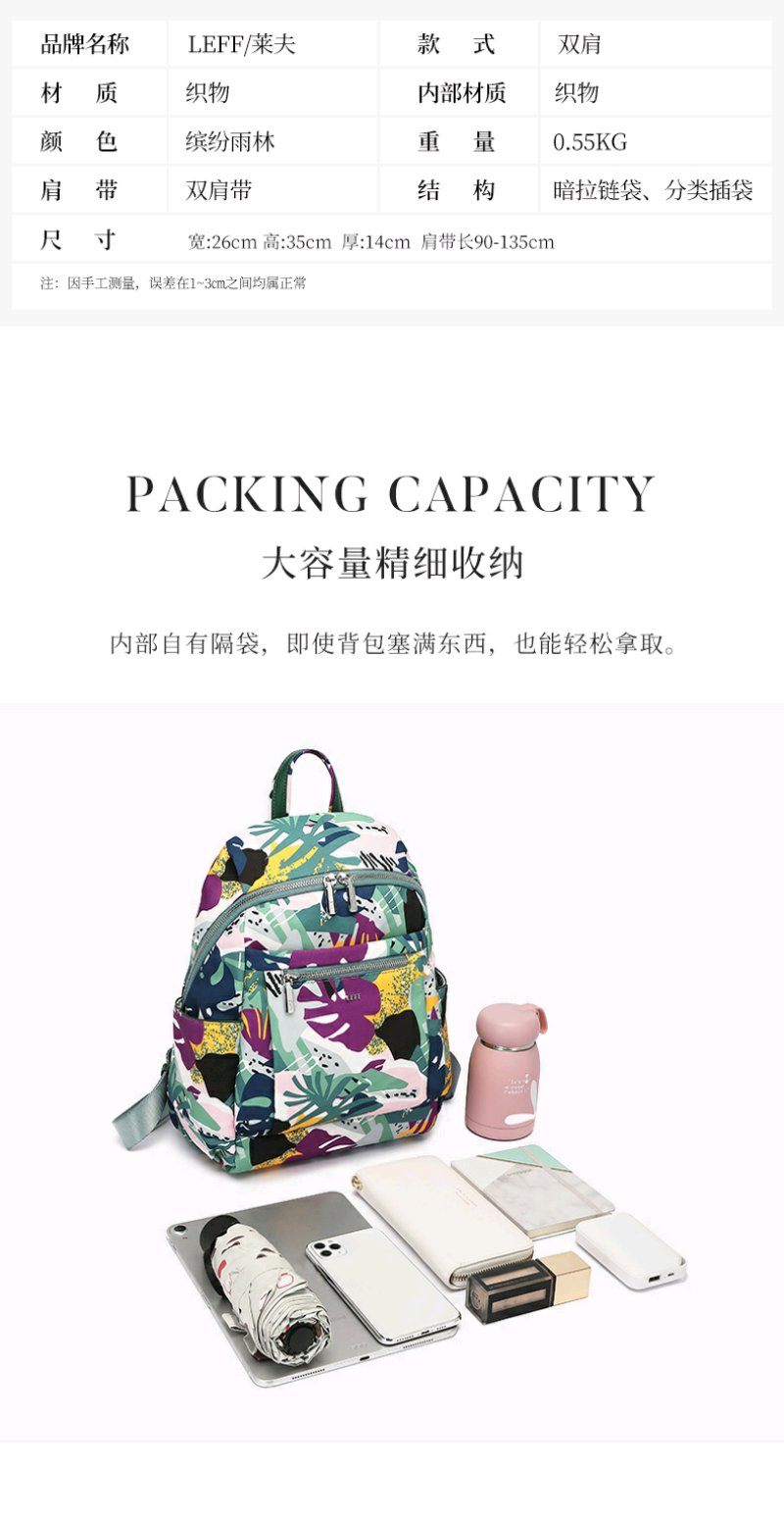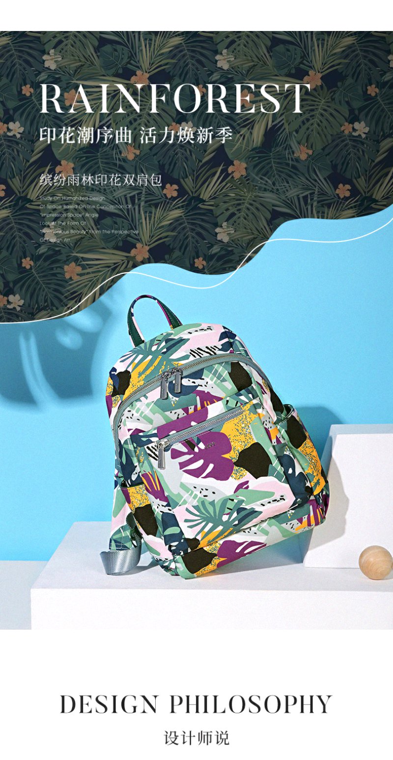 莱夫包包女包双肩包 旅游休闲简约气质尼龙布女士背包时尚森林印花书包新年礼物送妈妈 缤纷雨林