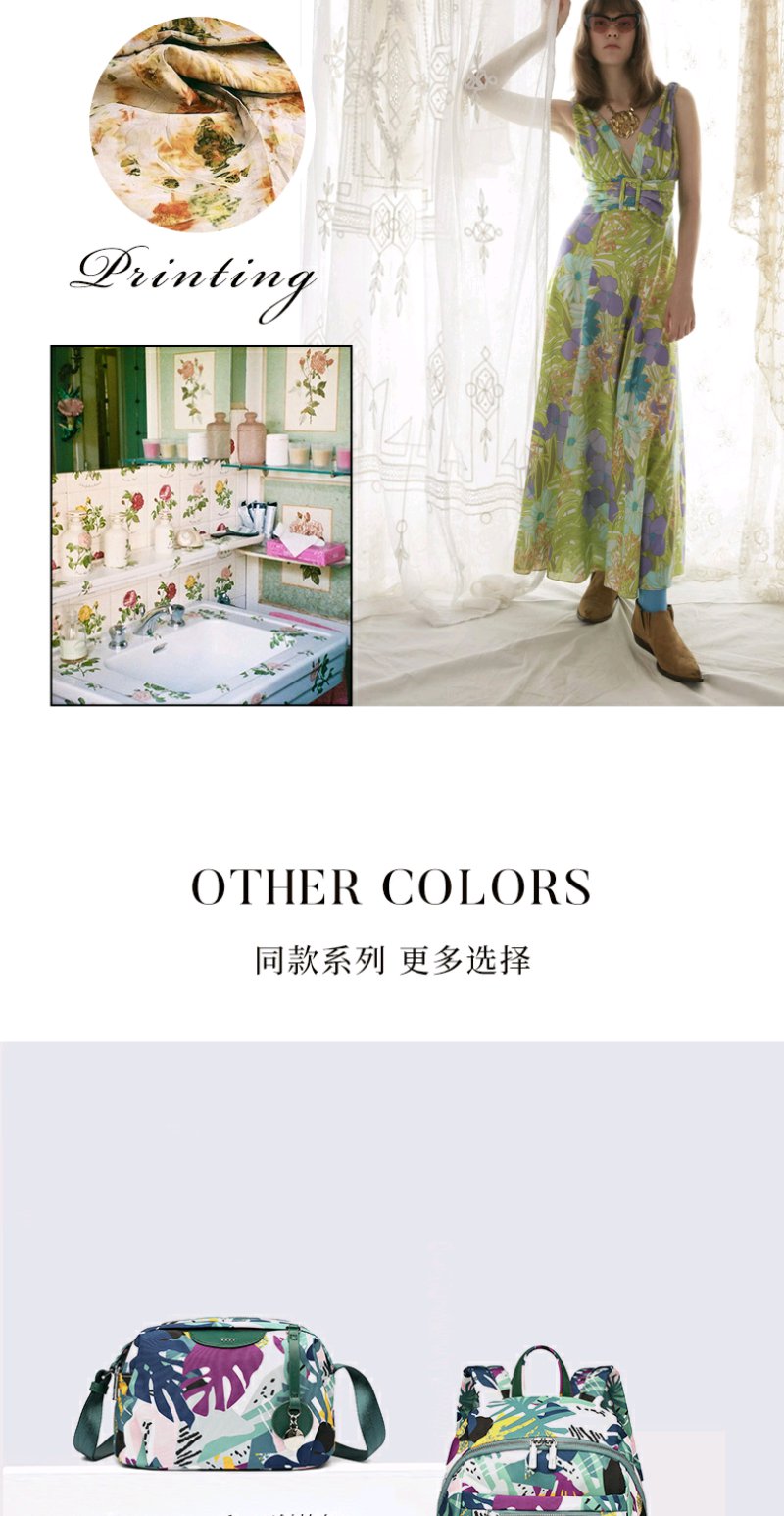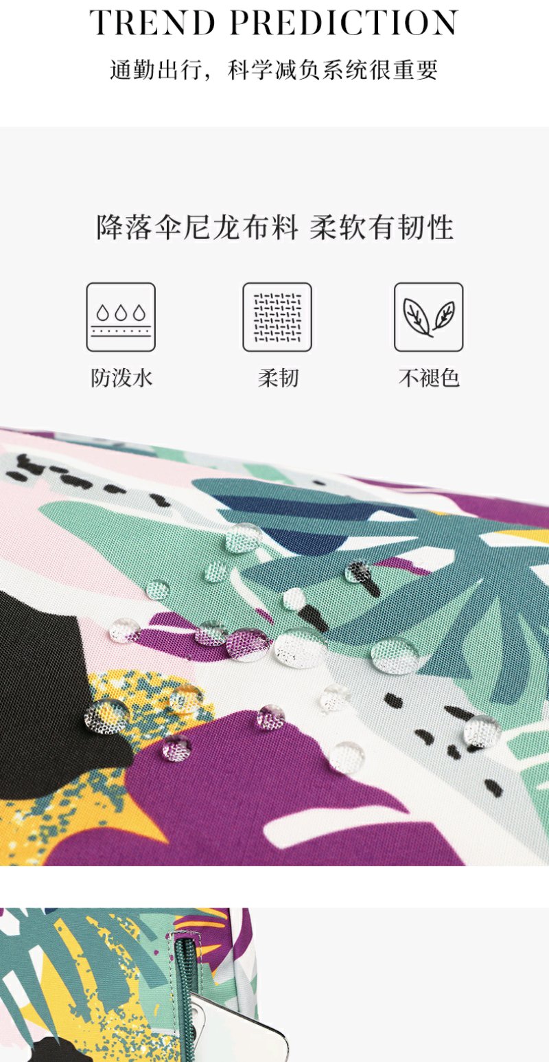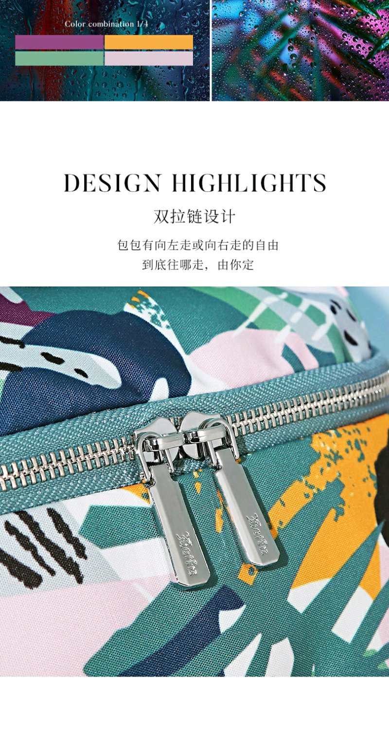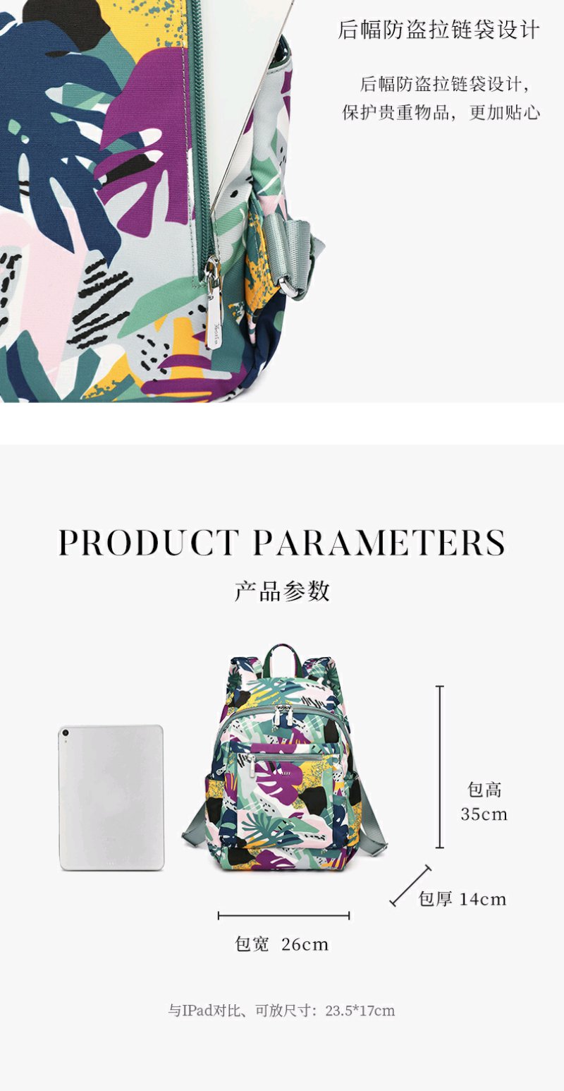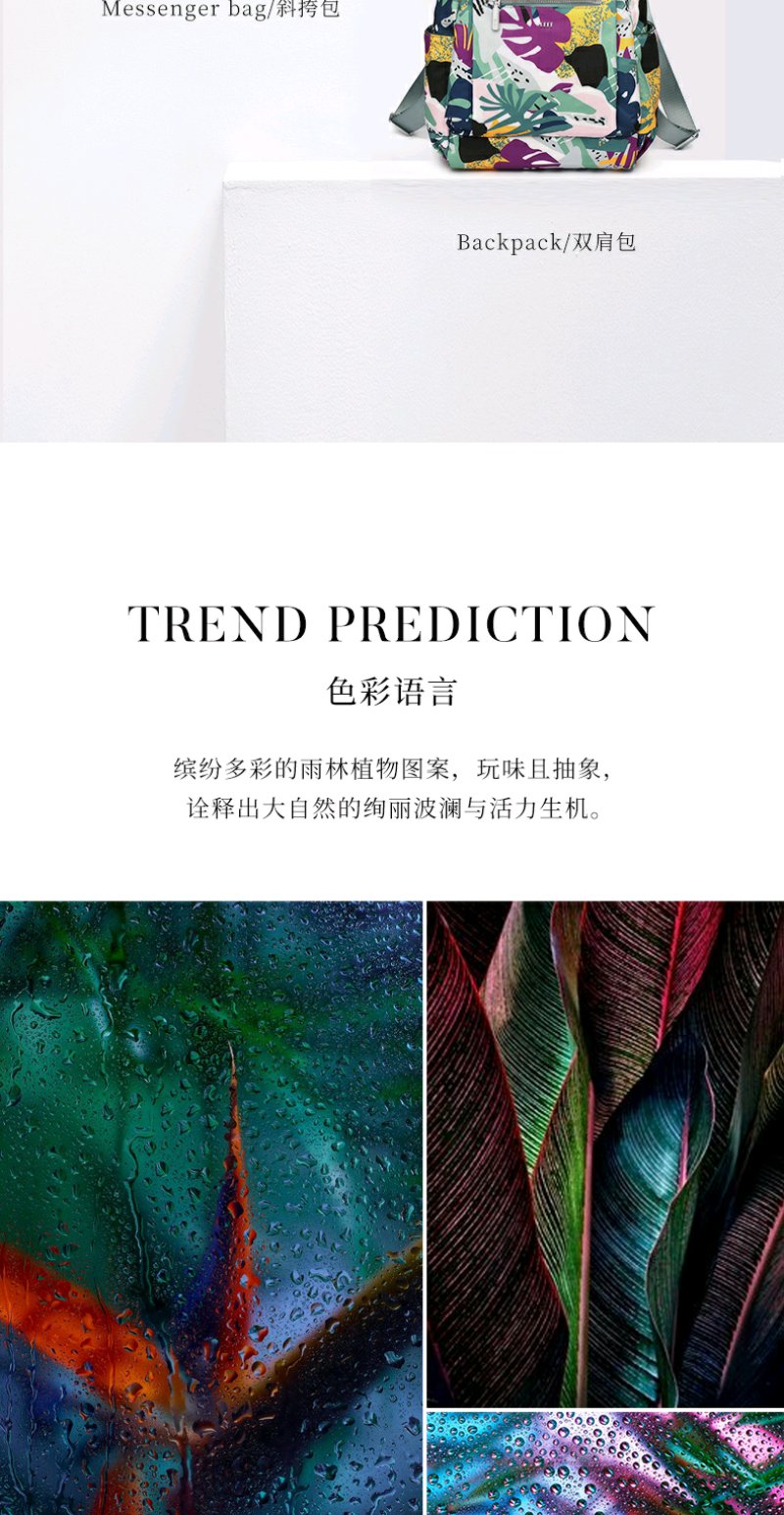 莱夫包包女包双肩包 旅游休闲简约气质尼龙布女士背包时尚森林印花书包新年礼物送妈妈 缤纷雨林