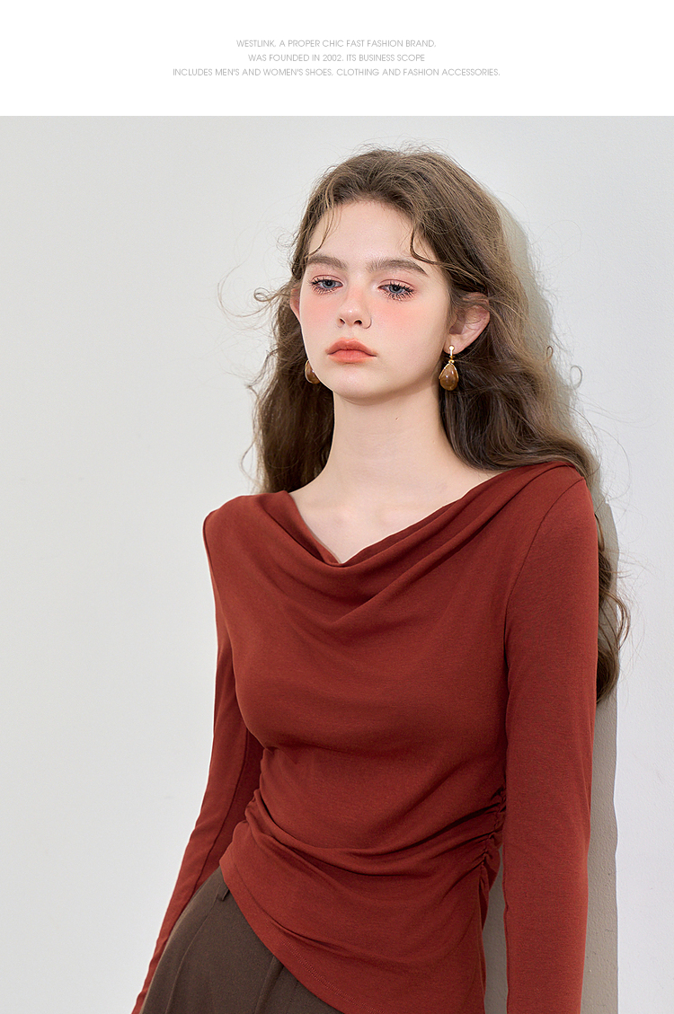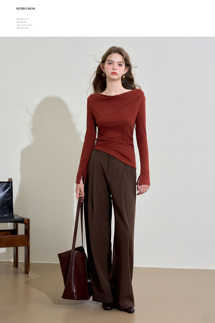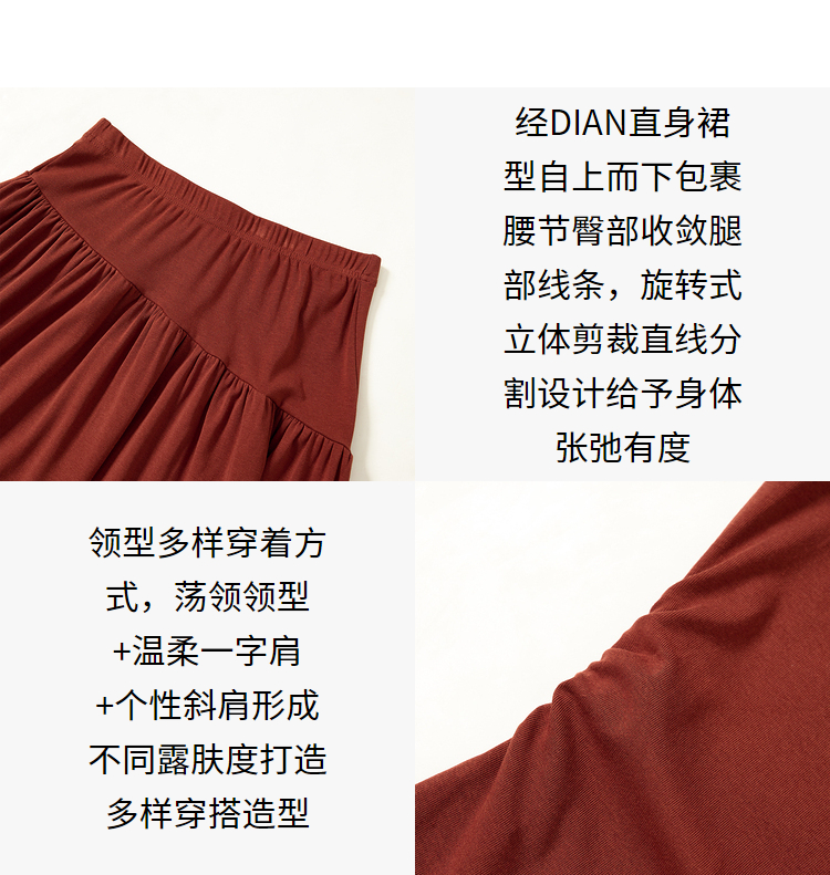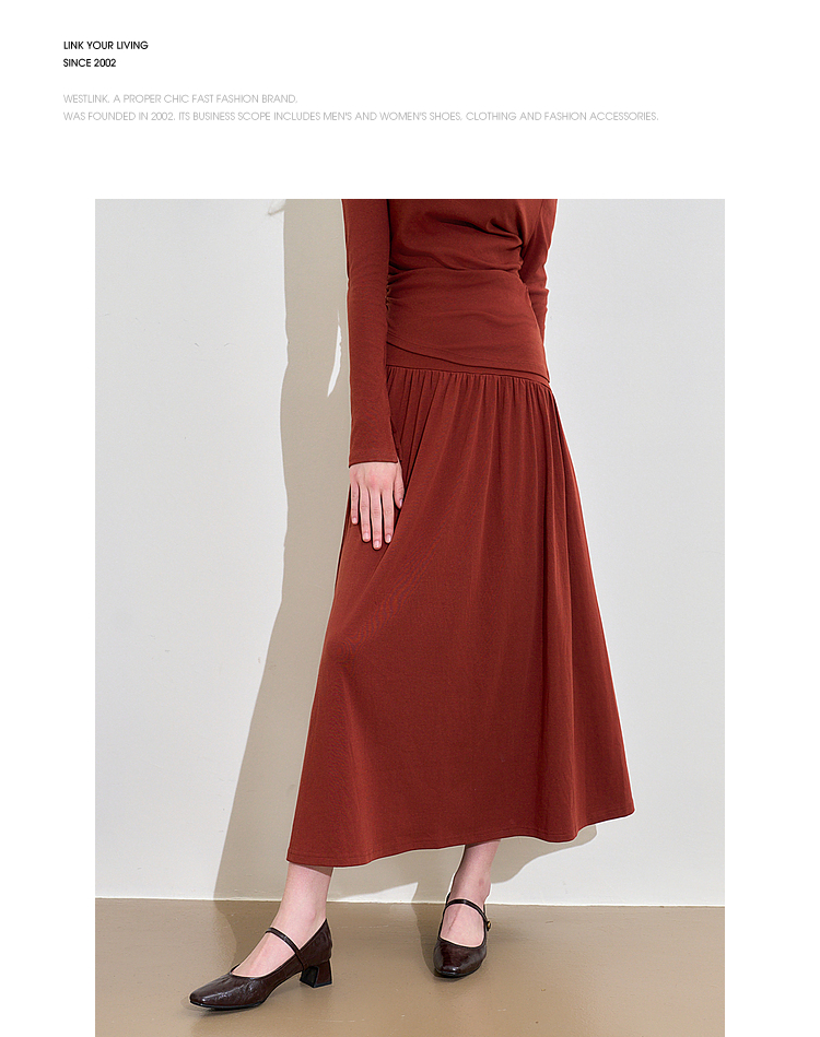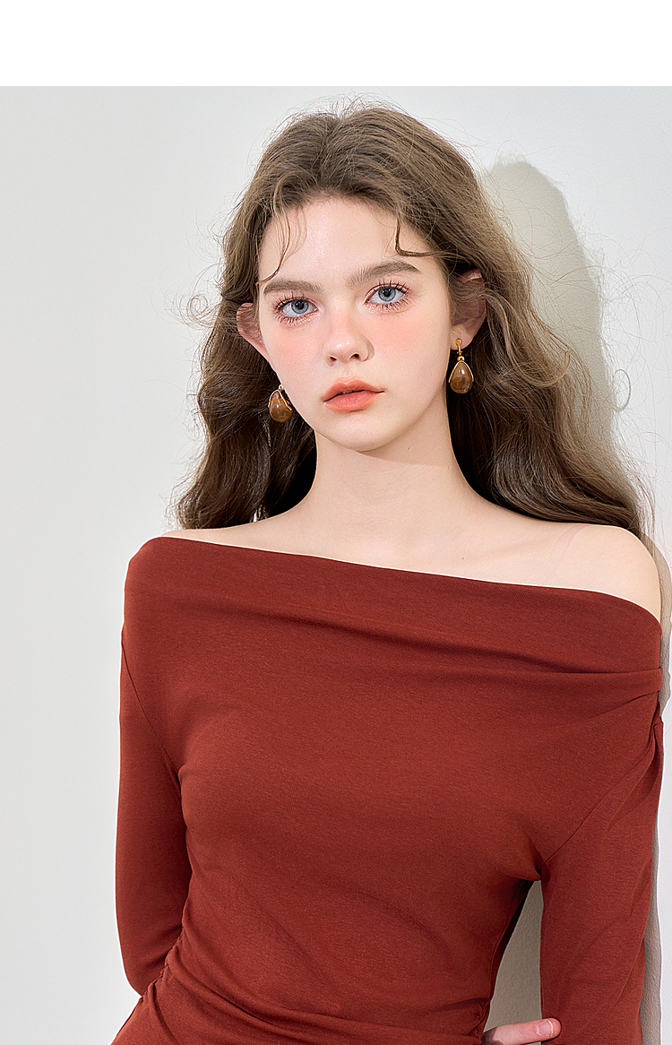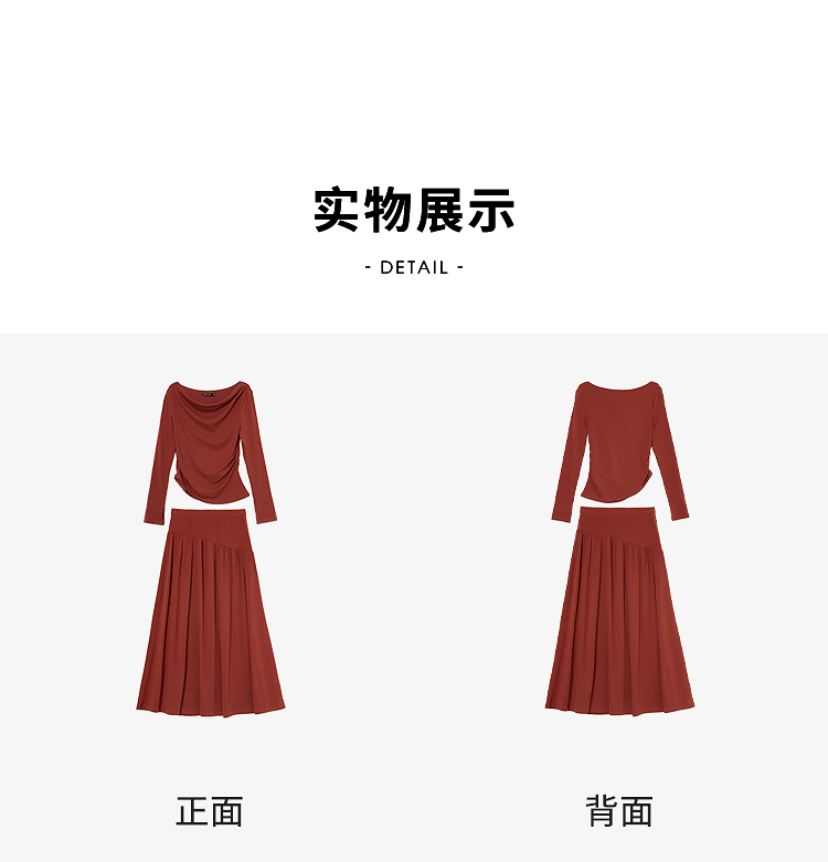 西遇法式酒红色两件套女新款一字肩上衣半裙针织套装D3542302