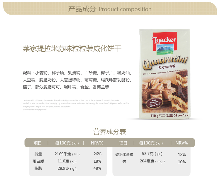 loacker 莱家 粒粒装 威化 提拉米苏味 袋装