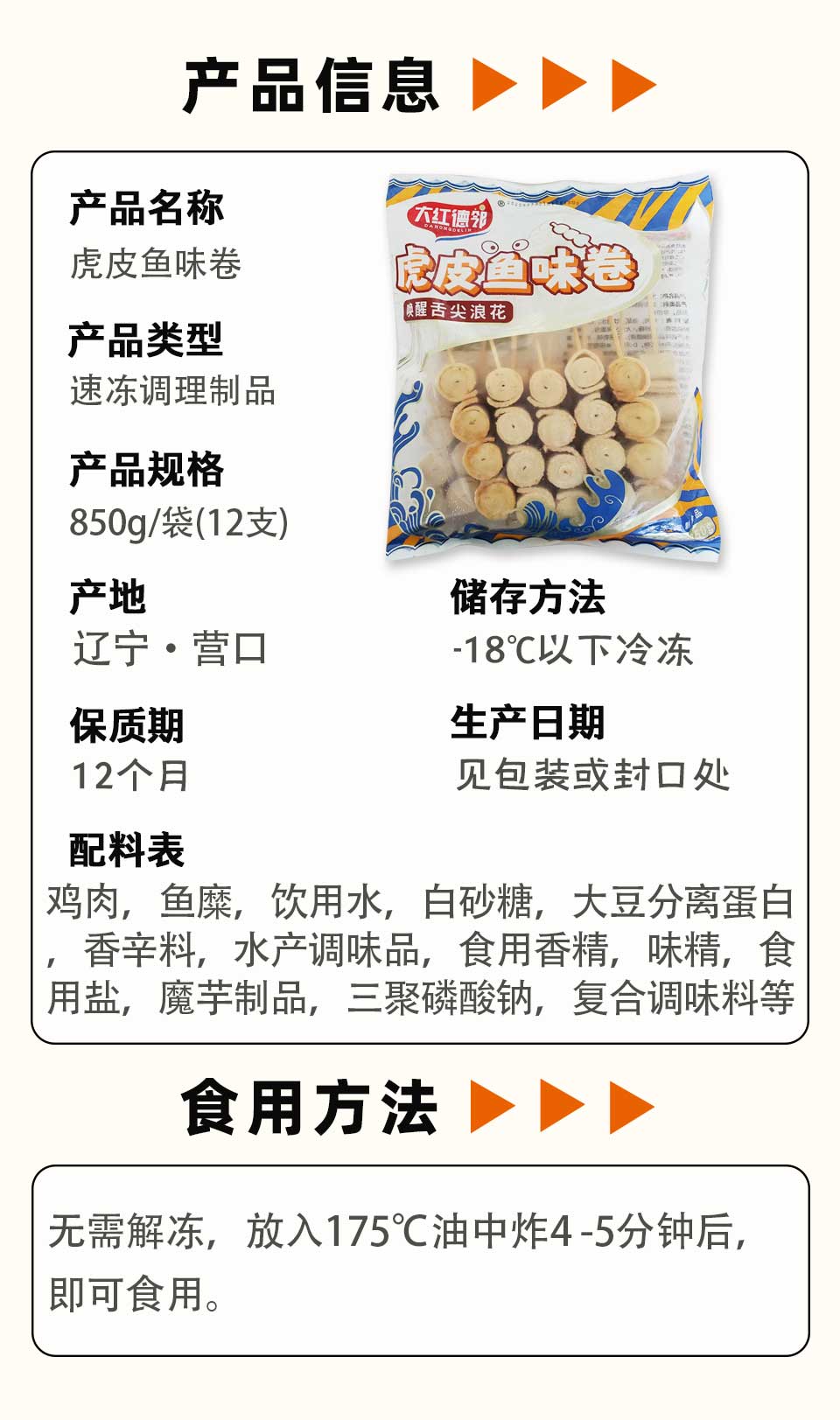 大红德邻虎皮鱼味卷 850g/袋(12支) 10袋/件