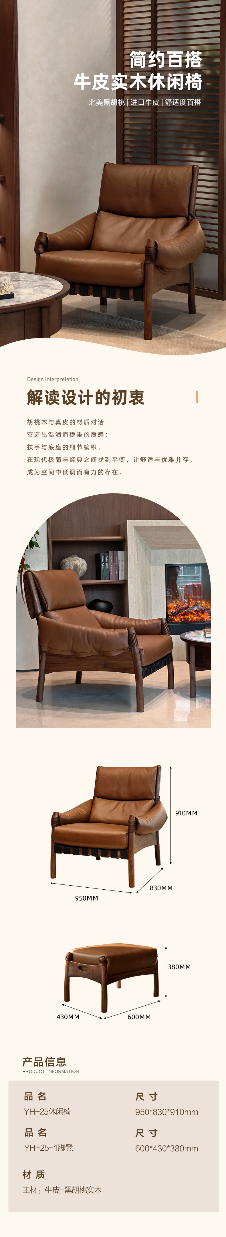 【中古风-休闲沙发YH-25】专利款/中古/真皮/北美黑胡桃/休闲椅/休闲沙发