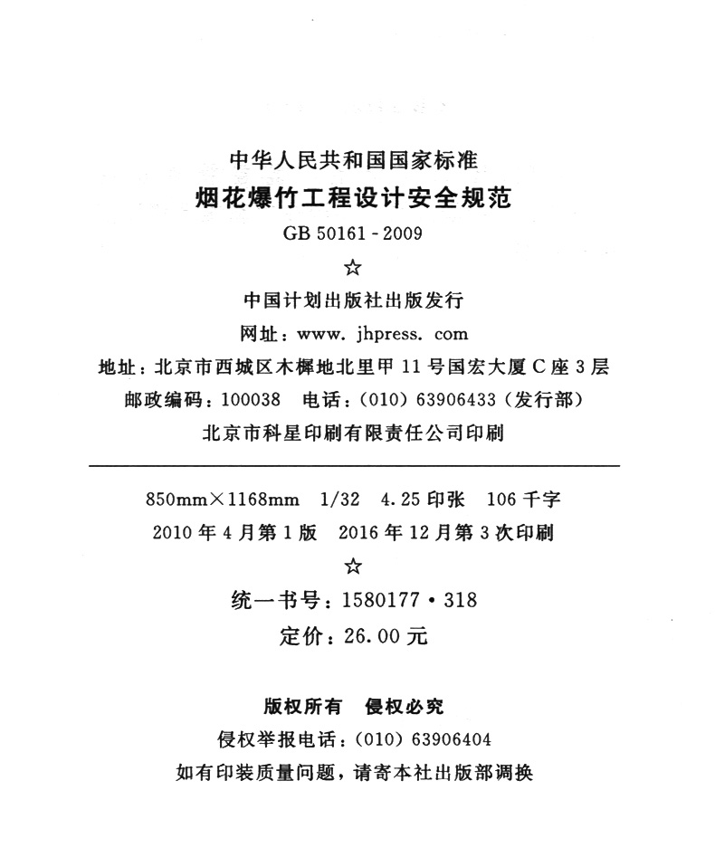 书名:GB50161-2009烟花爆竹工程设计安全规范