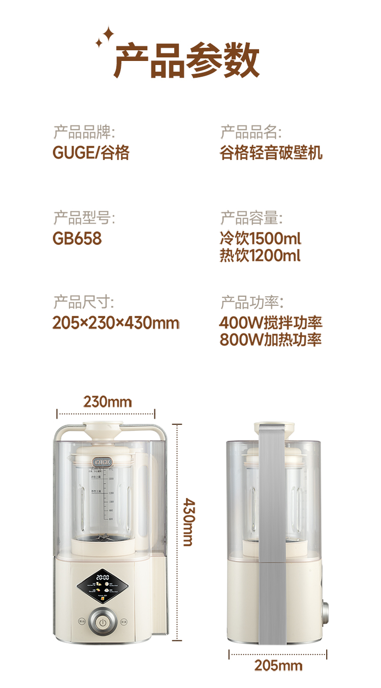【自营】谷格(GUGE)轻音破壁机(白色)GB658