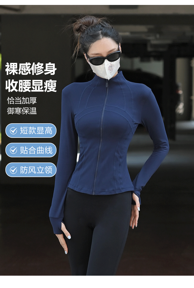 Beemen瑜伽服上衣女外穿健身显瘦紧身立领长袖运动外套