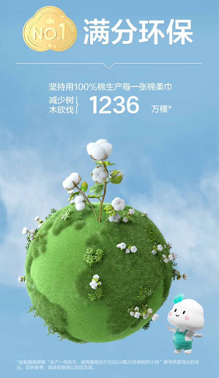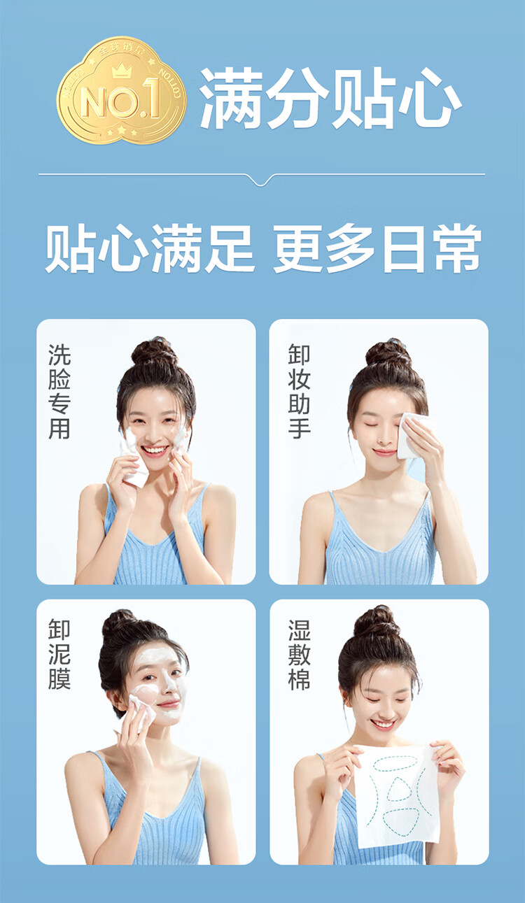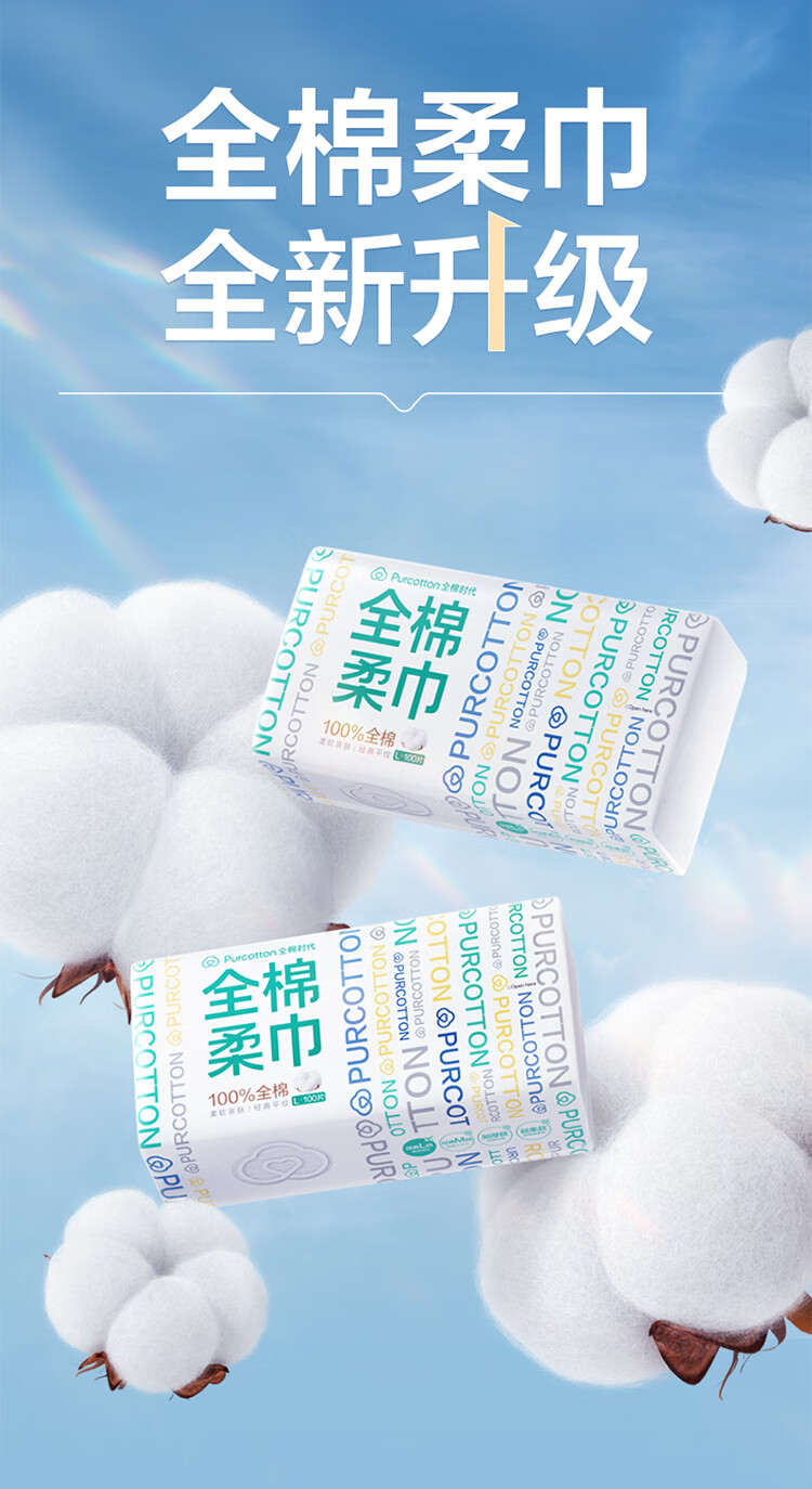 全棉时代洗脸巾 100抽*6包抽纸100%棉柔巾多用化妆棉一次性毛巾20*20CM 3112072