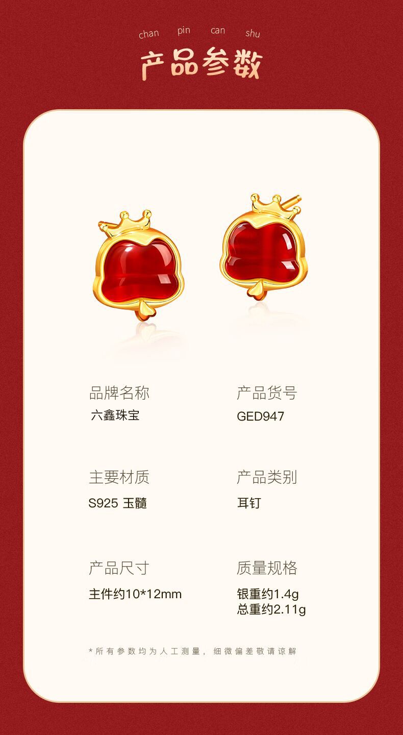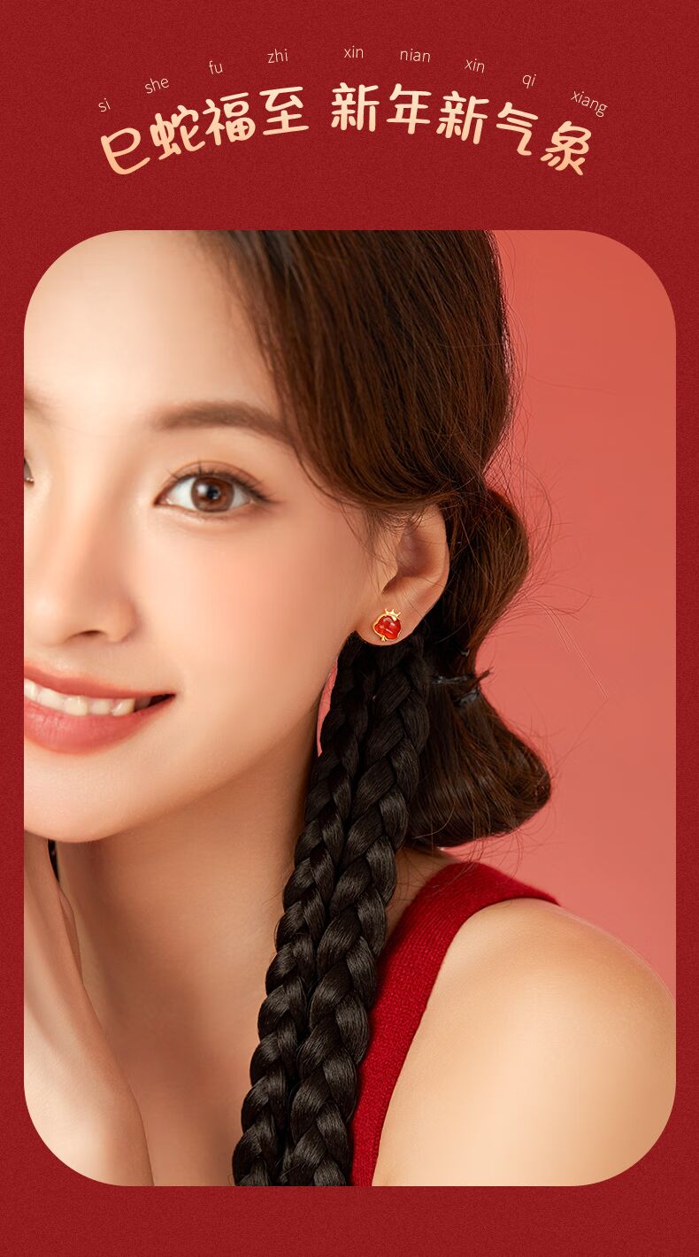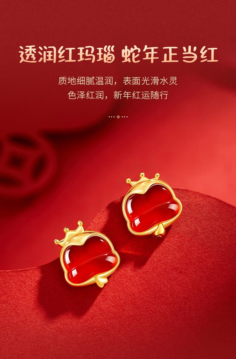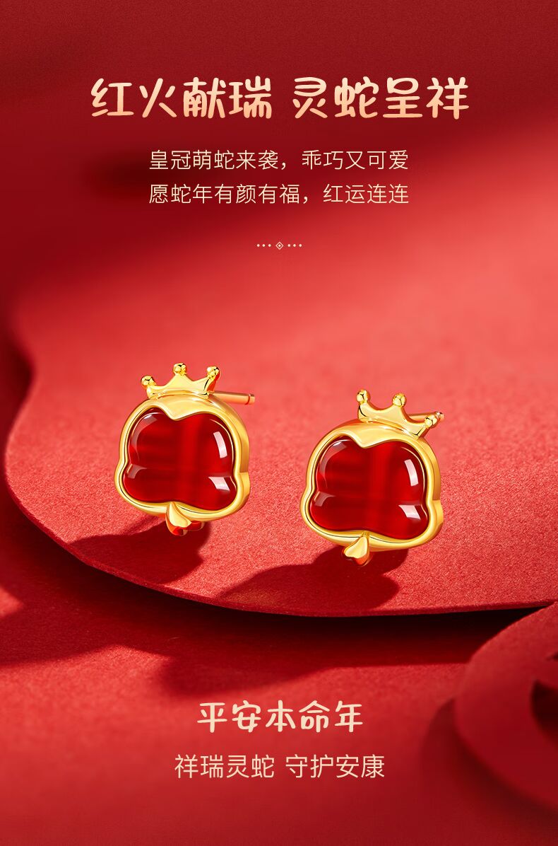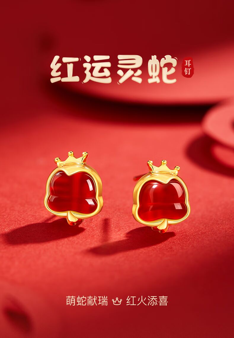 六鑫珠宝 本命年蛇年红运灵蛇红玛瑙银耳钉