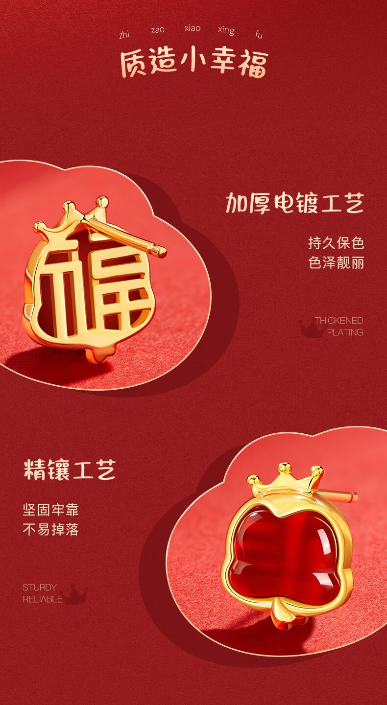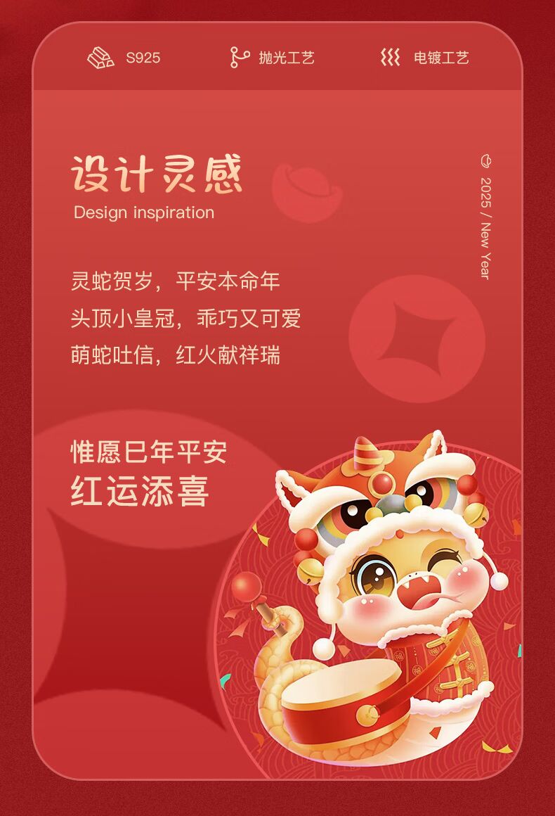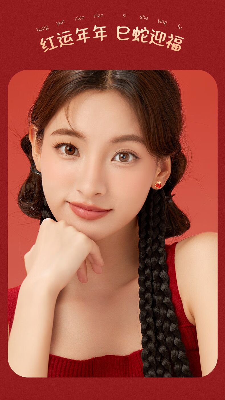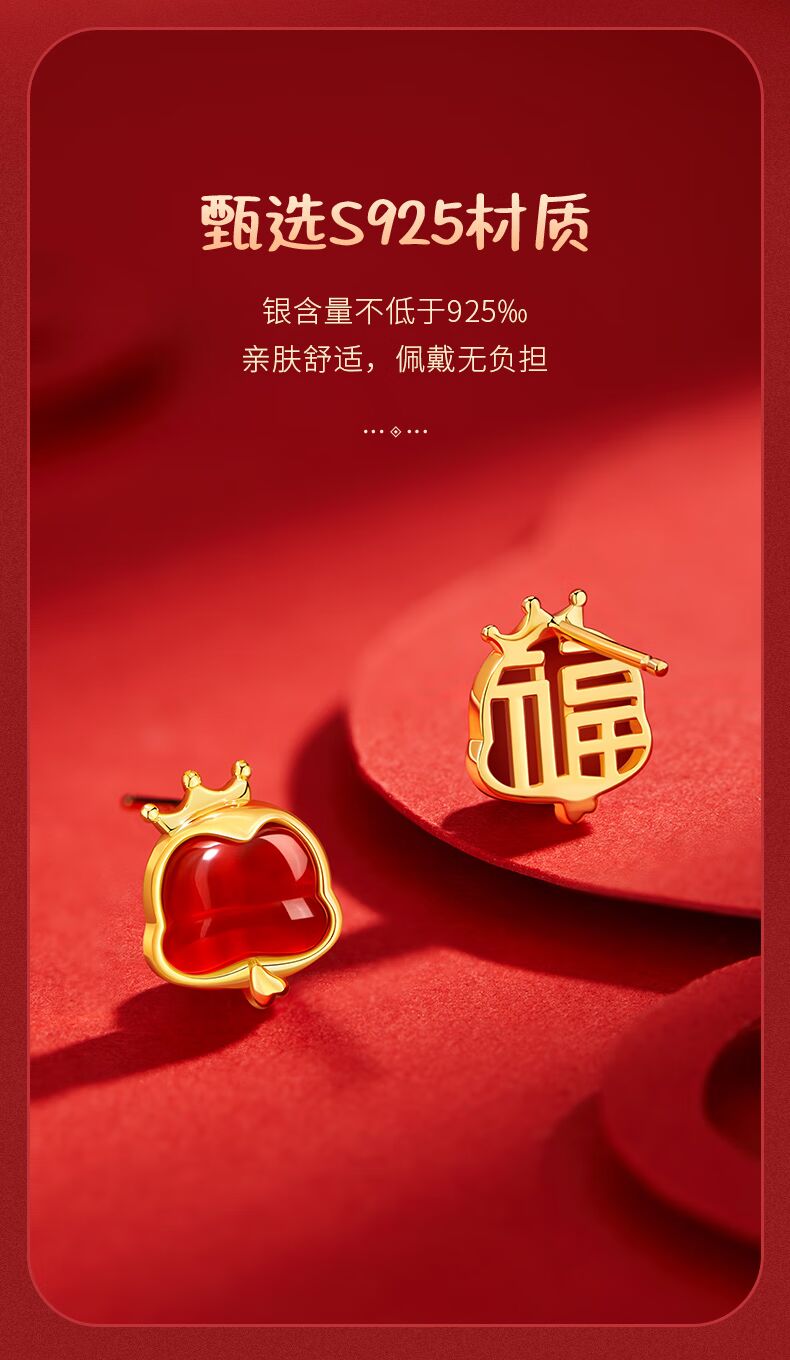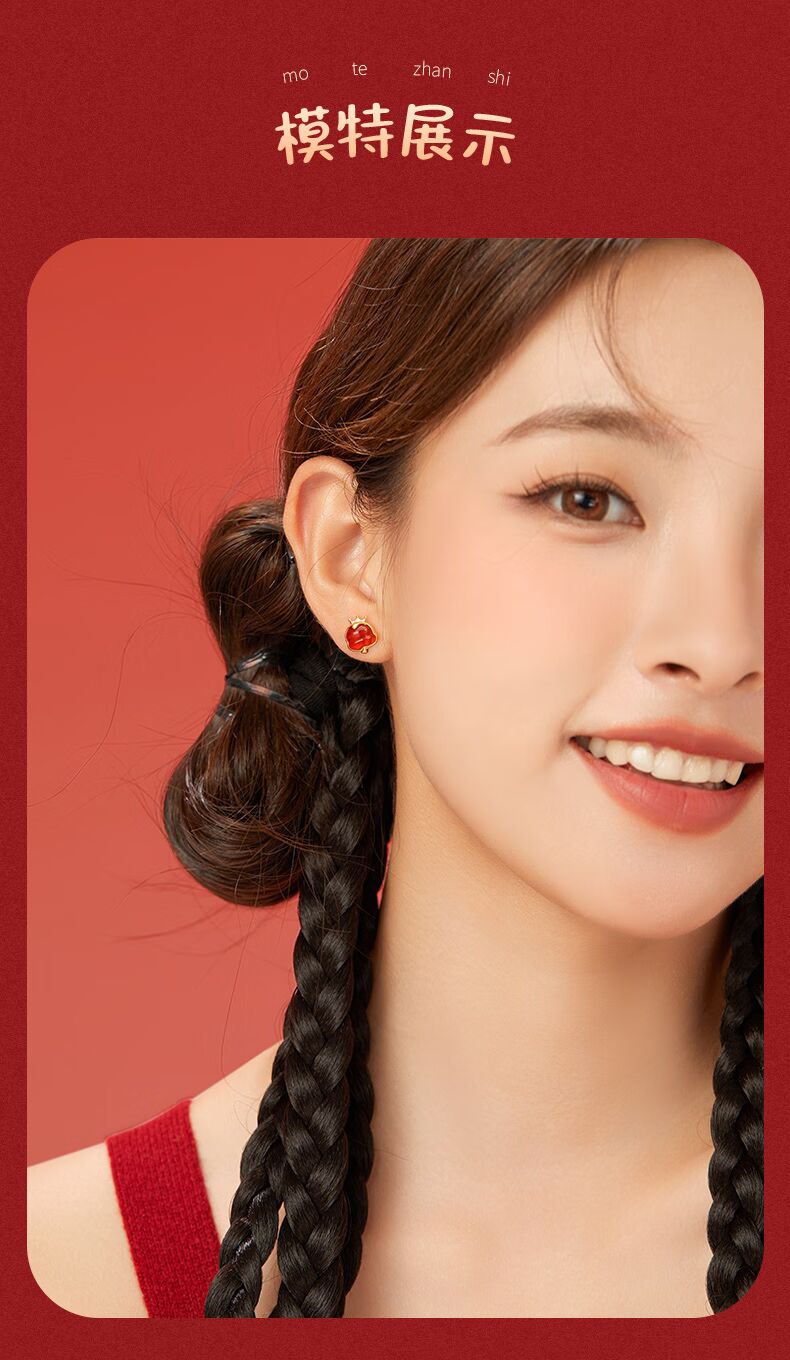六鑫珠宝 本命年蛇年红运灵蛇红玛瑙银耳钉