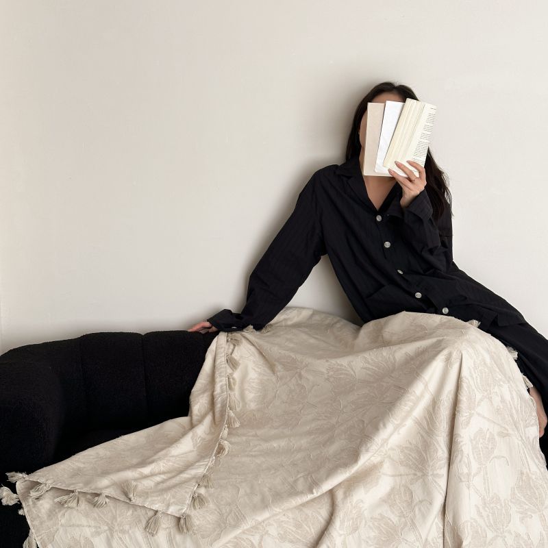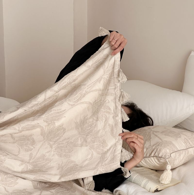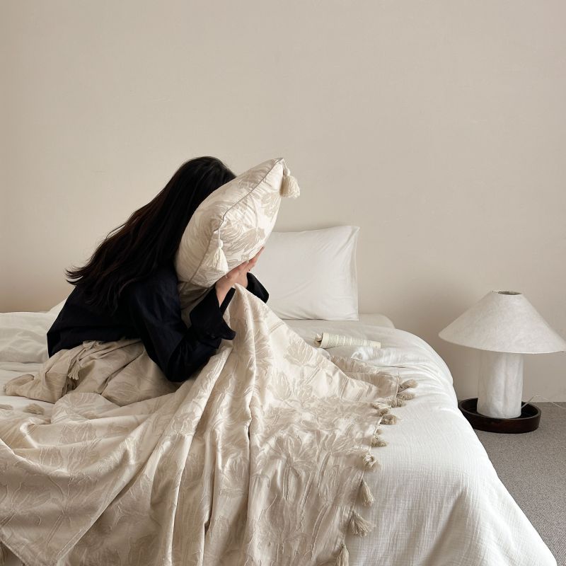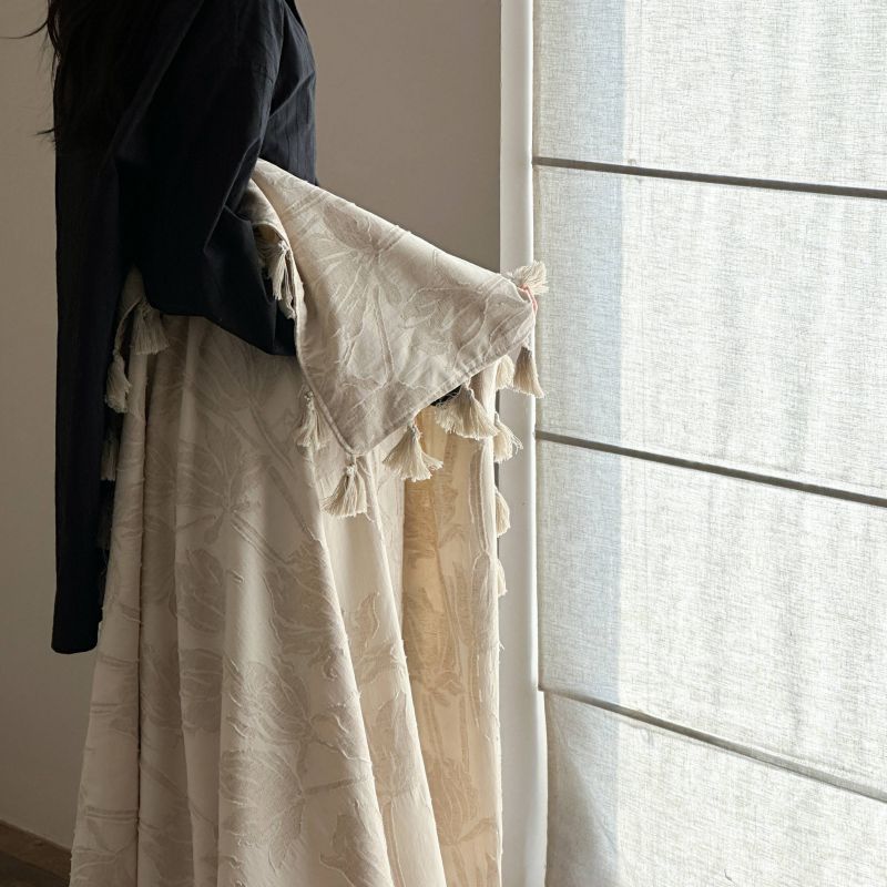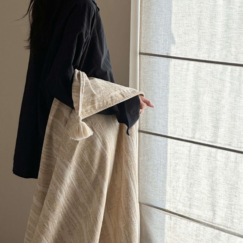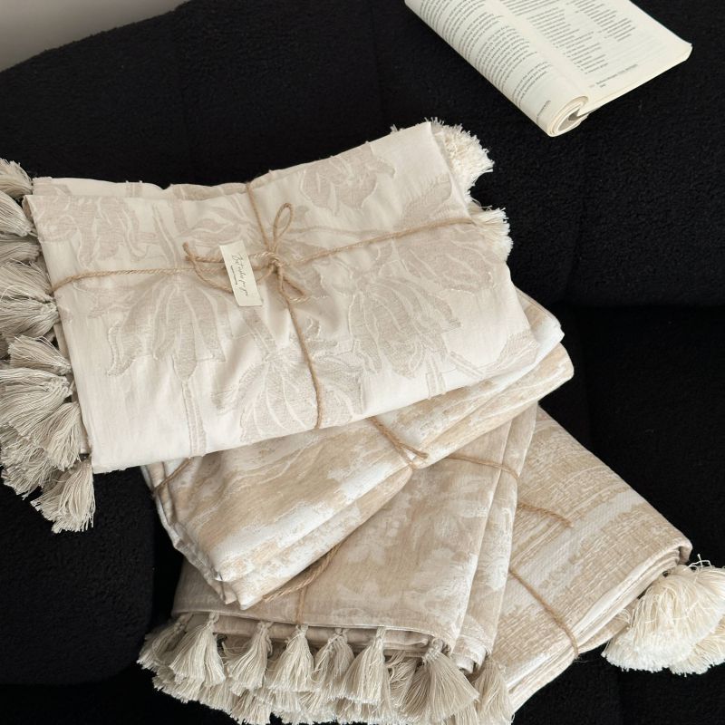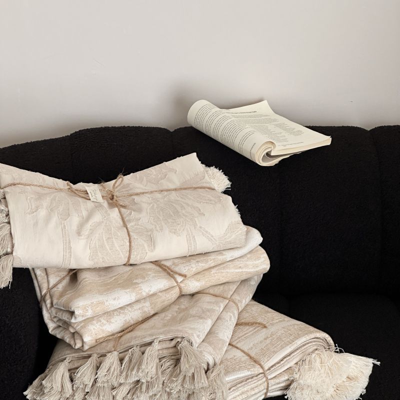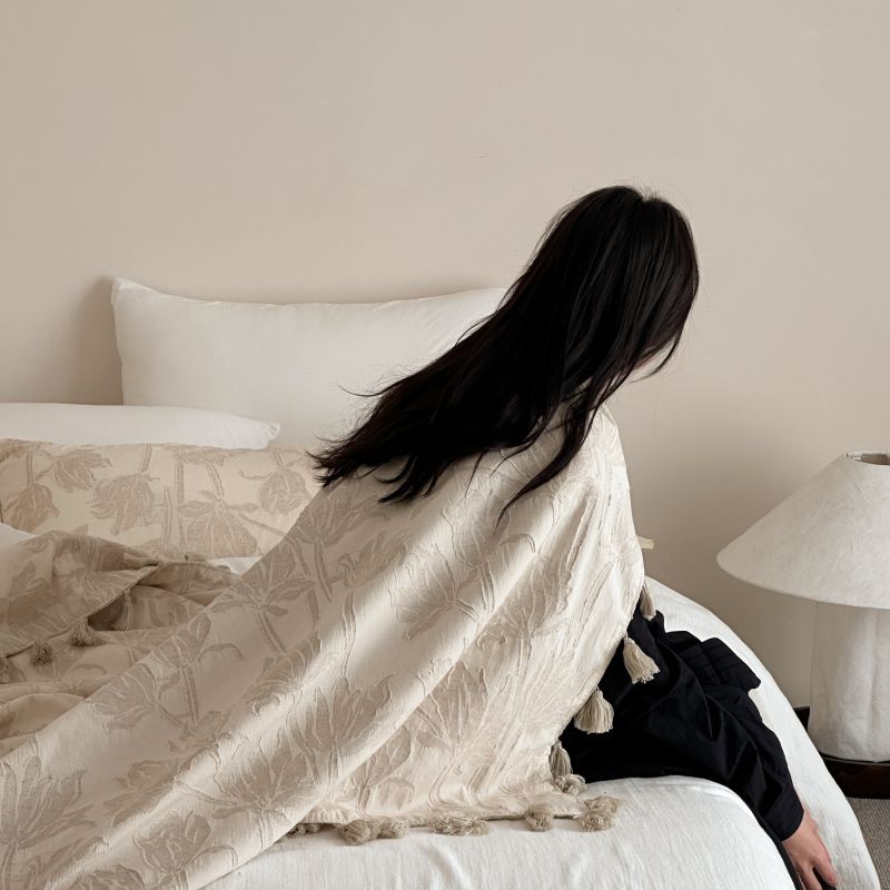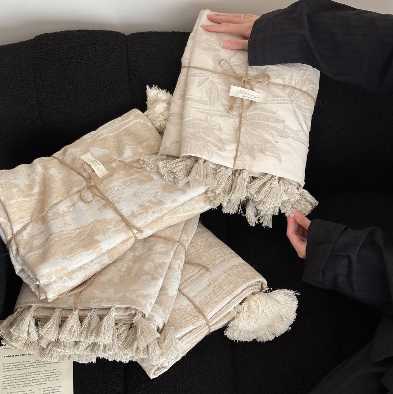 厚织提花剪花工艺+独特的流苏设计,侘寂雅致,轻盈灵动。