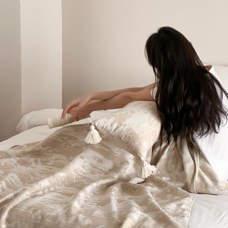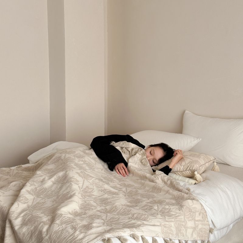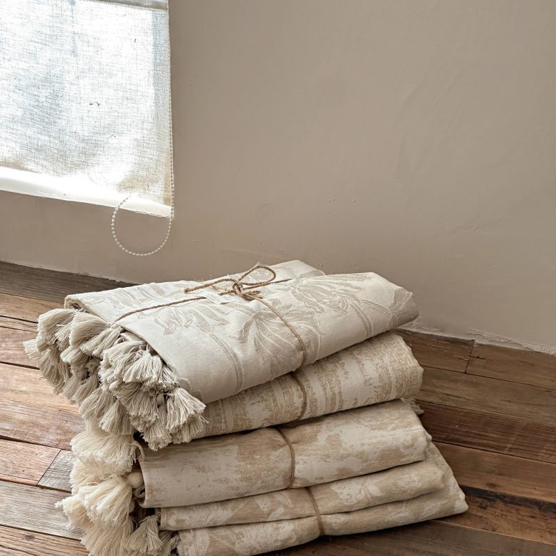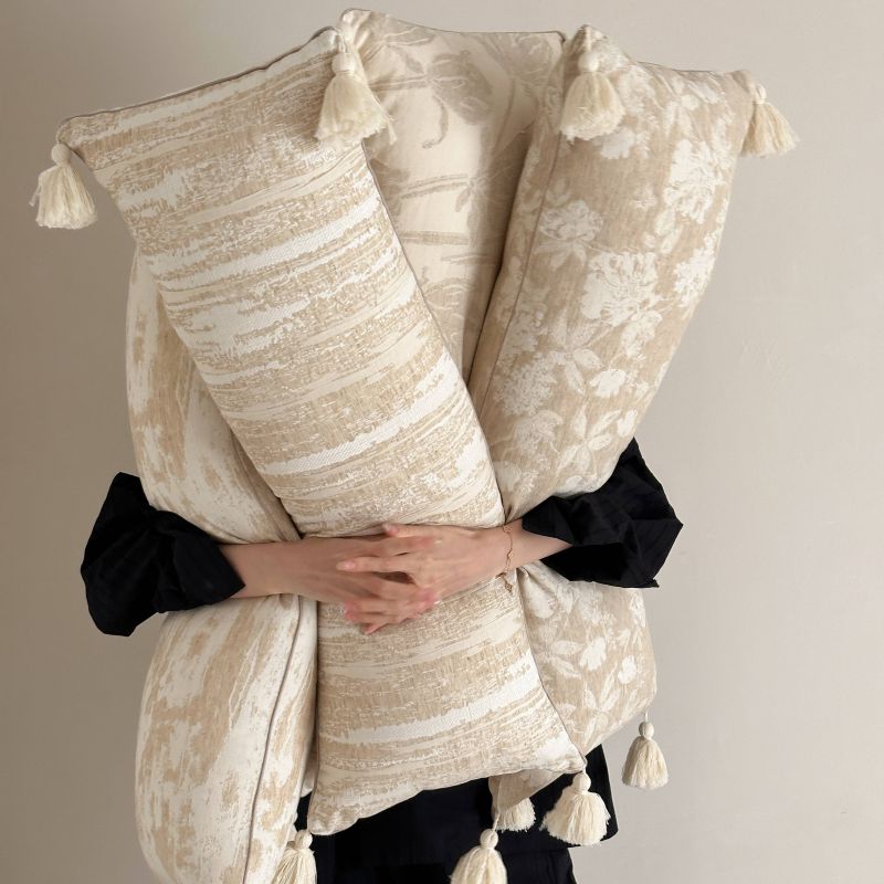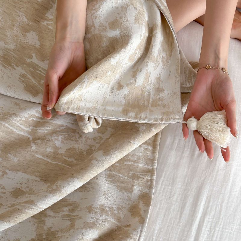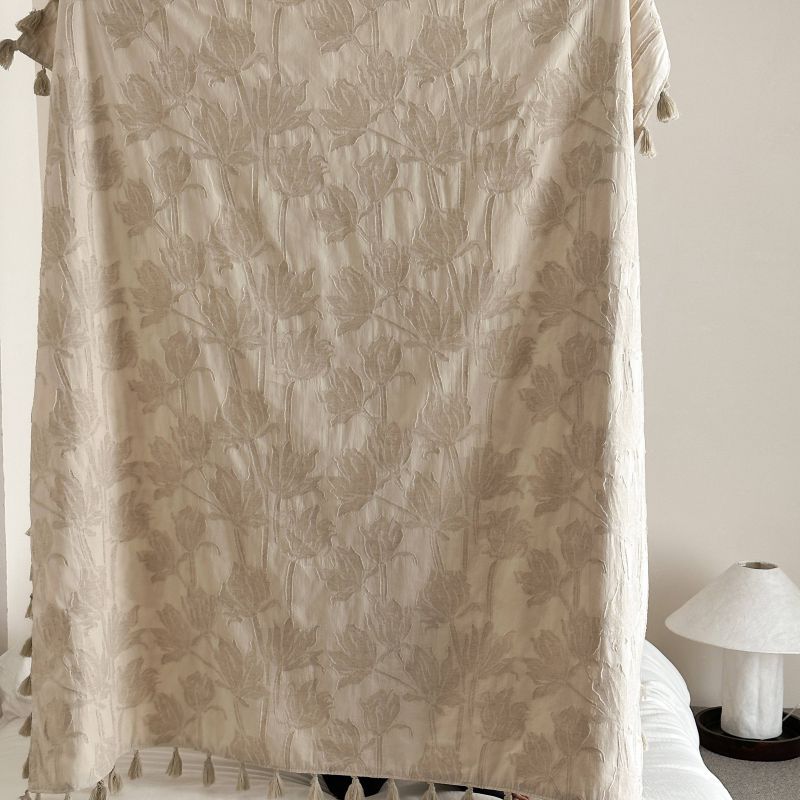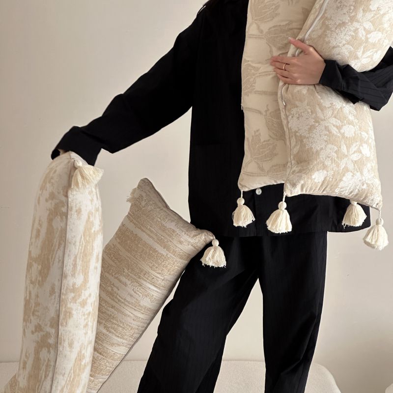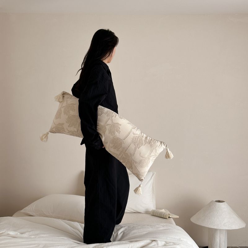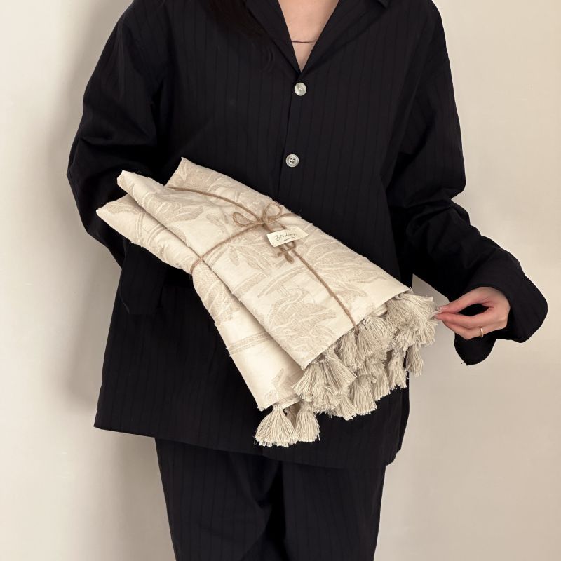厚织提花剪花工艺+独特的流苏设计,侘寂雅致,轻盈灵动。