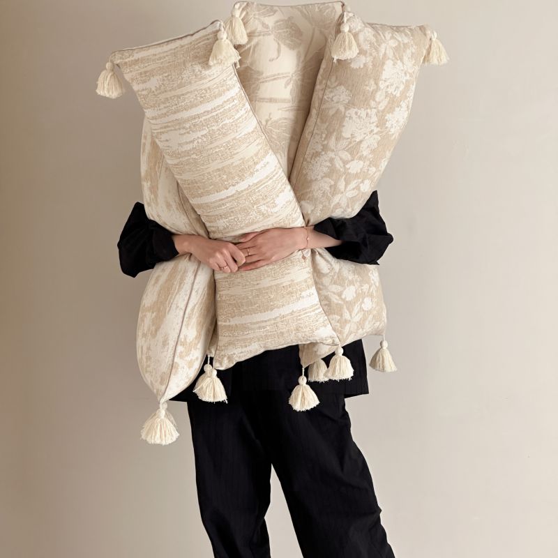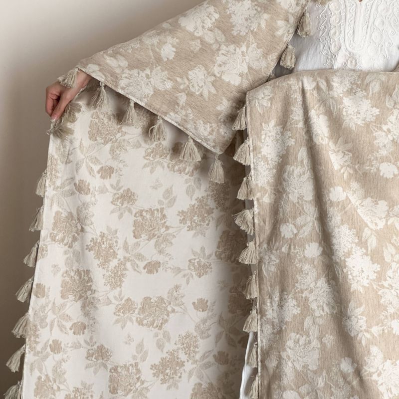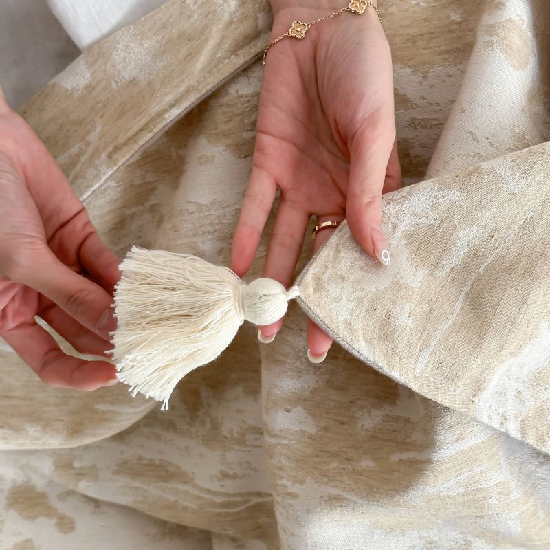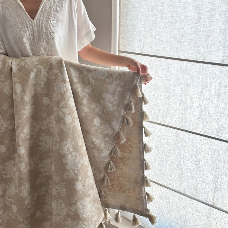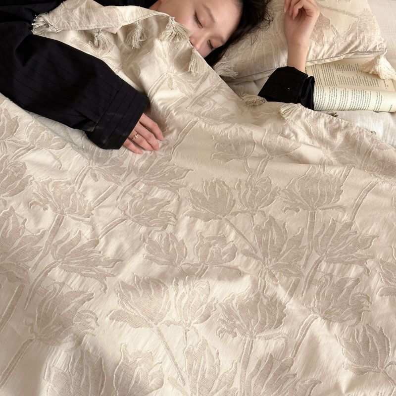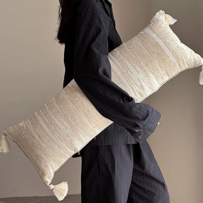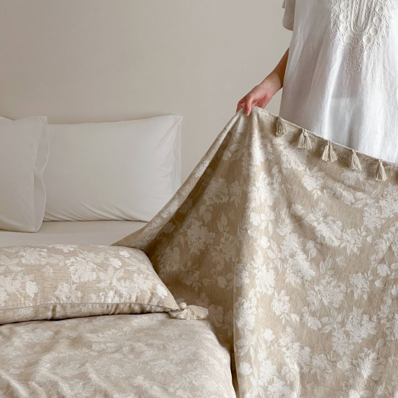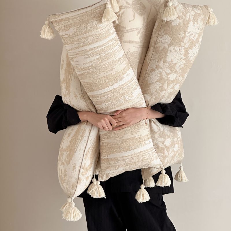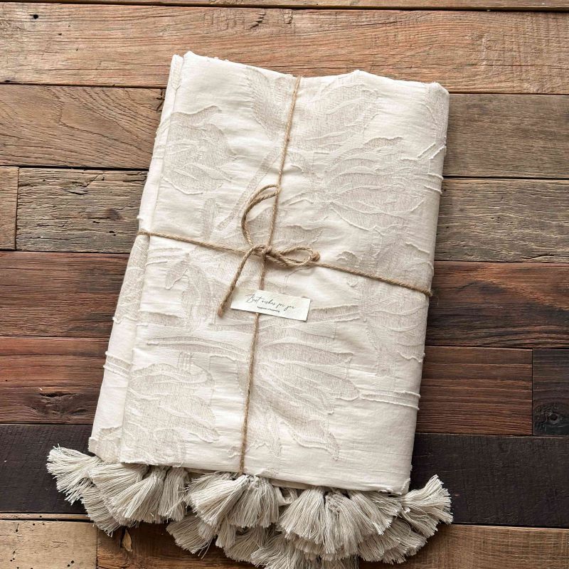 厚织提花剪花工艺+独特的流苏设计,侘寂雅致,轻盈灵动。