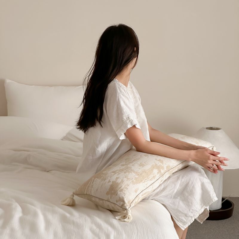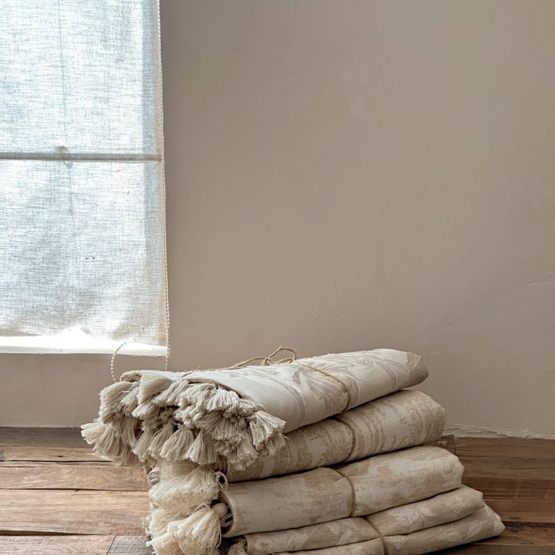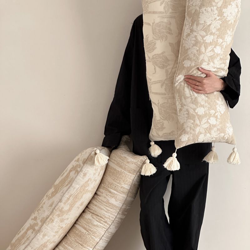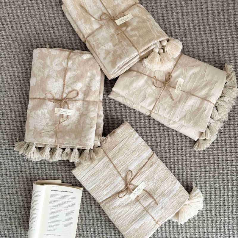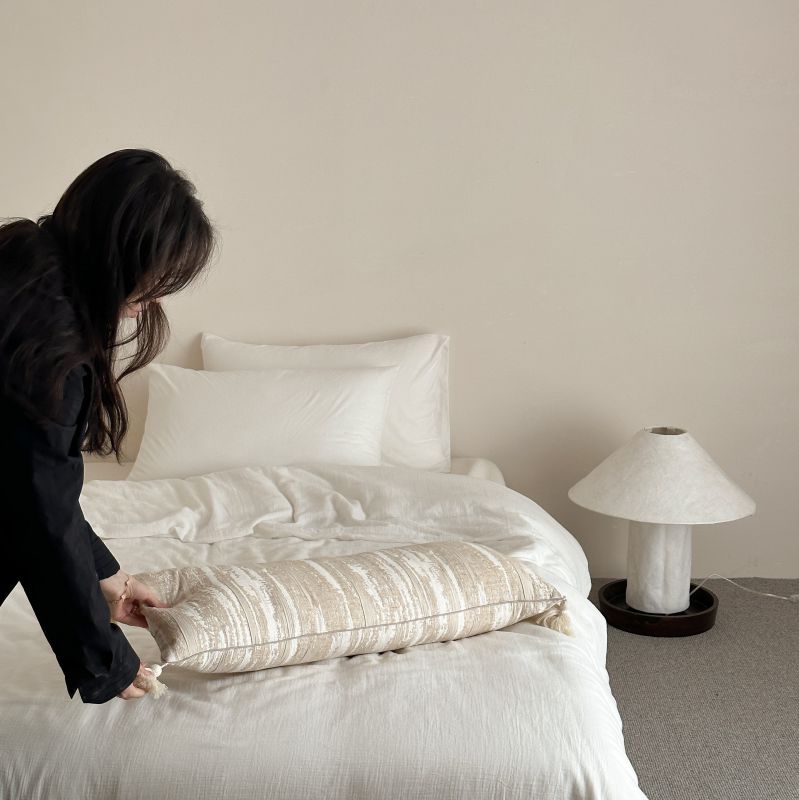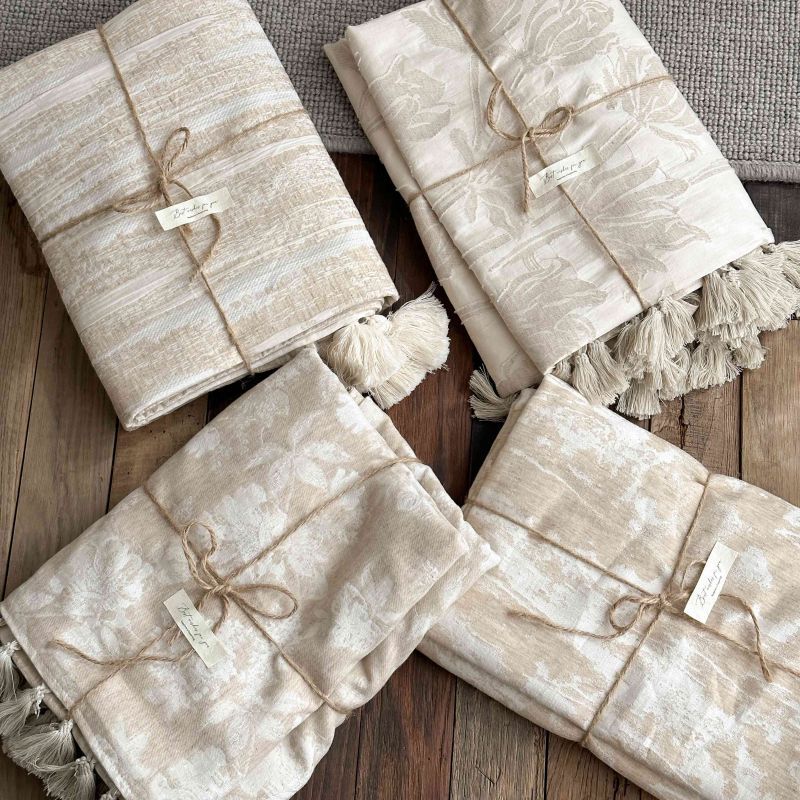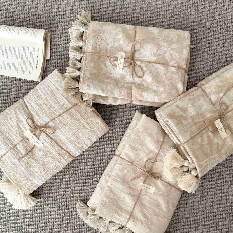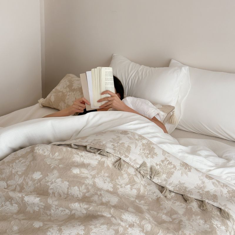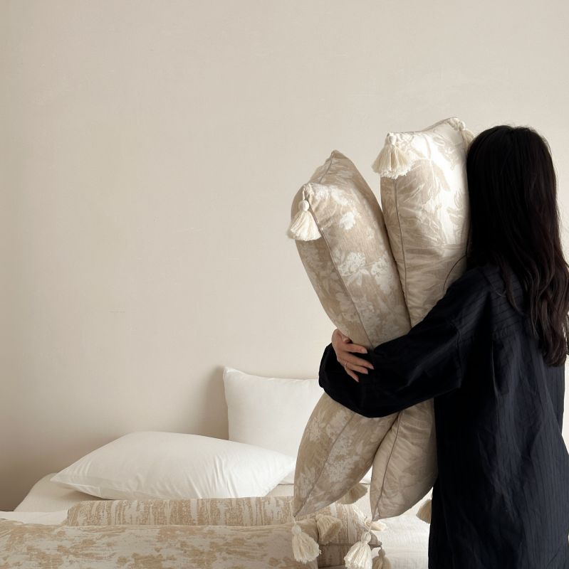 厚织提花剪花工艺+独特的流苏设计,侘寂雅致,轻盈灵动。